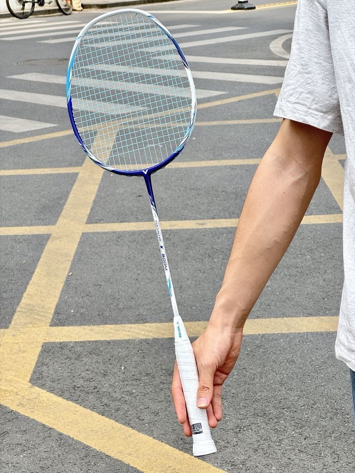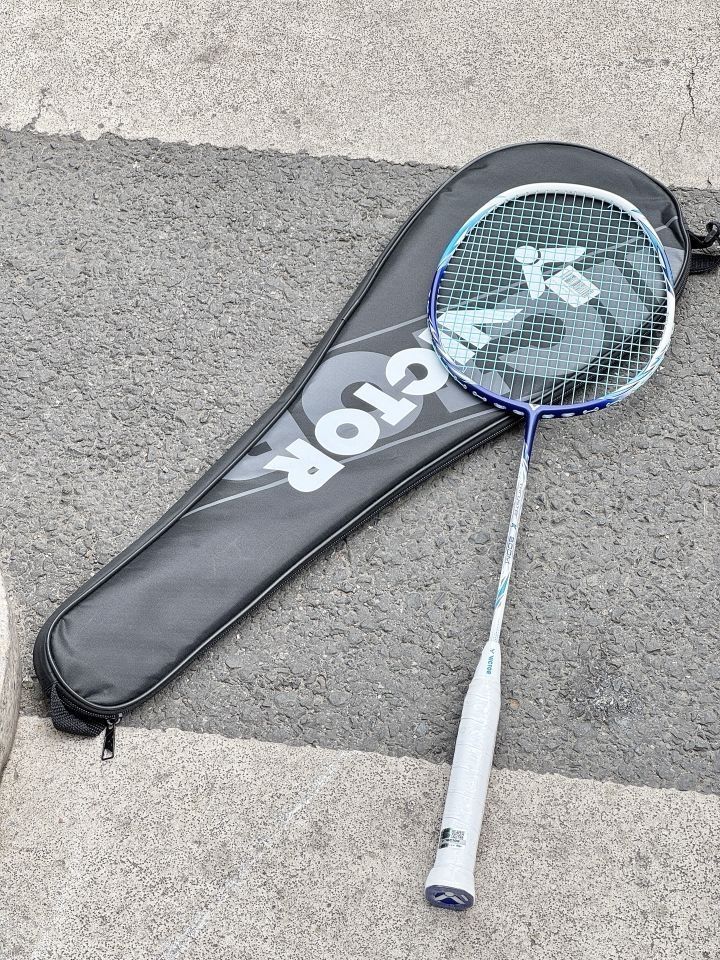 Wow…抢到的断货王球拍就是手感不一样!!威克多音爆羽毛球拍真的爱了! 深海蓝配白的配色绝绝子 拿在手里就是夏天的感觉 全碳素材质轻盈到飞起 女生用着完全不费劲 虽然是羽毛球新手 但用它打球特别顺手 回弹力也很不错