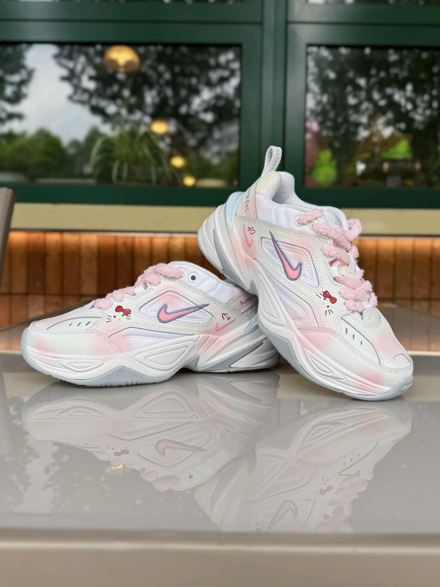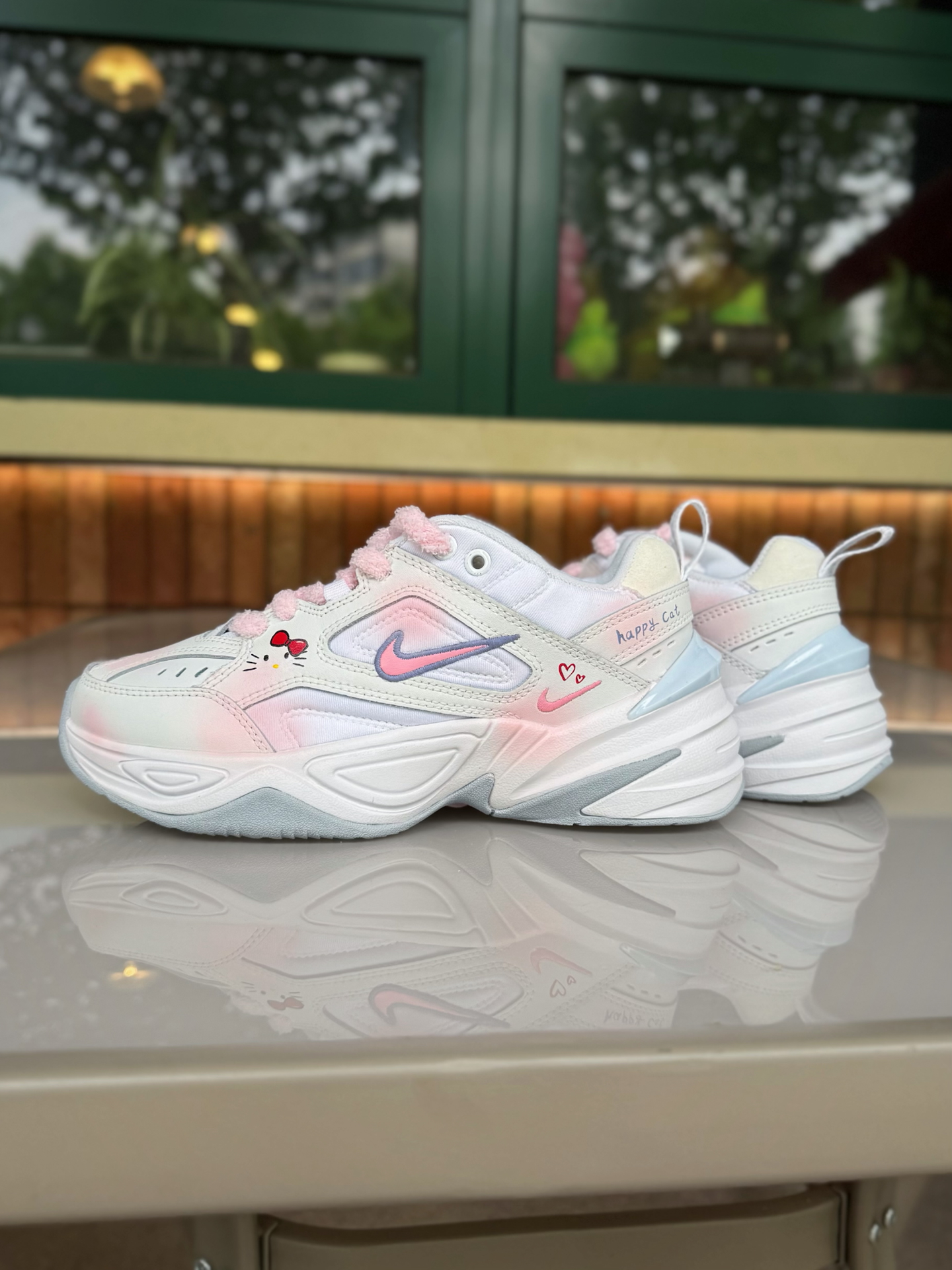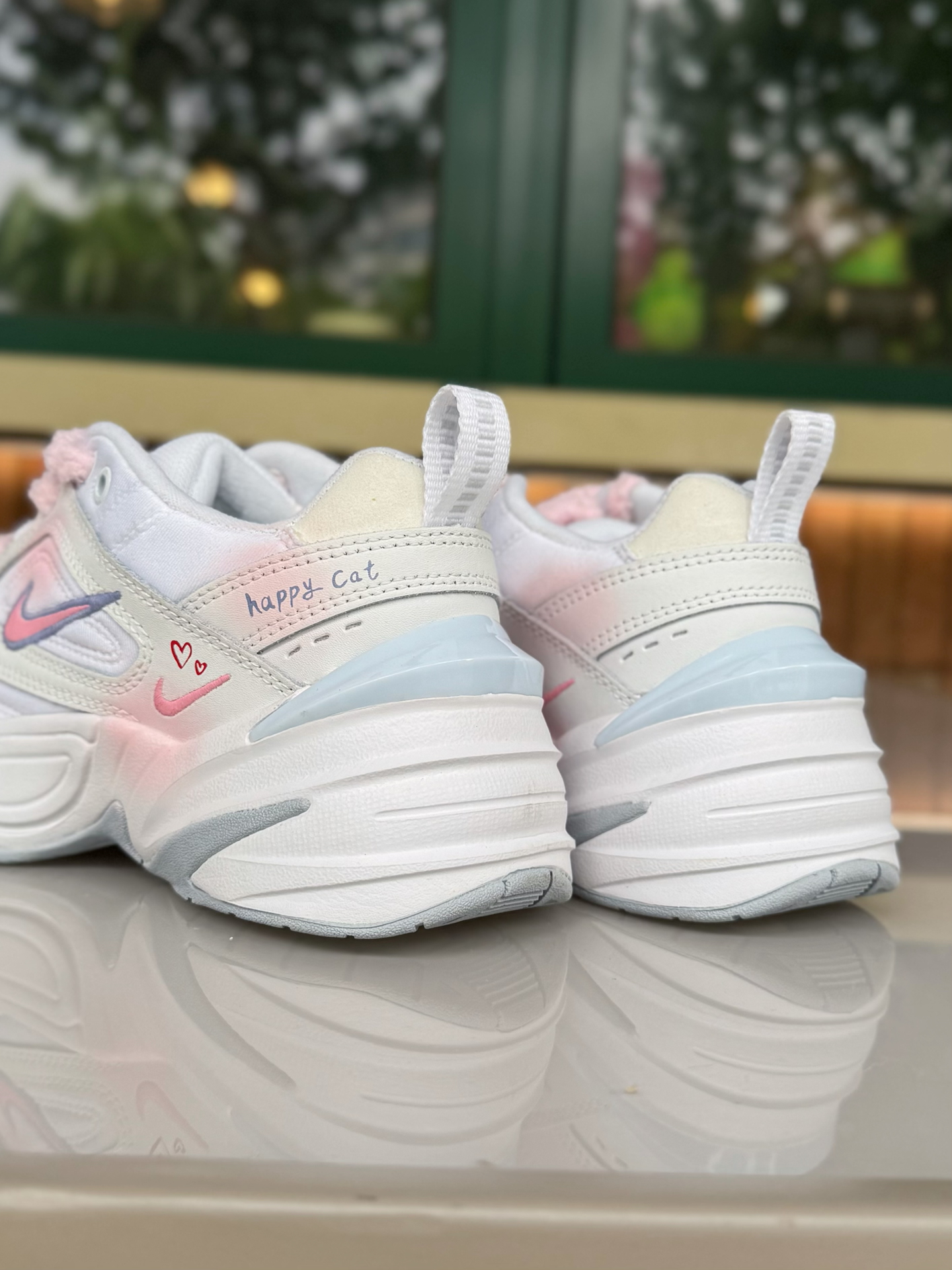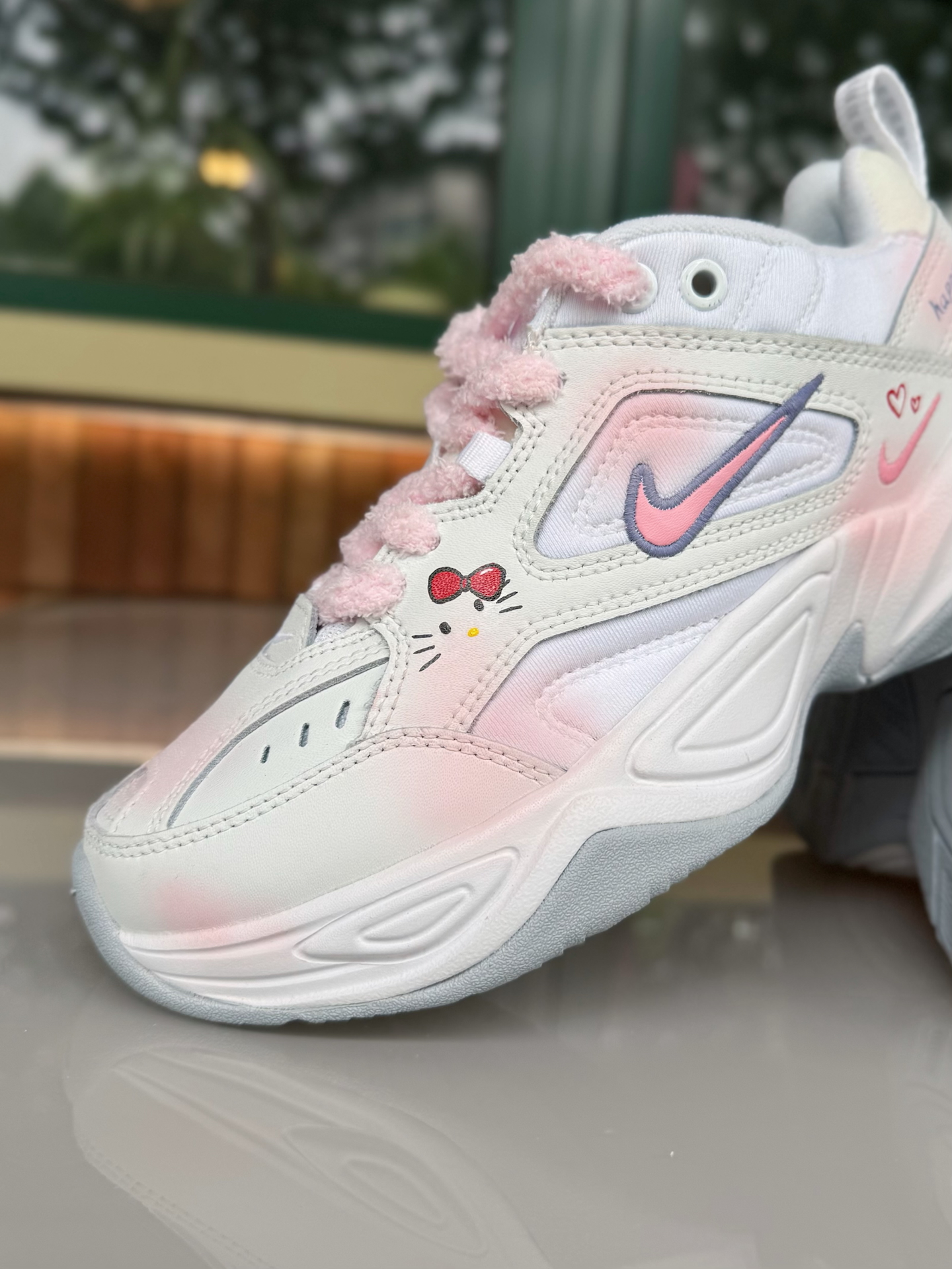 最近发现的这款定制版M2K 真的有点意思啊! 还以为Hello Kitty又出联名款了 晕染效果呈现的鞋身 粉粉嫩嫩的,看起来就少女心十足! 侧面爱心💗和一些小细节 也是整体看起来没有那么单调 这双我最喜欢的就是它这个鞋带了💥 是这种毛绒绒的材料打造 看起来就可可爱爱的😍 也与整体呼应的恰到好处 脚感也还不错,搭配方面无压力 尺码也是不偏码的,正常选择即可~#520心随鞋动 #剪得物扣最快的一双鞋...