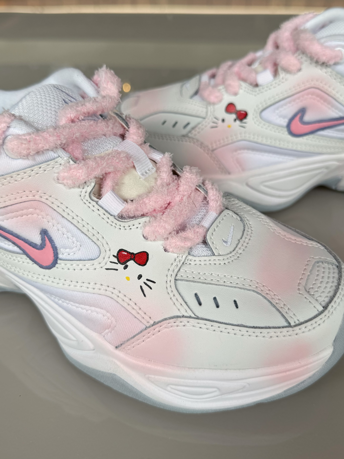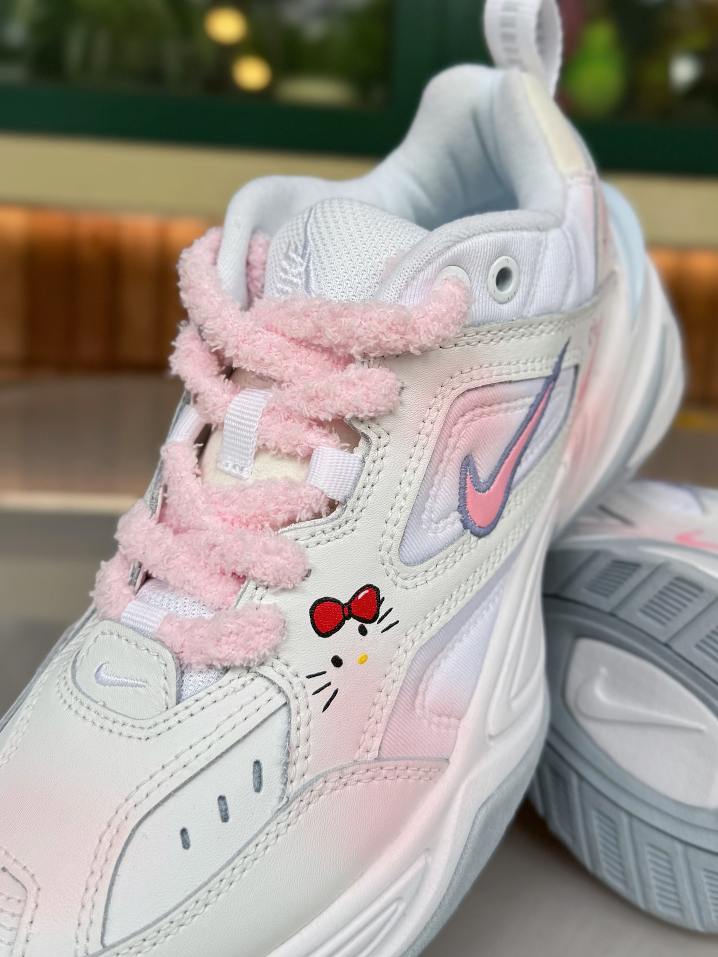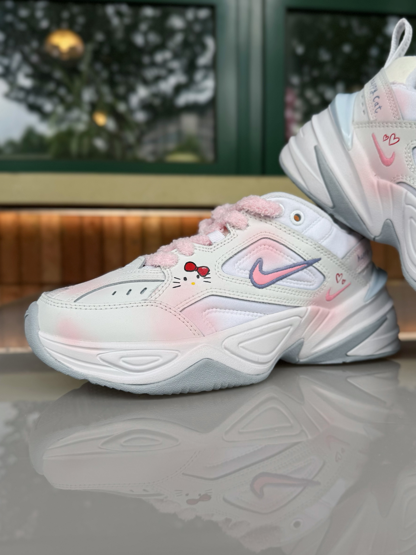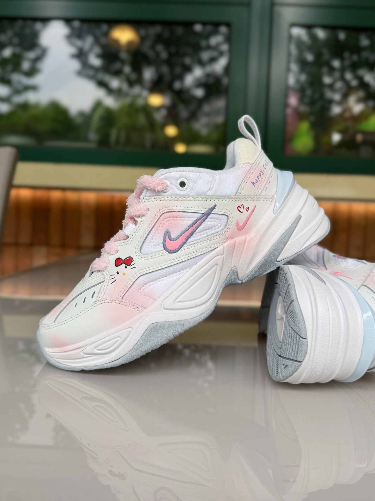 最近发现的这款定制版M2K 真的有点意思啊! 还以为Hello Kitty又出联名款了 晕染效果呈现的鞋身 粉粉嫩嫩的,看起来就少女心十足! 侧面爱心💗和一些小细节 也是整体看起来没有那么单调 这双我最喜欢的就是它这个鞋带了💥 是这种毛绒绒的材料打造 看起来就可可爱爱的😍 也与整体呼应的恰到好处 脚感也还不错,搭配方面无压力 尺码也是不偏码的,正常选择即可~#520心随鞋动 #剪得物扣最快的一双鞋...