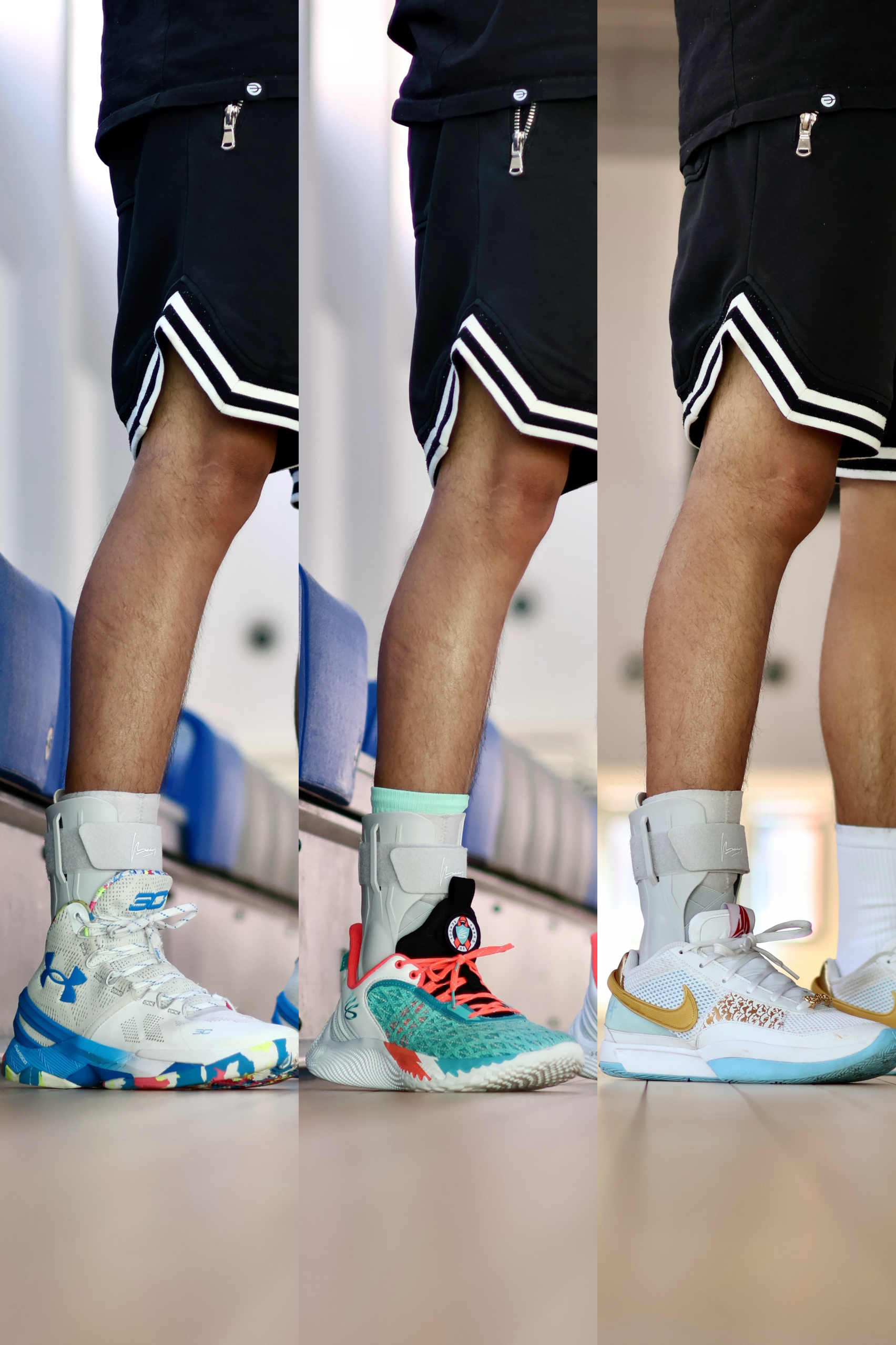 🏷️耐力克斯这只护踝保护性显而易见,外骨骼式的设计给脚踝提供了很硬的支撑🔒! 左右两片固定片把脚踝固定很稳当,受过伤或者易崴脚体质戴上这个实战也不虚了⛹🏻♂️~ 可调节范围很大,有三个魔术贴和一个松紧带,胖或瘦都有不错的包裹。 🤔当然是会限制一点脚踝的活动空间的,但换来的是实战可以完全释放脚踝肌肉,怎么变相都不用紧绷。 ⭐库里戴的也是这类型的护踝,运球一样灵动自如...