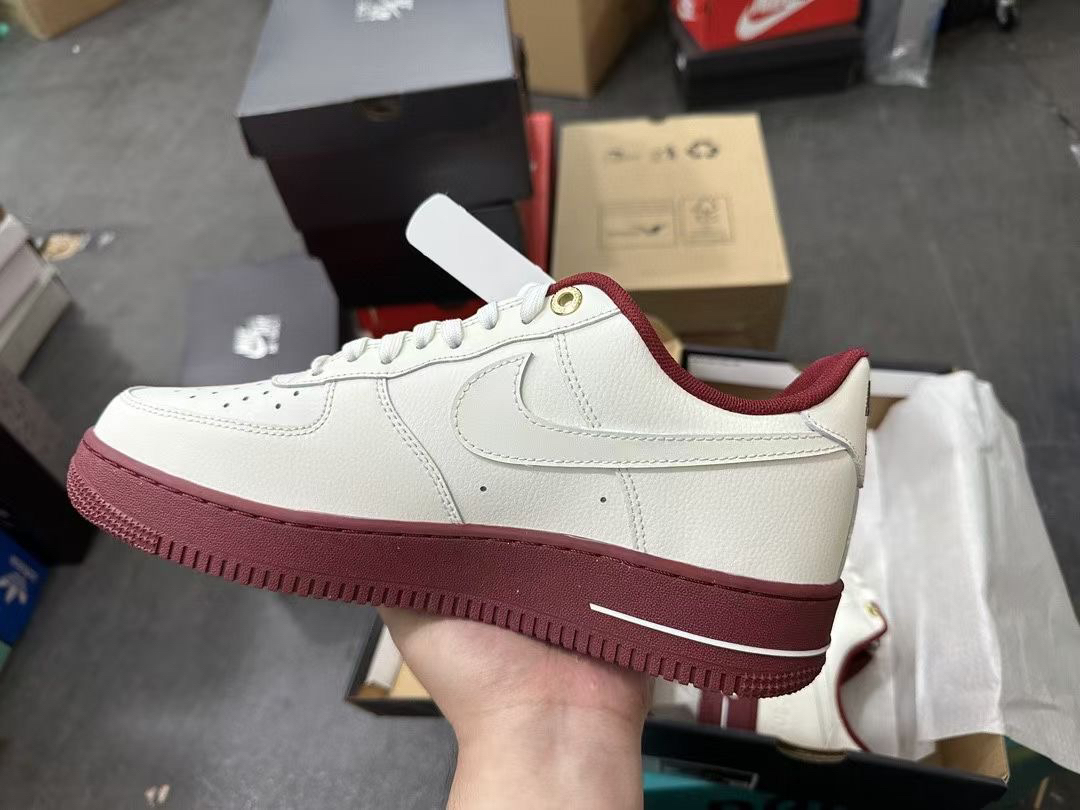 优点分析 1. 经典设计与潮流元素的结合 延续了Air Force 1标志性的低帮鞋型,纯白主色调搭配红色细节(如Swoosh、鞋带扣等),简洁大方且富有节日或主题氛围(如情人节元素)。 鞋面采用优质皮革材质,质感高级且耐磨性较强,适合日常穿着。 2. 舒适性与缓震性能 中底搭载全掌Nike Air气垫,提供良好的缓震效果,适合长时间站立或步行。 鞋领和鞋舌填充柔软,贴合...