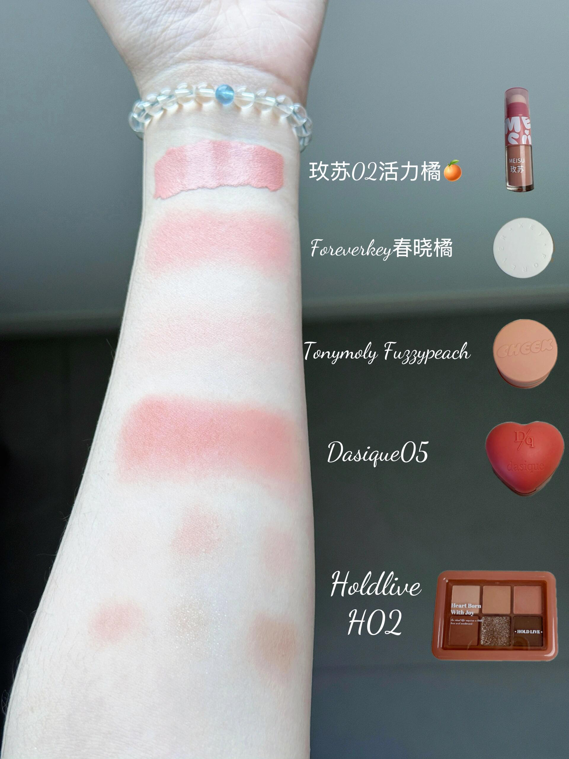 图二图三两种光线哈。 🍈活力橘: 元气感爆炸的浅蜜橘,不荧光、不挑皮,黄皮天菜,水润质地拍开是自然的暖调橘晕,春夏氛围感拉满! 🍈春晓橘: 低饱和的奶雾橘粉,橘调中混了点粉,哑光质地自带朦胧柔雾感,温柔不张扬,黄皮上脸是天生好气色的伪素颜心机款。 🍈fuzzy peach: 奶甜蜜桃橘,软萌又显嫩,哑光绒雾质地,上脸是微醺少女感,粉橘比例刚刚好,不荧光不显黑,像是咬了一口毛茸茸的水蜜桃...
