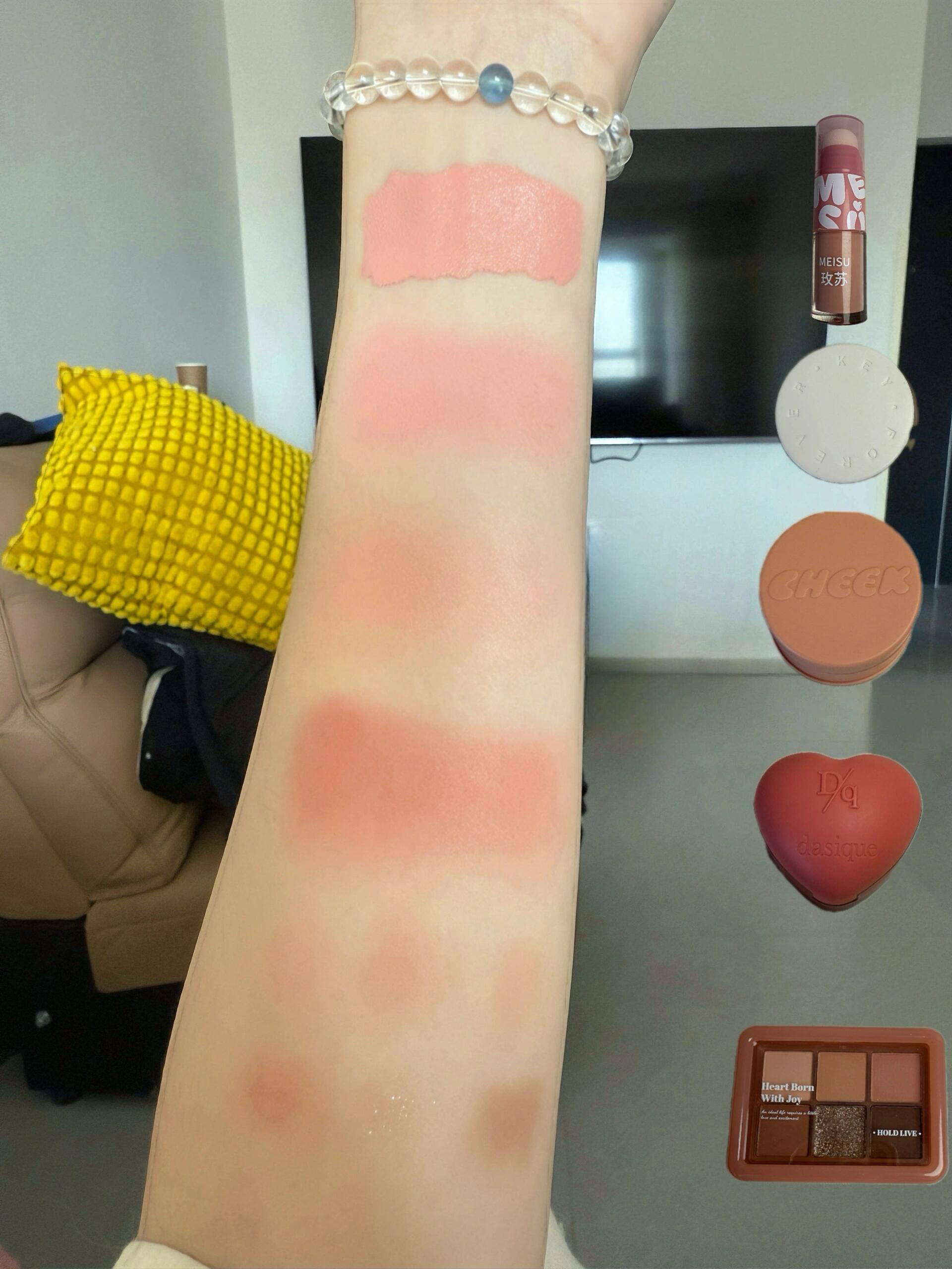 本篇笔记关联了HOLD LIVE 云纱粉冻眼影 一体盘 9g H02蜜瓜牛奶、dasique/代曦可 爱心唇泥 丝绒哑光唇颊两用 6.5g 05玫心密语 PUMKIN PUREE、MAYSOO/玫苏 轻漾液体腮红 持久防水自然修容 5.4g 02活力橘等商品,为用户提供真实的使用体验和购买参考。