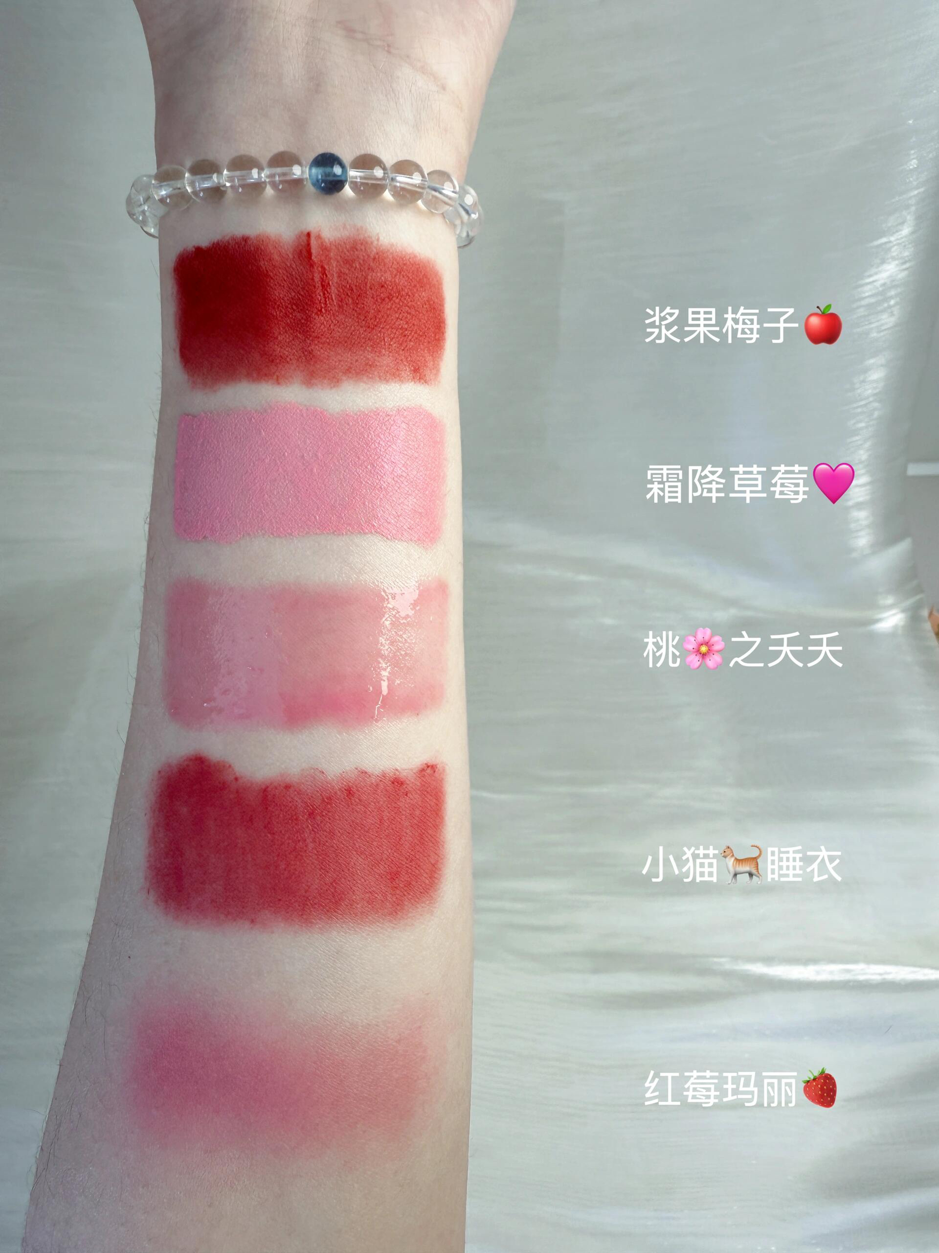 🌸浆果梅子:橄榄皮天菜颜色,外包装其貌不扬的,但是这个质地太nice了,哑而不干,特别丝滑,一点不搓泥。 🌸霜降草莓:就素草莓奶昔的颜色,太nun太nun了,可当膨胀色,鼻尖下巴都来点儿~ 🌸桃之夭夭:就是桃花的颜色,肉眼比拍出来还要嫩,嘴巴嘟嘟,很滋润,要用卸妆产品去卸,不然会有点儿染唇。 🌸小猫睡衣:这支太韩太韩了!超级明艳,这就是春夏的颜色哇。活力满满,薄涂黄皮也可以驾驭。 🌸红莓玛丽:白皮...