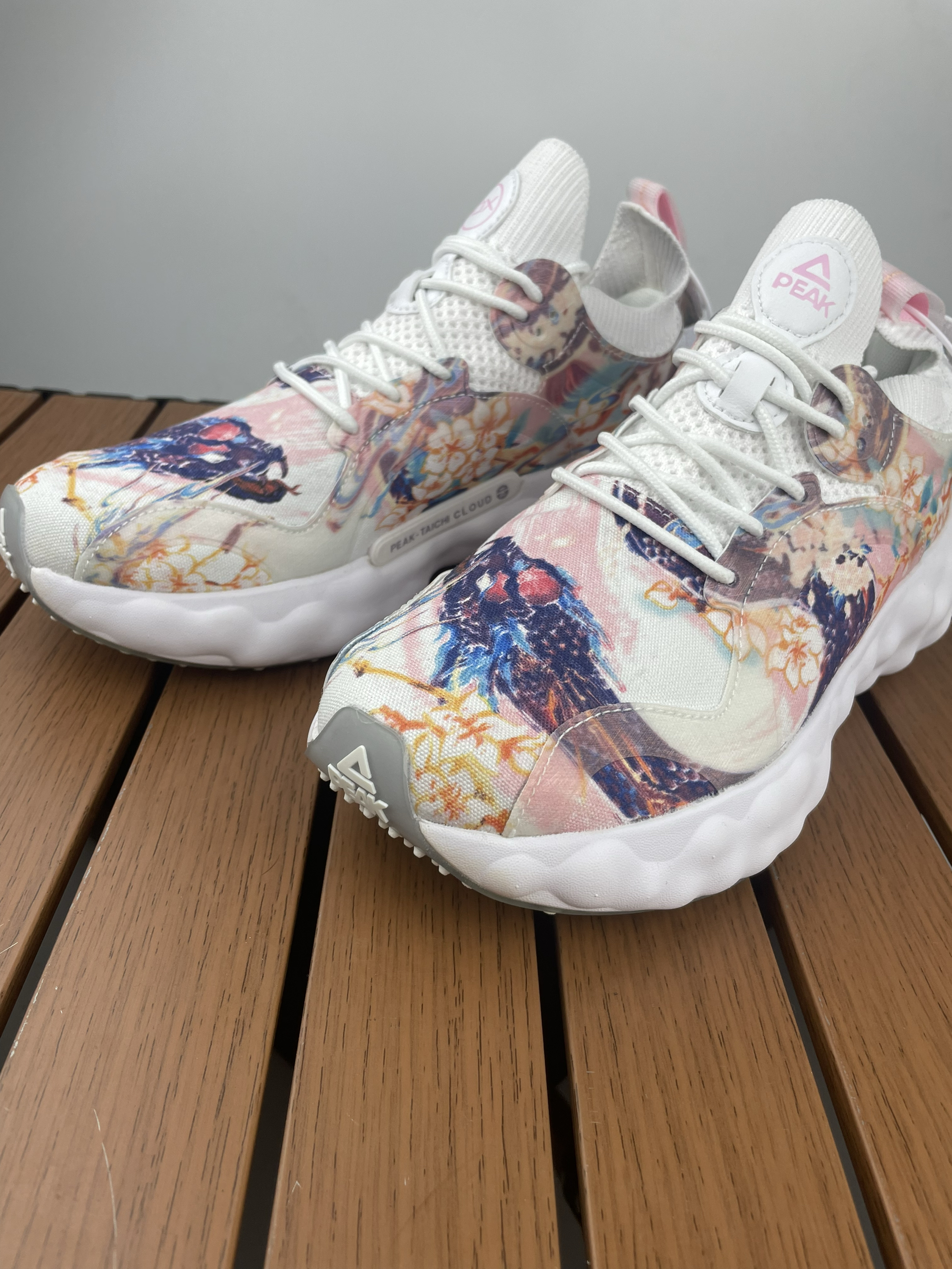 宝子们,匹克又出王炸,这次是和桃夭联名的态极云! 鞋面设计美到失语,融入桃夭元素,精致又吸睛,走哪儿都是焦点💯 中底是超厉害的态极科技,软弹感直接拉满,每一步都像踩在蓬松云朵☁ 上,软乎乎还超有韧性。而且轻到飞起,双脚毫无负担,逛街、运动,轻松拿捏。 日常出街搭牛仔裤、运动装,适配度 100%。好看又好穿,谁能扛得住?冲就完事儿!