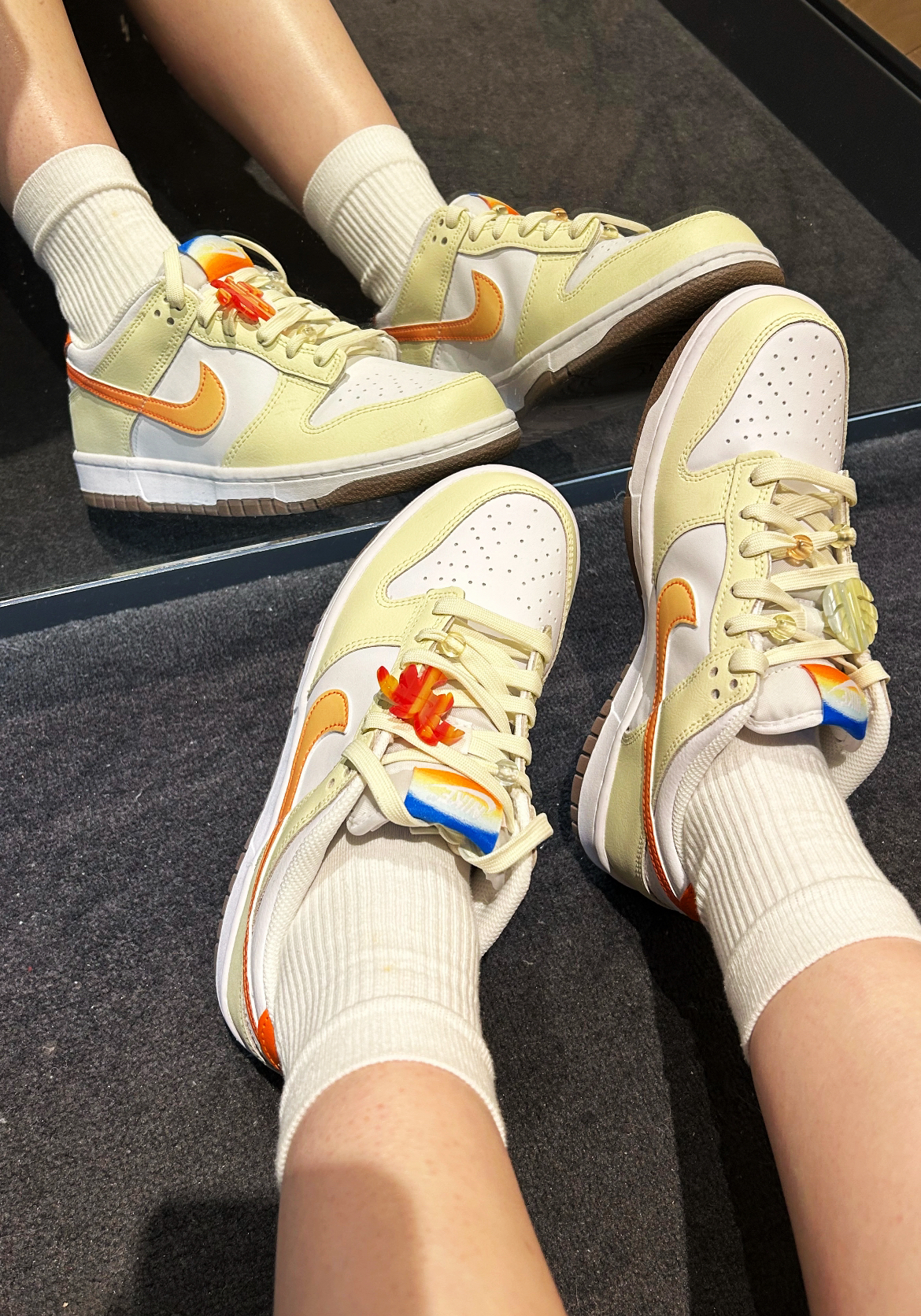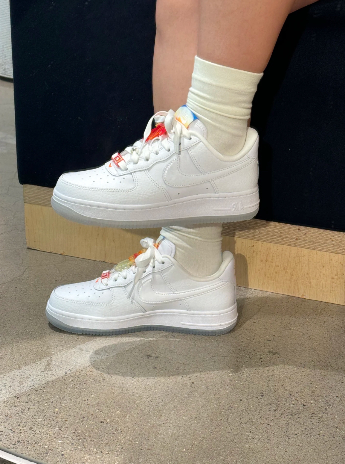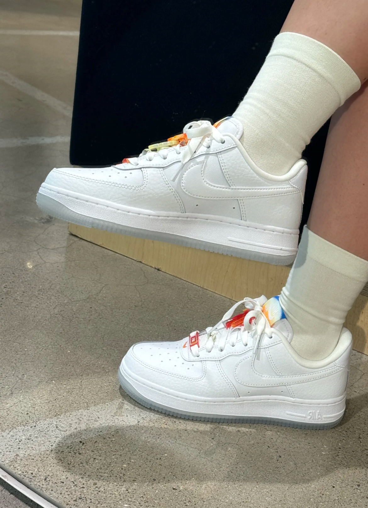 👟球鞋名称:Nike Air Force 1 📌是否偏码【偏大/不偏码/偏小】:不偏码 ⛹️性能打分(每项满分均为10): 包裹:10 缓震:9 抓地:8 耐磨:10 稳定:10 防侧翻:10 透气:10 重量:8 📖总结评价:鞋舌和后跟logo的渐变设计太绝啦 夏日🌿海边🌊沙滩🏝️落日🌇 这些元素都体现出来了 感觉夏威夷的风扑面而来💨 整体就很清新很活力🌱 鞋带上的饰品可拆卸的哦