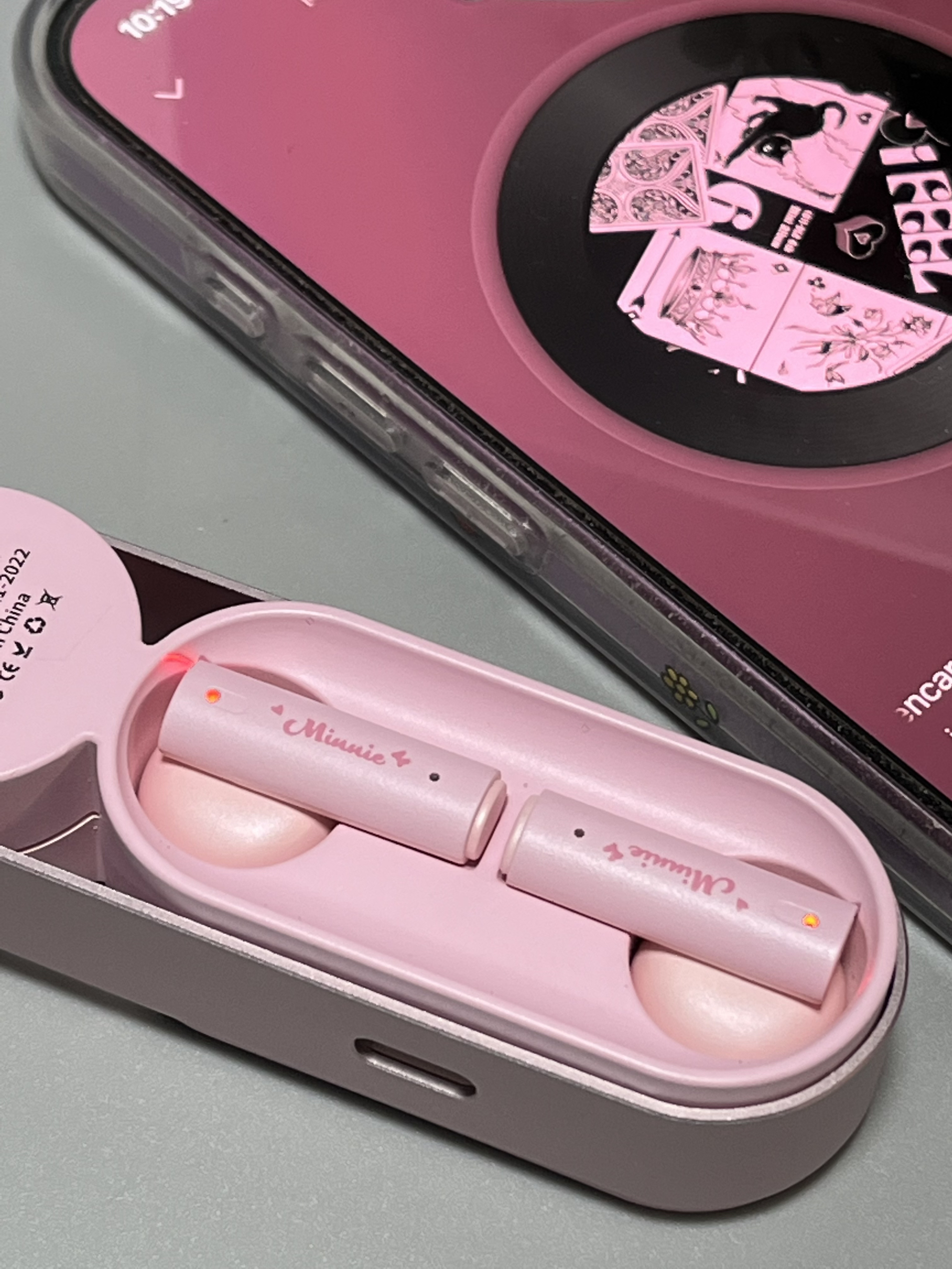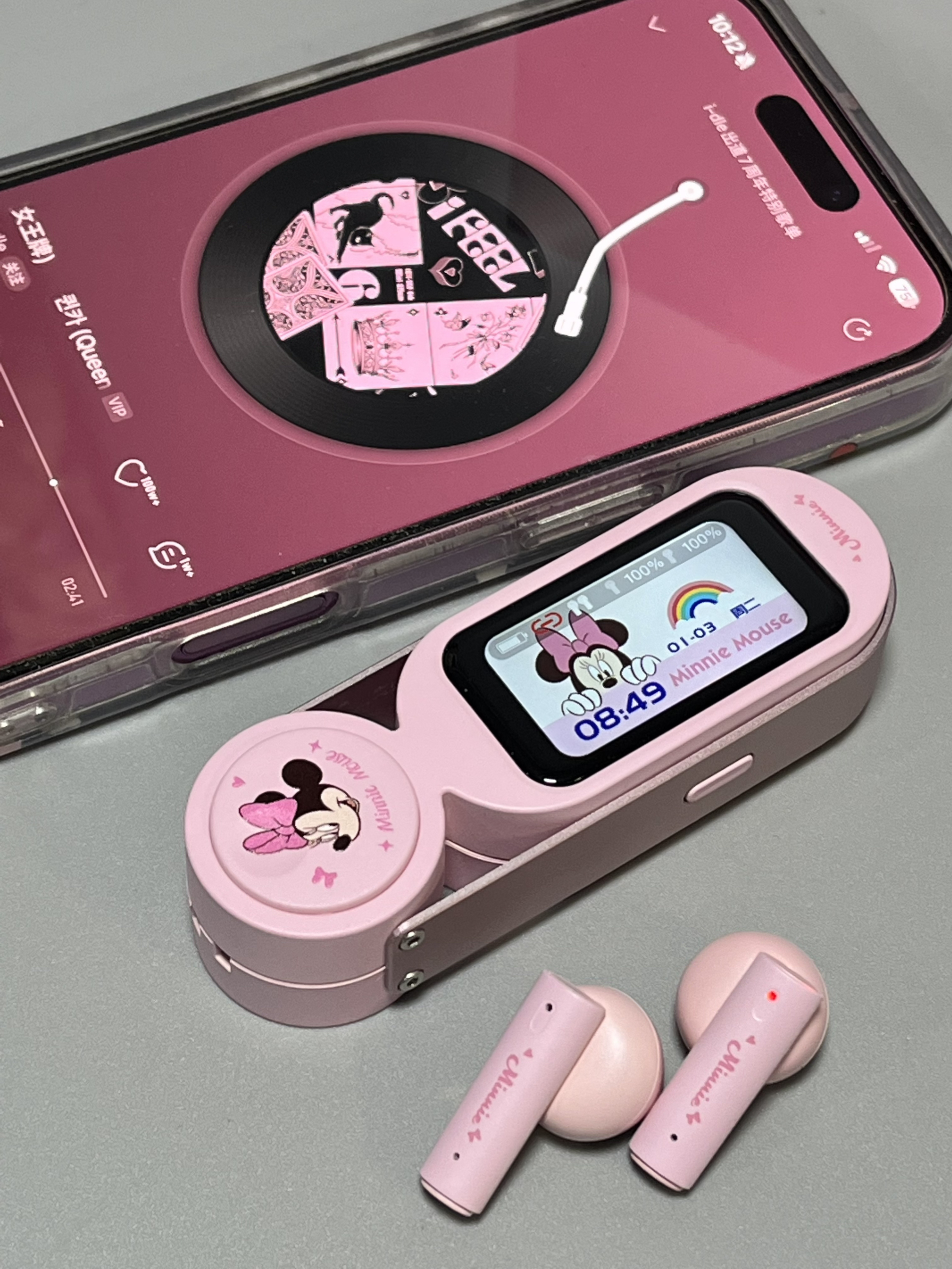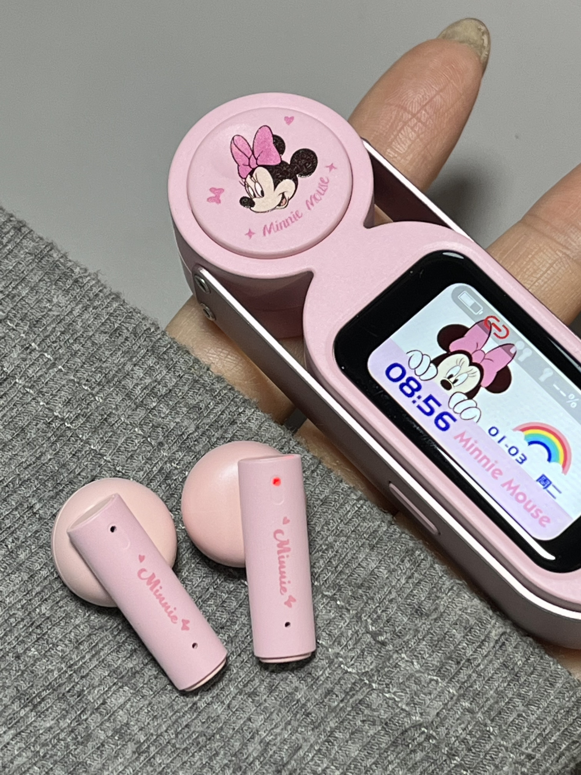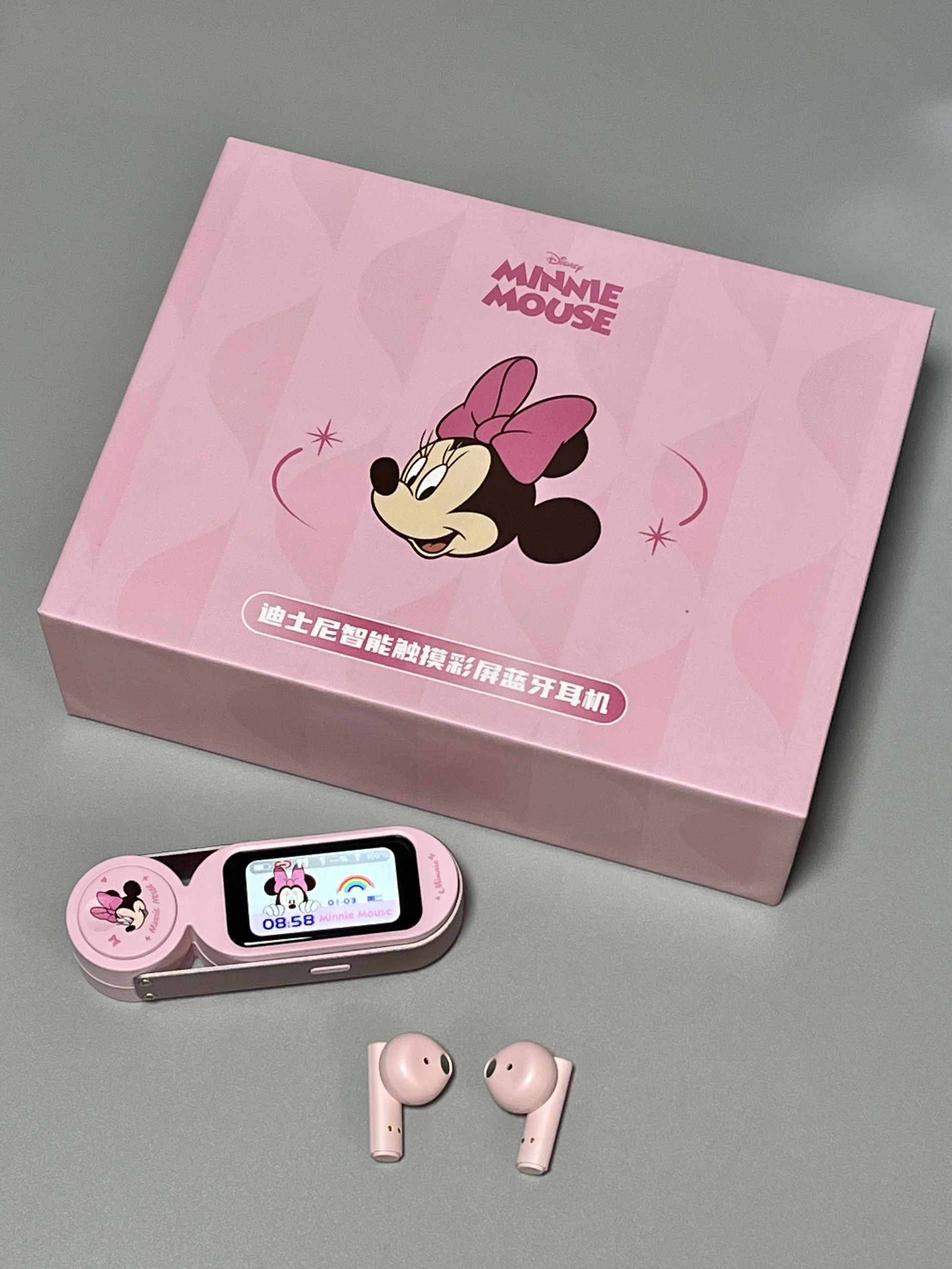 好可爱! 是迪士尼米妮耳机耶 有屏显示,可以玩游戏、打电话、听音乐好方便 小耳朵友好,久戴耳朵也不痛 我觉得音质蛮不错的,用它听歌都更沉浸啦 礼盒包装我觉得送人也是蛮不错的 女孩汁真的会对粉嘟嘟礼盒心动呀
