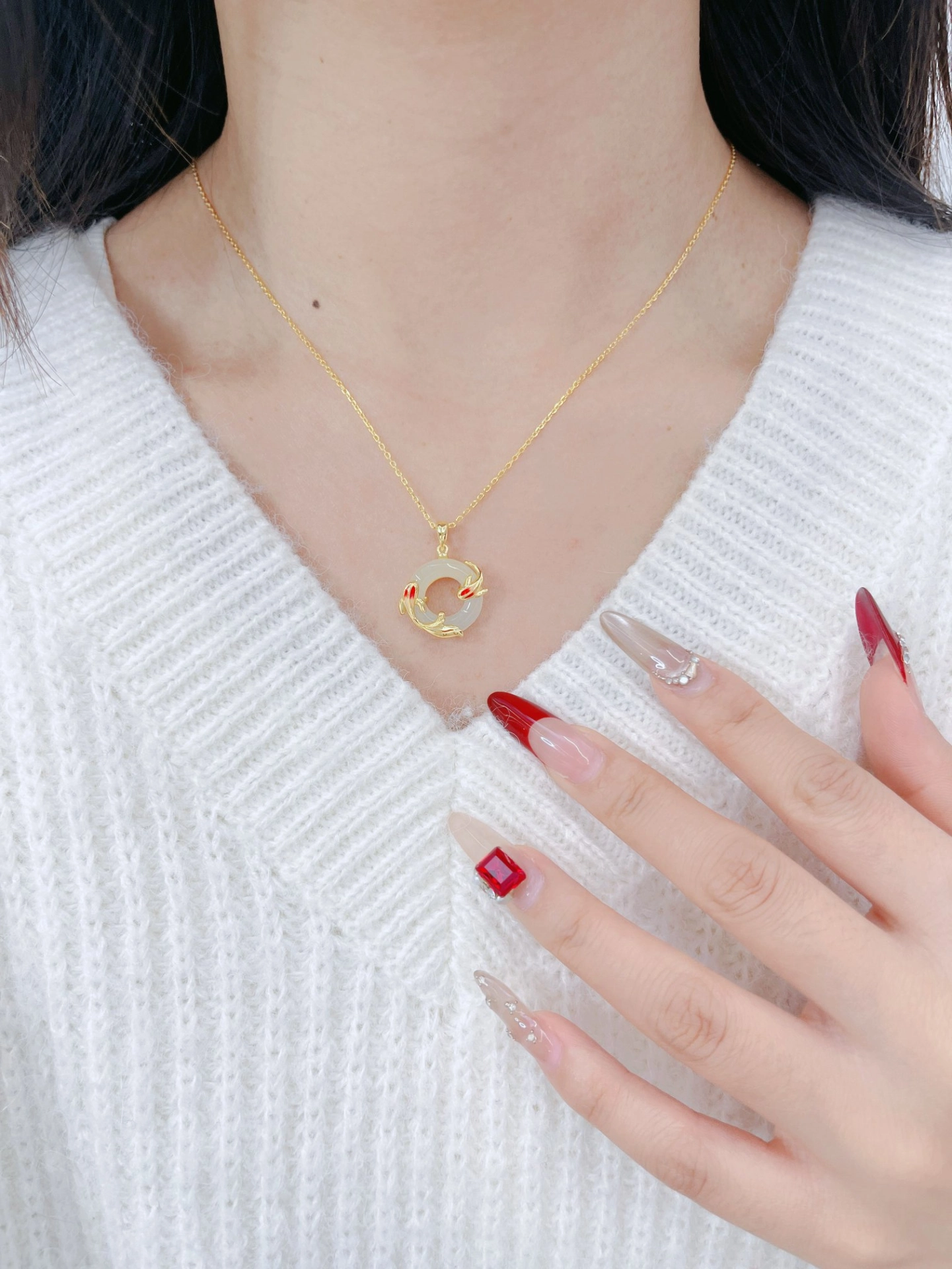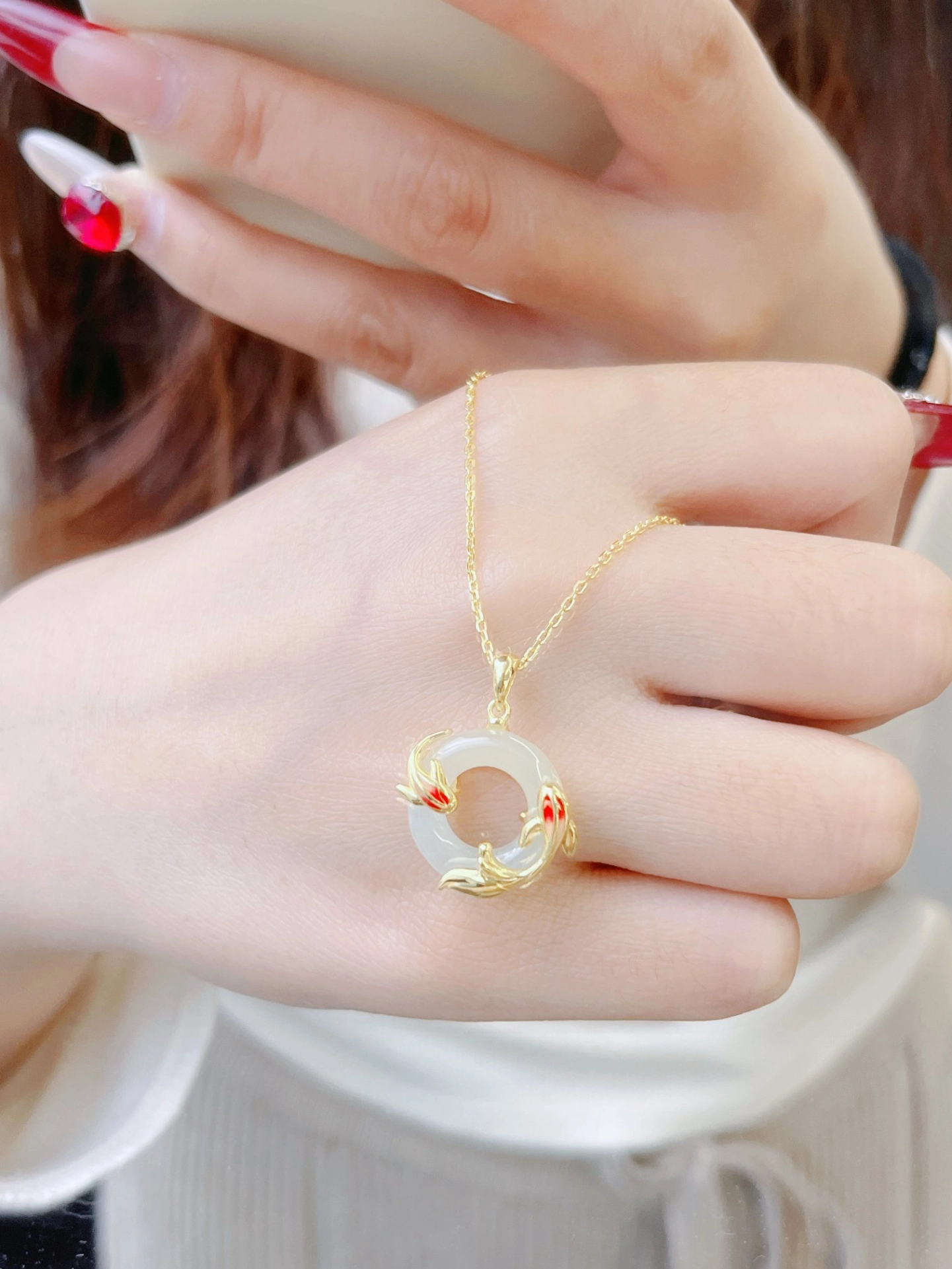 这款和田玉锦鲤平安扣项链,锦鲤栩栩如生,平安扣温润如初。戴上它,愿你的每一个梦想都能如愿以偿,好运常伴左右!