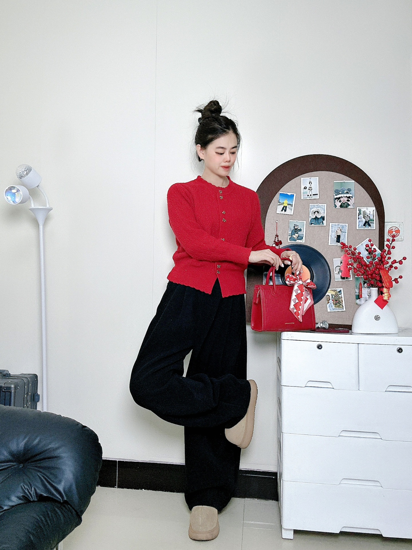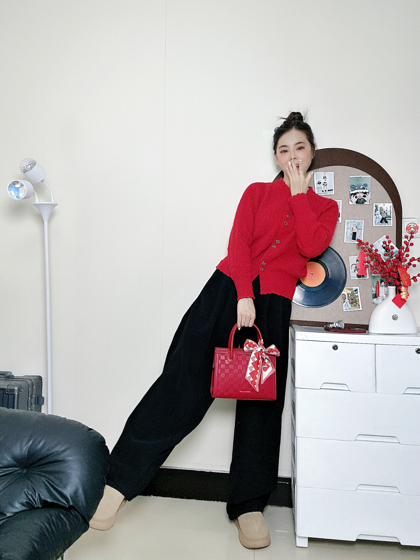 针织开衫➕阔腿裤➕厚底鞋 上短下长显高显瘦显腿长✌🏻️ 穿搭怎么能少了点睛之包呢 #稻草人 戴妃包 红色的包包还是第一次背 正好本命年背红包发大💰 棋盘格很有质感 搭配的丝巾有那么一丢丢浪漫 包内容量很大手机 充电宝等日常用的都可以装的下 可单肩可斜挎可手拎 日常通勤 逛街背都是👌🏻的 图源网络侵删