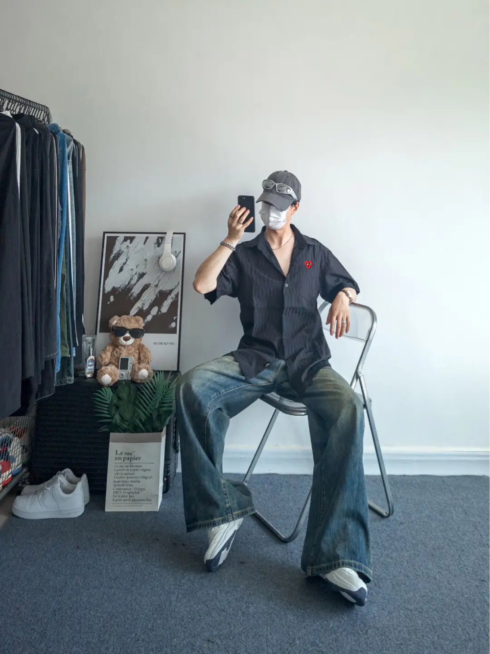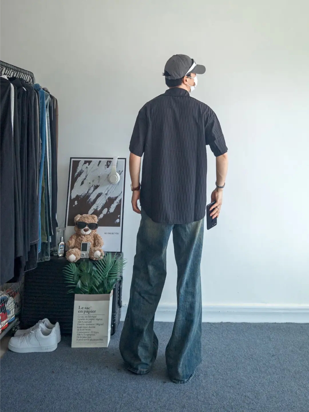 今日份上身的是一款来自查尔斯桃心的肌理感衬衫,黑色上身有酷酷的感觉,下身搭配了一条水洗牛仔裤,清爽又街头