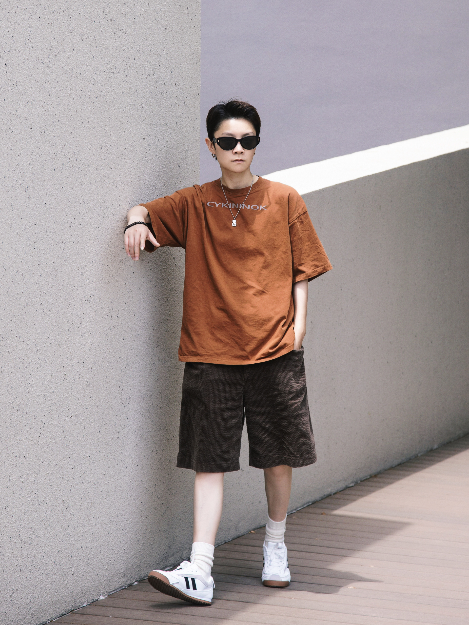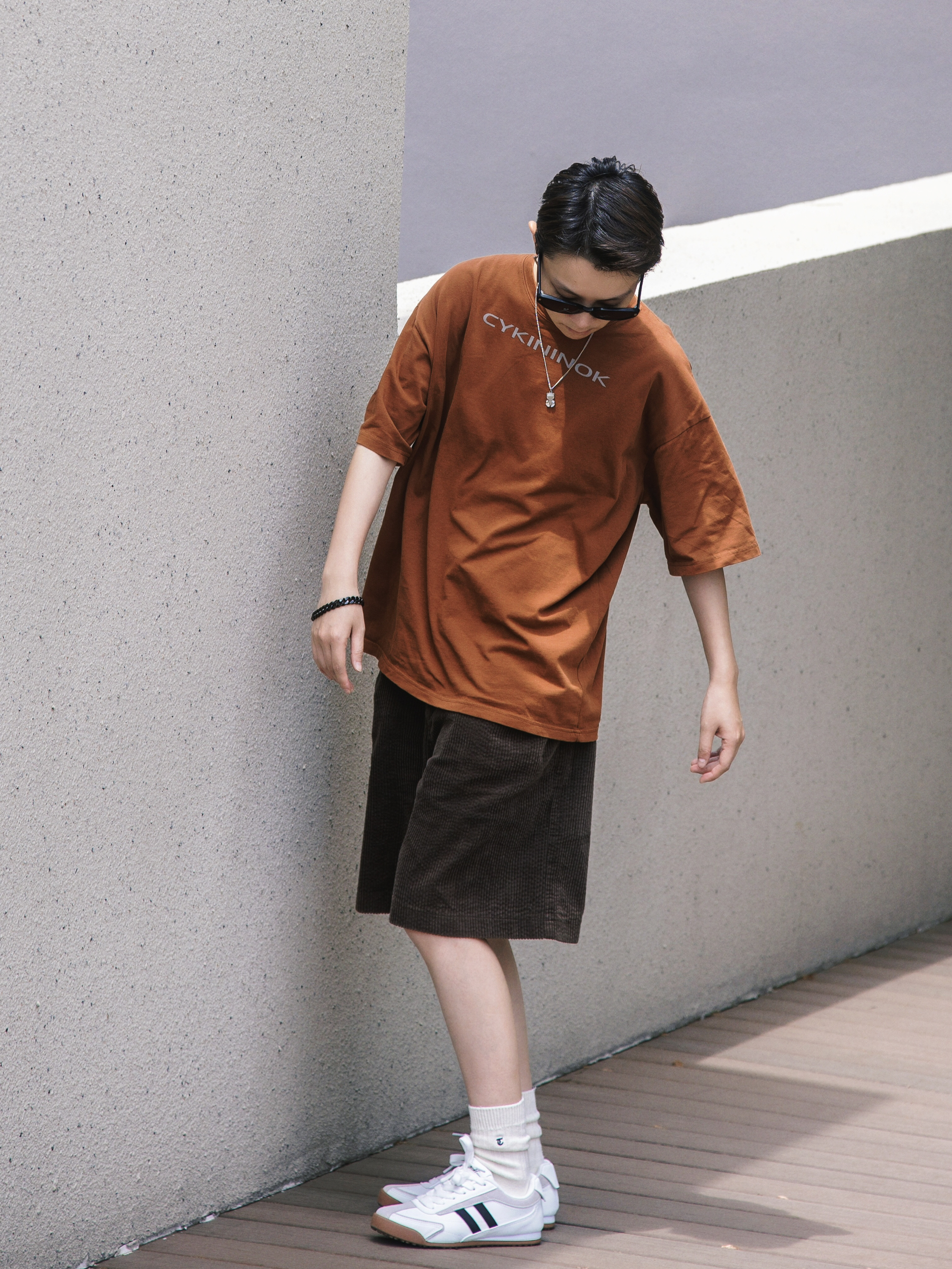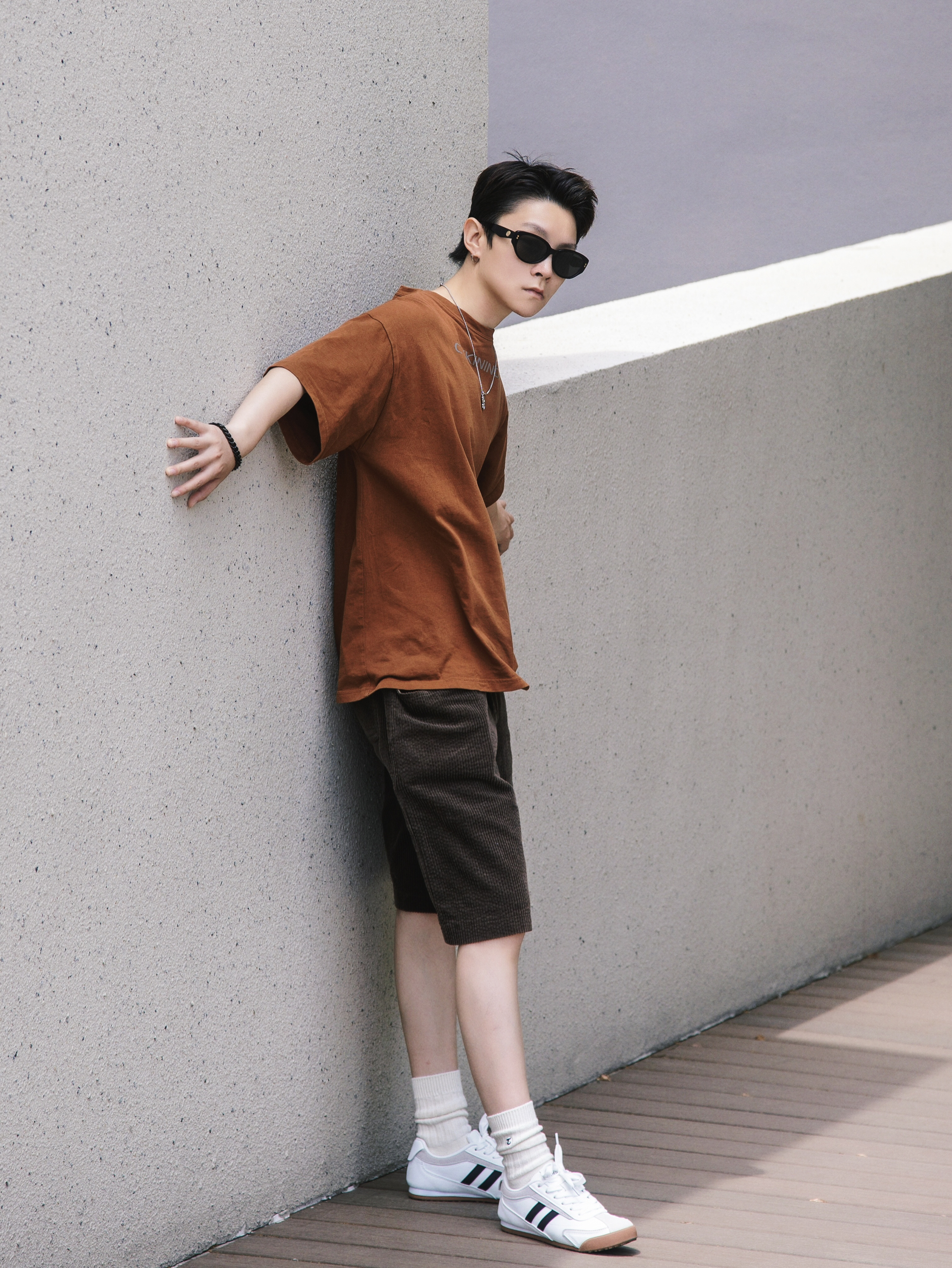 极简的夏日 短袖短裤+德训鞋就够了 分享一套夏日冰拿铁穿搭 穿搭指南: 上身一件焦糖色短袖T恤 宽松版型 简单随性 配一条棕色五分短裤 同色系搭配 不挑人好驾驭 上脚一双tcellars德训鞋 经典的黑白棕配色合整体呼应 柔软薄地 春夏春夏松弛感单品 整体复古焦糖色系 简约色彩两不误