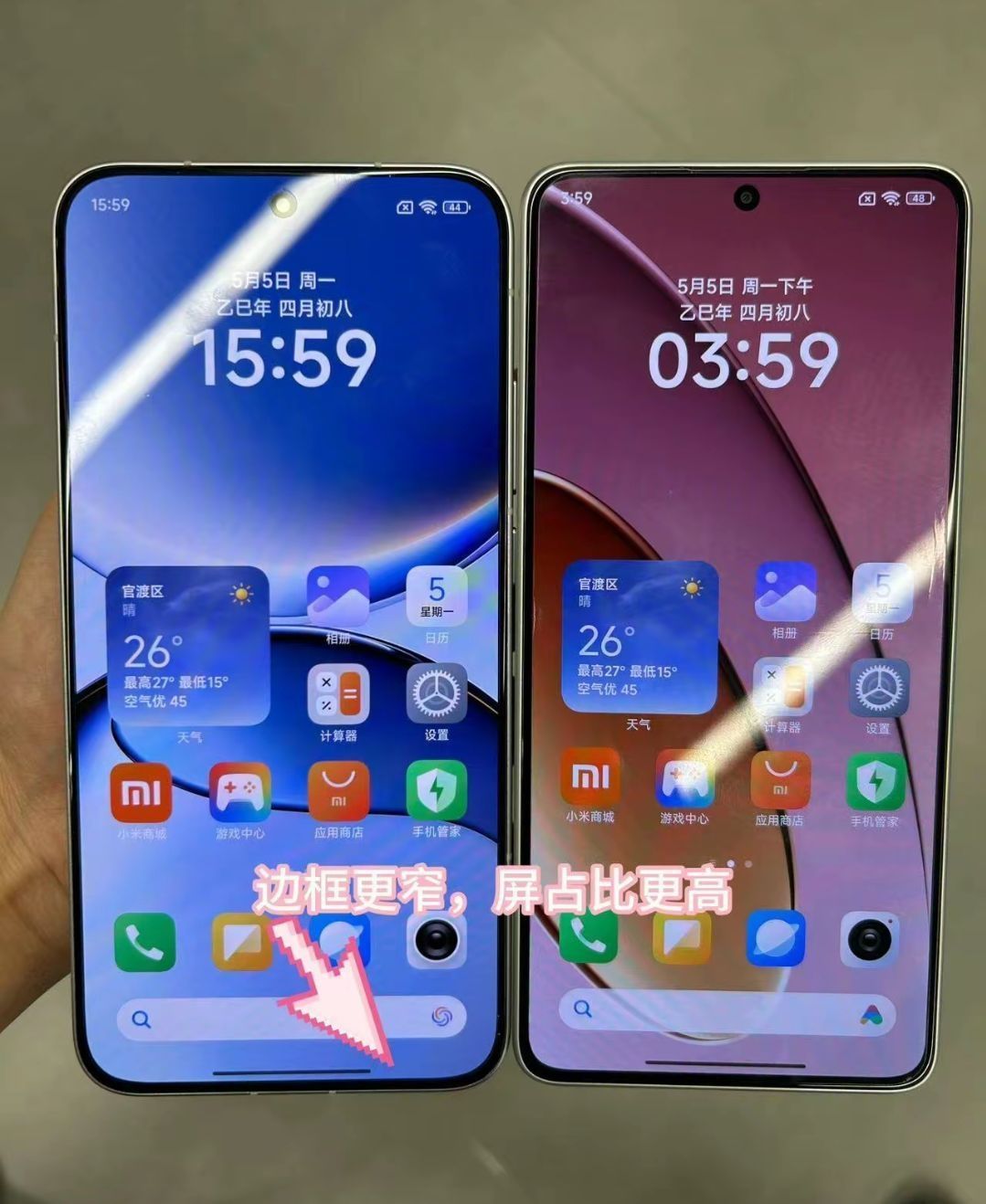 1 红米Turbo 4 说真的,Turbo 4最打动我的一点就是手感!一天十几个小时机不离手,203g终于不会压到小拇指变形,长时间握着玩游戏、刷短视频是真的省劲。灯带晚上看剧时很有氛围感,追小偶像直播气氛直达点满。性能说不上炸裂,但刷社交、拍照、工作开大文件,全都跟得上。就是电池续航一般,日常使用还OK,但遇上周末高强度玩还是会慌。说到底偏向轻薄和个性化体验,适合不喜欢笨重手机的女生,包包里不占...