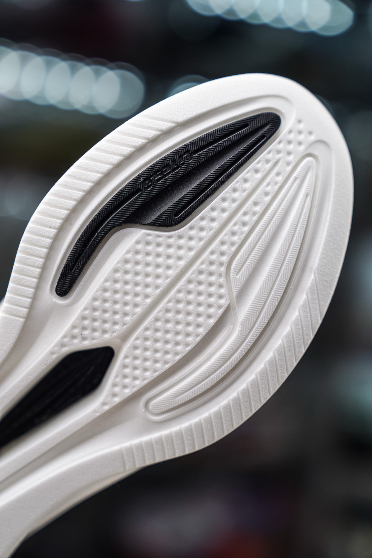 撕开鞋盒瞬间就被这双「轻羽白」击中心脏!半透明蝉翼鞋面叠加大面积冰感网纱,上脚仿佛给双足套上会呼吸的冰甲,39℃高温下奔跑依旧像踩着清凉瀑布💦 中底全掌发泡材料颠覆认知——起跑时像被浪花推着向前冲,落地时又化作水面般的温柔托举,10公里后仍能清晰感受到回弹脉冲。 纱架贾卡鞋面+奇弹中底还有中足内置了一块tpu抗扭,稳定保护的把足跟锁进安全舱,过弯道时稳得像是轨道列车,波浪纹橡胶大底在湿滑跑...
