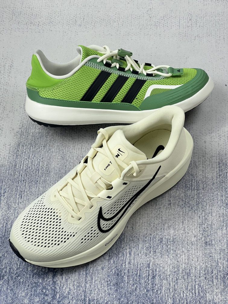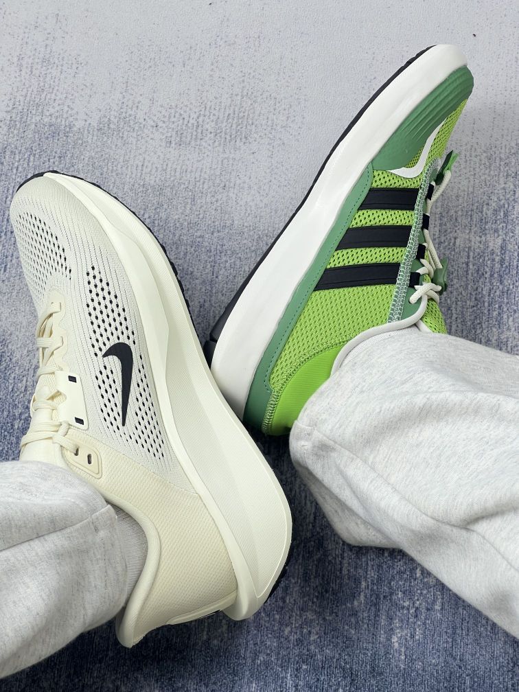 ✅ 材质对比 Nike Quest 6米黑色鞋面采用高密度透气网眼布,搭配合成革加固,中底是柔软的Phylon泡棉,外底橡胶纹路清晰抓地力稳。整体重量约279克,轻量感明显。 adidas绿黑色款(以Adizero RC 2为例)鞋面是工程网眼布,中底搭载Lightstrike Pro科技,回弹强劲,外底Adiwear橡胶耐磨防滑。 ✅ 上脚体验 Quest 6刚穿时前掌略紧,但跑几次后逐渐贴合...