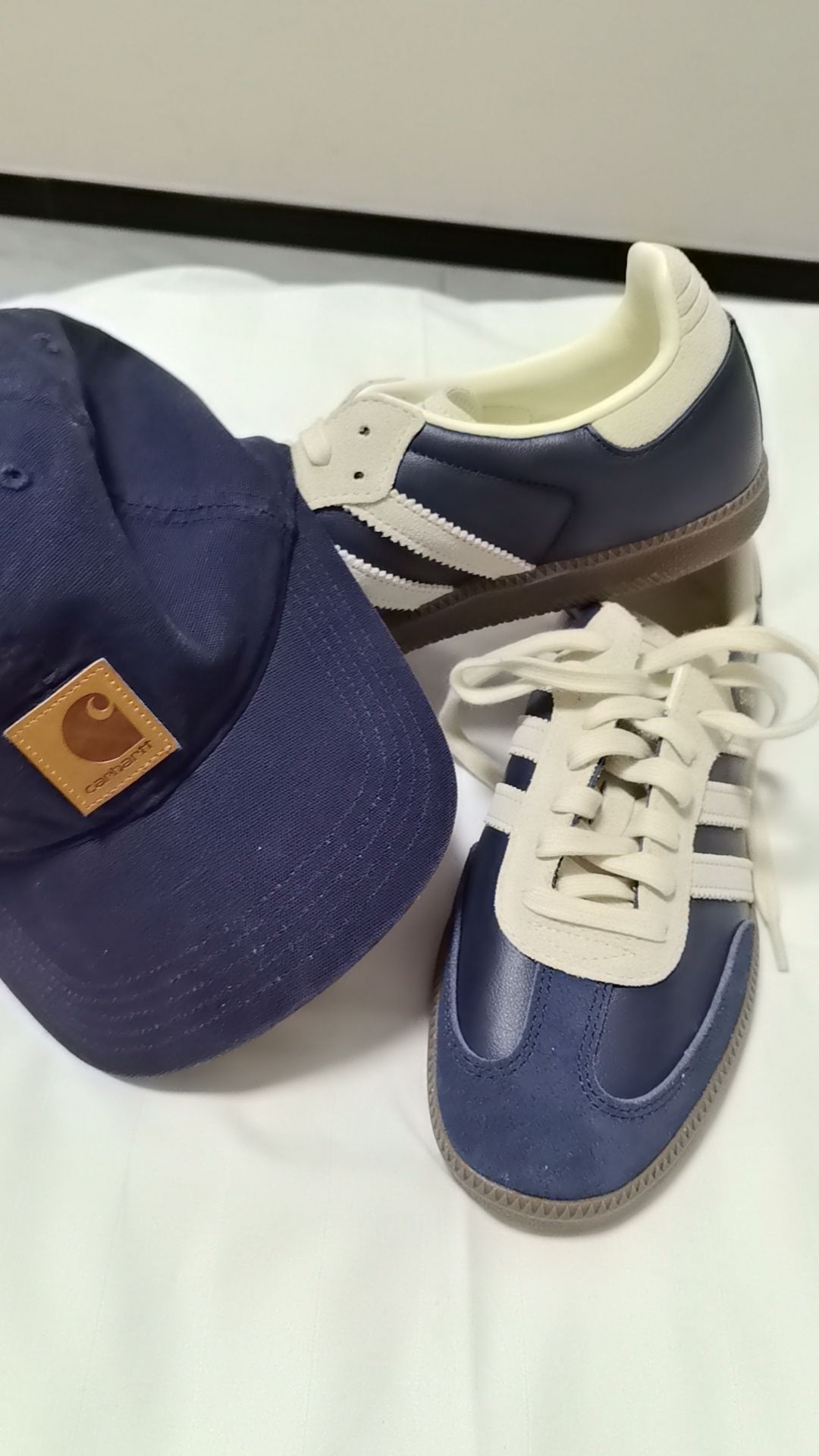 一双阿迪的桑巴,上脚很百搭,第一次体验这种鞋型,脚感很舒服,非常喜爱, 我买的是藏蓝色,搭配一顶藏蓝色的卡哈特帽子,以及一件原牛外套,颜色的搭配使三者看起来很舒服,更加协调,朋友也夸好看,很有品,,尤其是帽子和鞋子,手脚呼应,非常百搭, 帽子和原牛外套也很搭配,卡哈特的帽子品质没得说,藏蓝色和原牛颜色也很相似,三件单品不管怎么搭配都会很舒服。身高|体重:176/129 🧍♂️ 穿搭风格:干净,...
