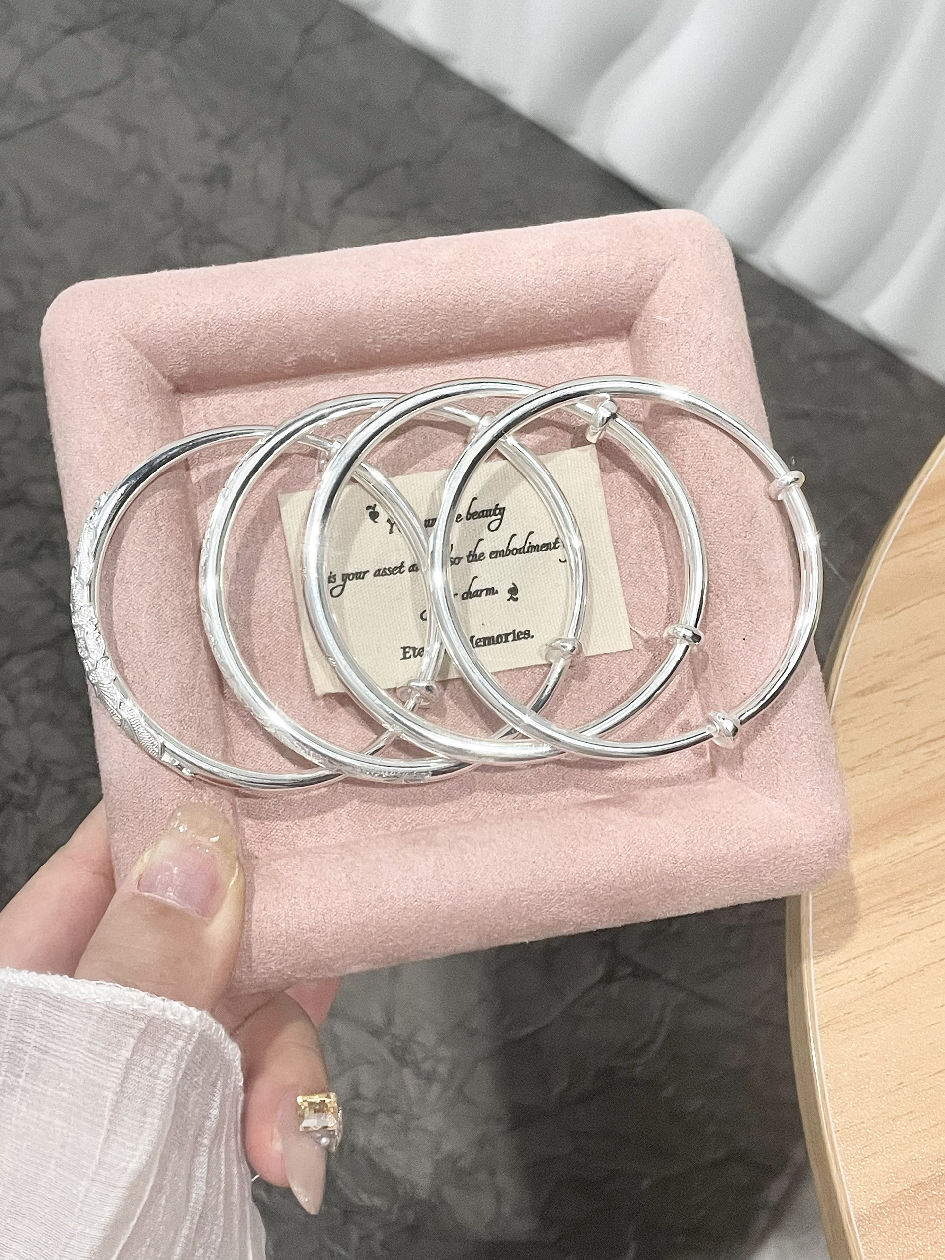 分享我天天戴也不腻的银手镯子 新中式的风格尊滴百搭耐看 我这几个都是精致又低调的款式 戴手上温柔有存在感 每个手镯还有各自的祝福寓意 日常当作礼物给妈妈、女友都适合~