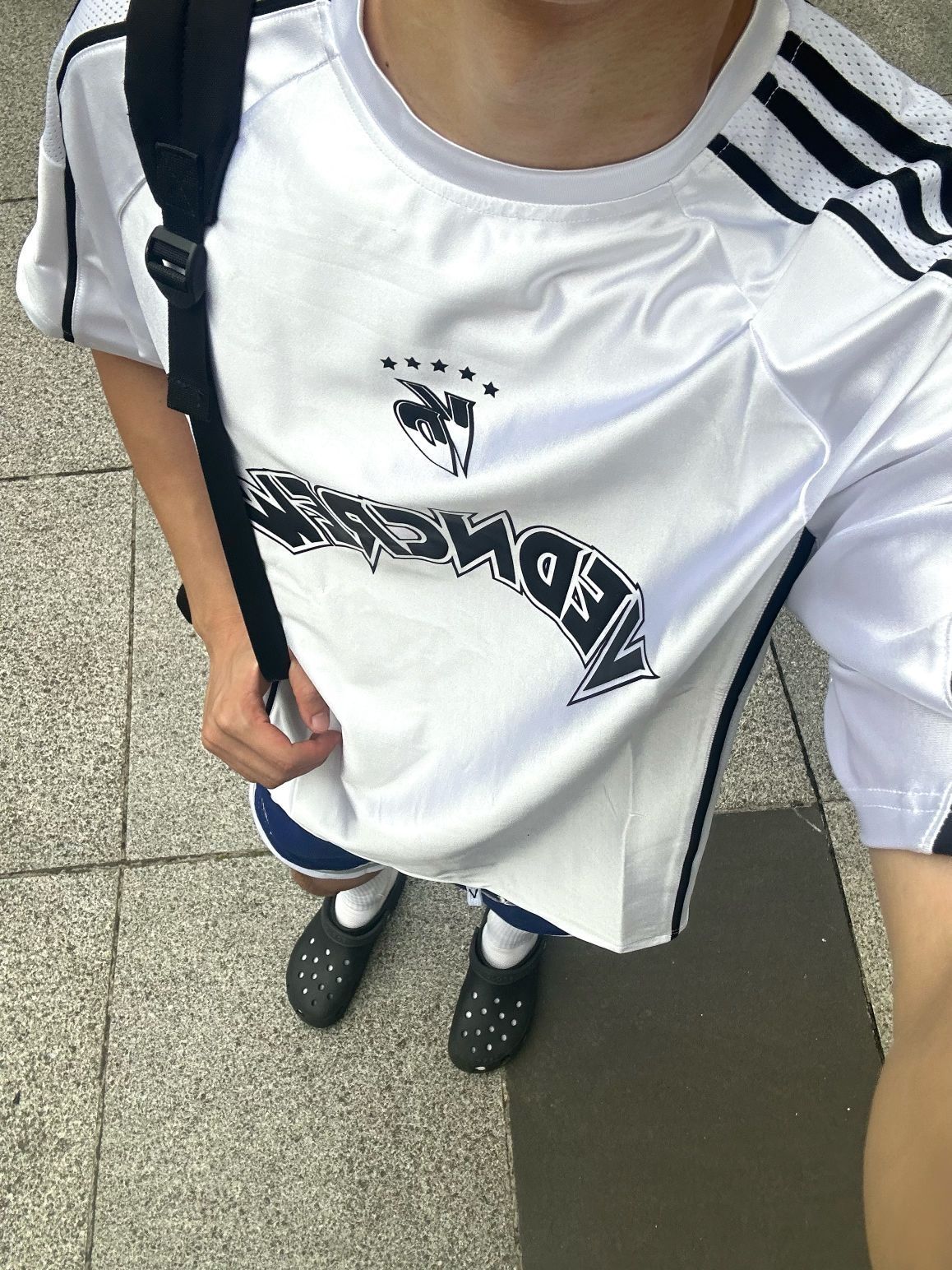 今日份穿搭分享look👀 衣服是 BIPOLAR 家的天蓝色美式短袖👔 背后的莫比乌斯环印花潮酷时尚 面料舒适透气 上身版型宽松显瘦🔥 再搭配一条黑色休闲运动裤 一套搭配下来 夏日出街百搭又好看🚶