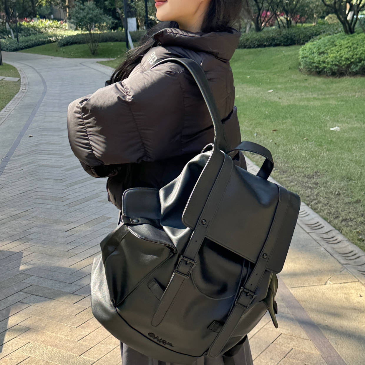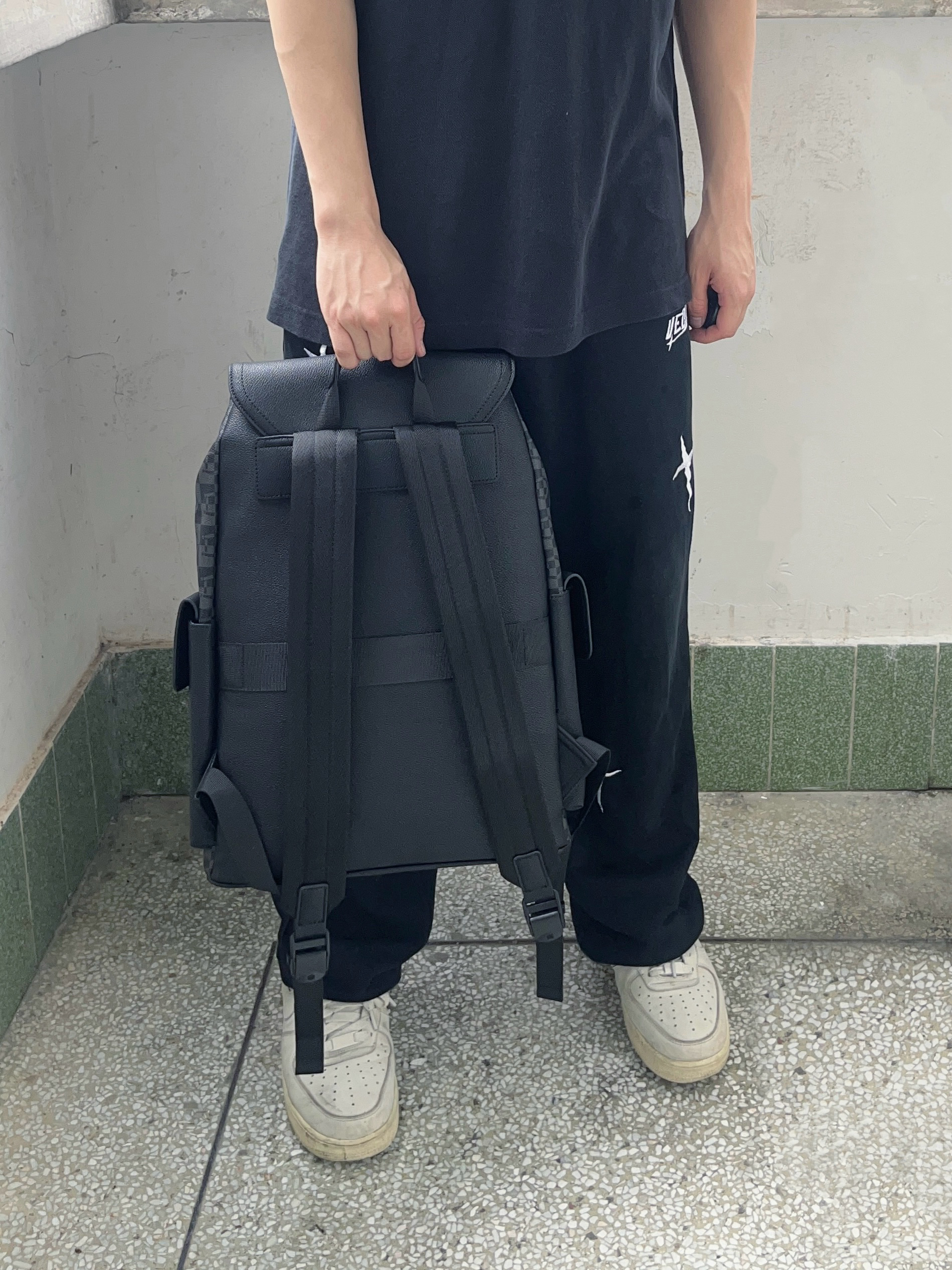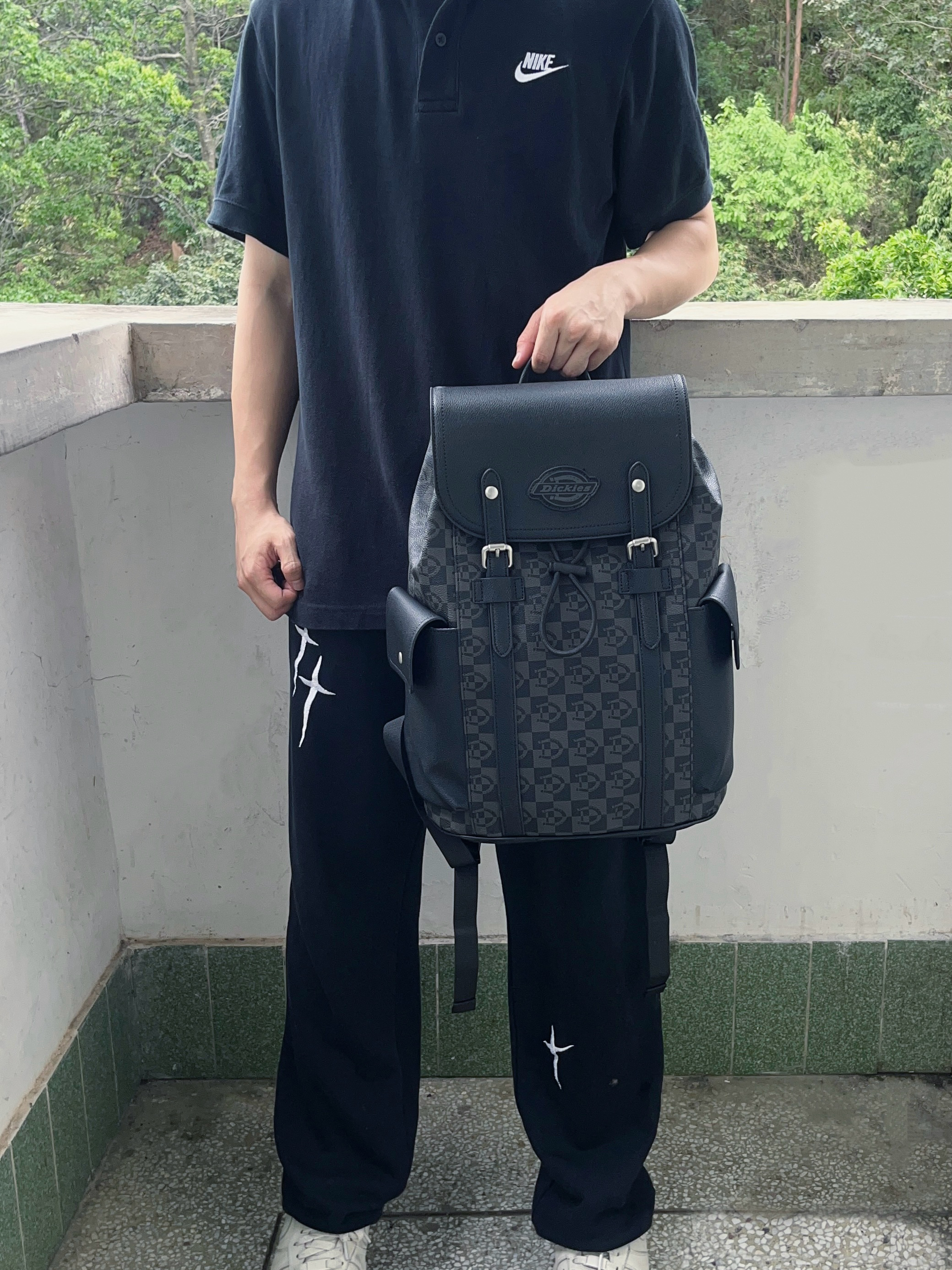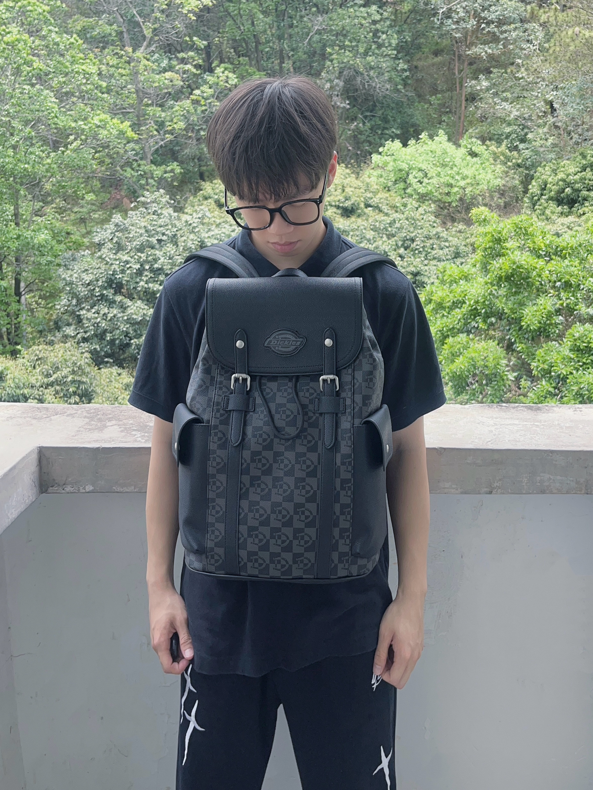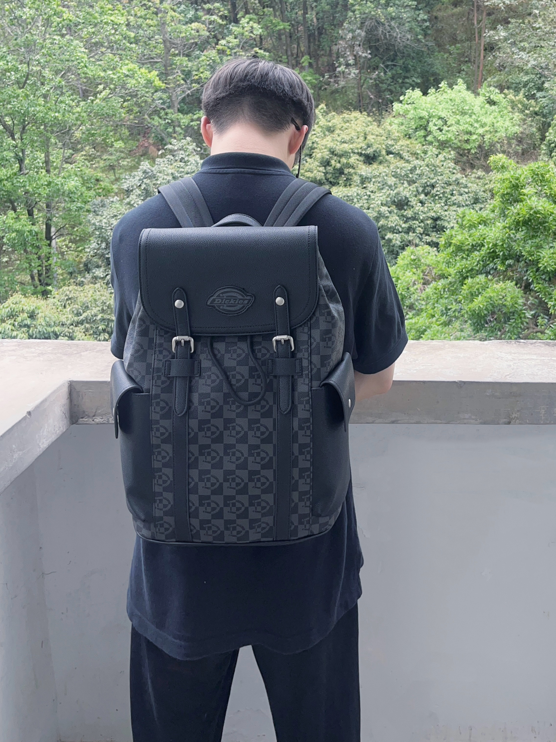 今日份穿搭分享look👀 黑色Polo衫短袖搭配休闲直筒裤 背的是 Dickies 家的潮流双肩包🎒 老花满印设计潮酷时尚🔥 PU皮面料质感满满 内部容量也很大 一套搭配下来 无论是日常通勤 还是运动休闲都很合适🚶