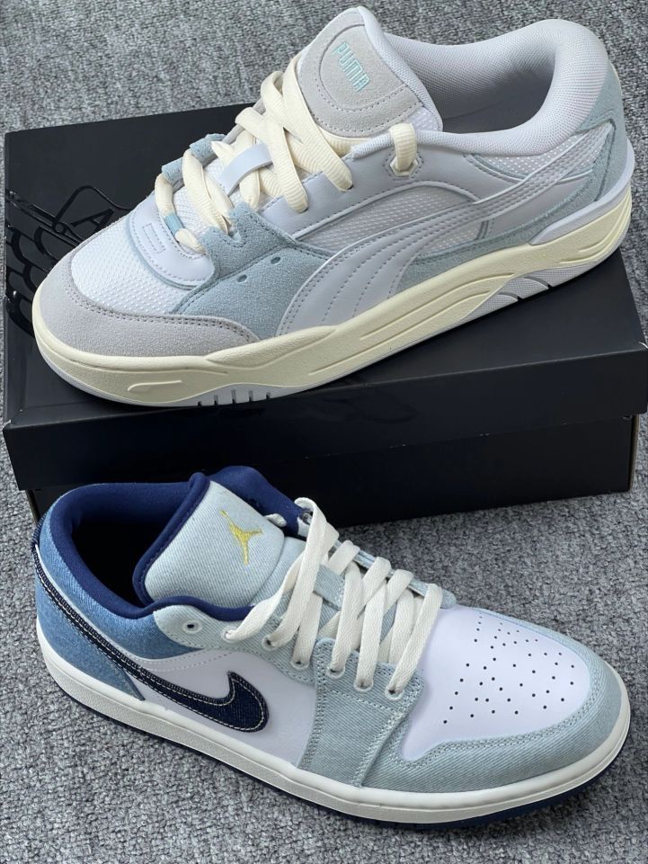 Nike 入手理由,蓝白配色清新吸睛,牛仔布与皮革拼接新颖,质感上乘,一眼就爱😍😍 优缺点:鞋面材质组合独特,Swoosh 醒目,上脚轻便。但拼接处易磨损,牛仔布不防水🤔🤔 尺码建议:按常码选 搭配推荐:配白T、浅色牛仔裤,活力青春;搭运动束脚裤、连帽衫,街头潮流😘😘 总结:时尚感强,有小瑕疵,日常出街适配度高,潮流人士优选😙😙 Puma 入手理由:浅色调简约干净,米白配浅灰,淡蓝点缀精致,越看...