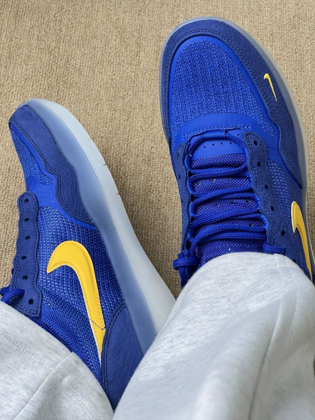 《Nike SB PS8蓝鞋实测:舒服好搭,走路带弹》 上脚软乎乎,鞋面是带点挺括的帆布,新鞋不磨脚,鞋舌薄厚刚好,脚背高也不压。蓝色特别正,配短裤、运动裤都清爽,穿去上课、逛街被要了链接。 鞋底带Zoom气垫,踩下去有回弹,走1万步脚底不酸,橡胶底纹路深,下雨天跑楼梯也稳。男女同款买了情侣款,我39码男友43码,都说鞋型显瘦,不显脚笨。缺点是鞋口略松,系紧鞋带更跟脚,日常穿完全挑不出毛病。