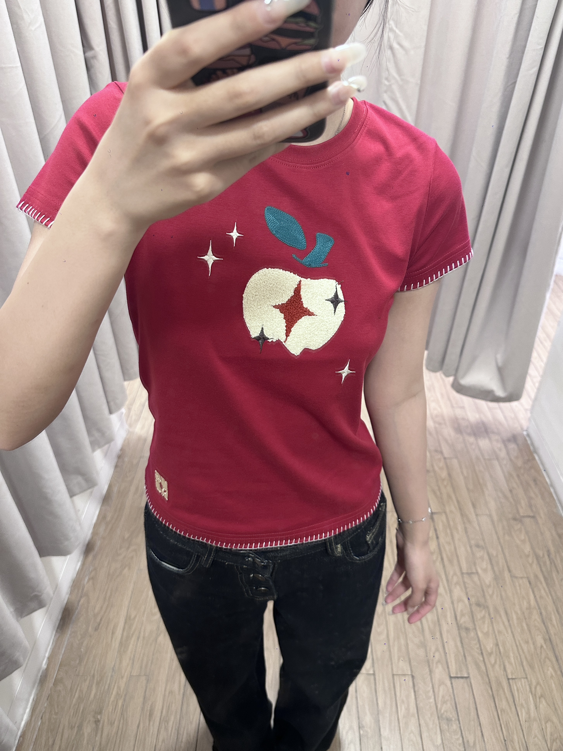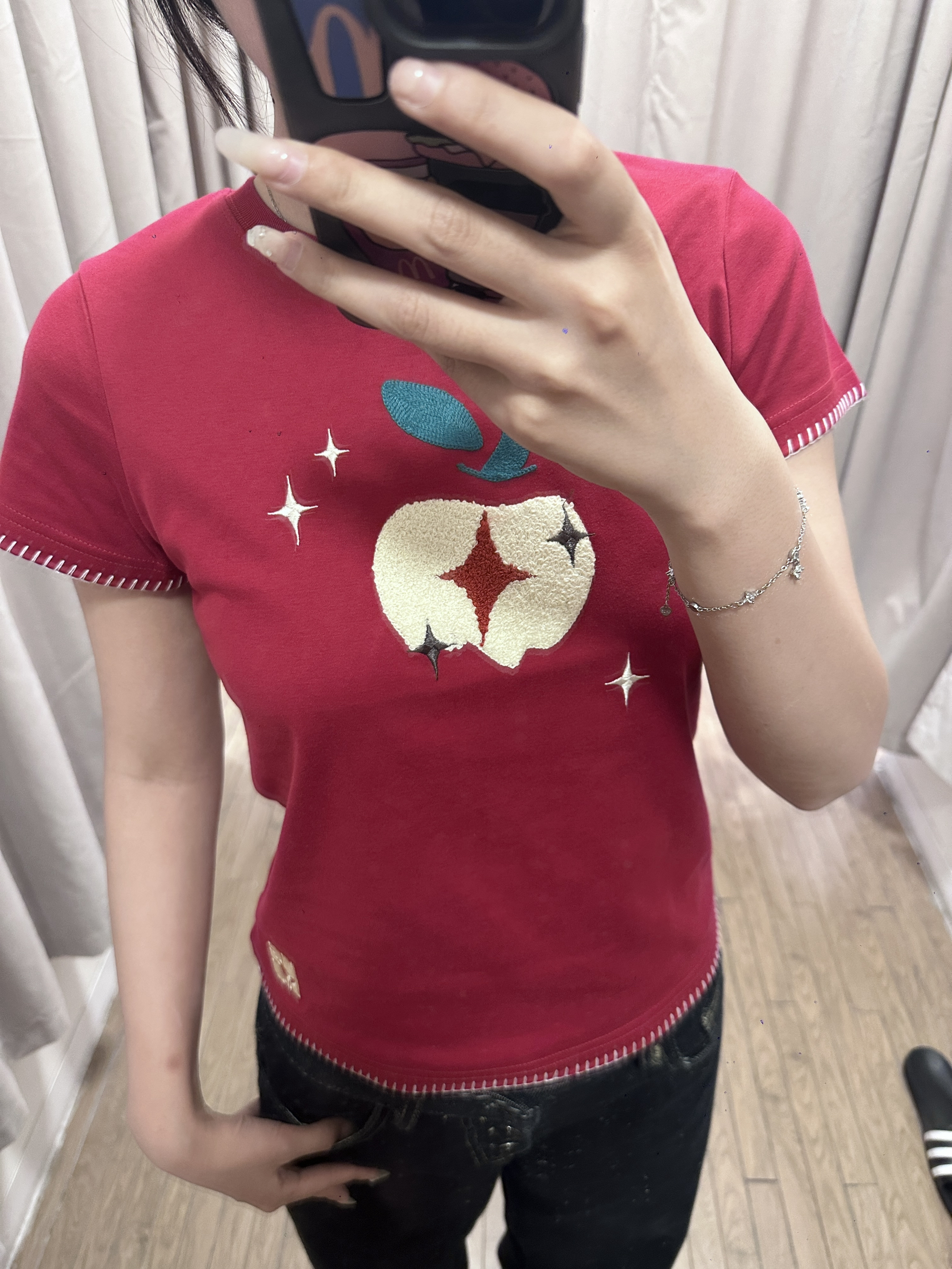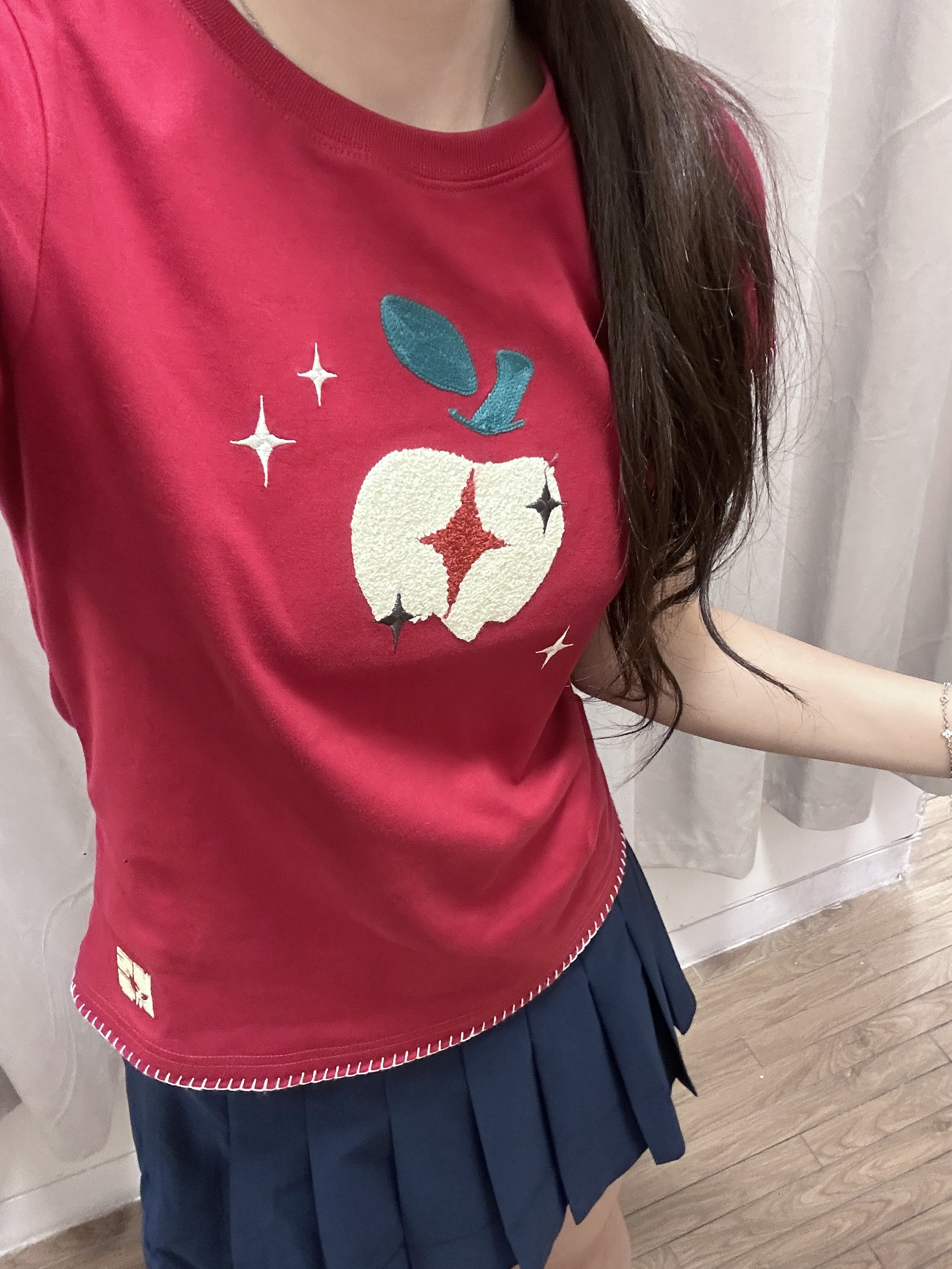 NST的这件苹果短袖尊好好看 版型很不错 显白显瘦 搭配裙子裤子都🉑 170 110穿的m码~