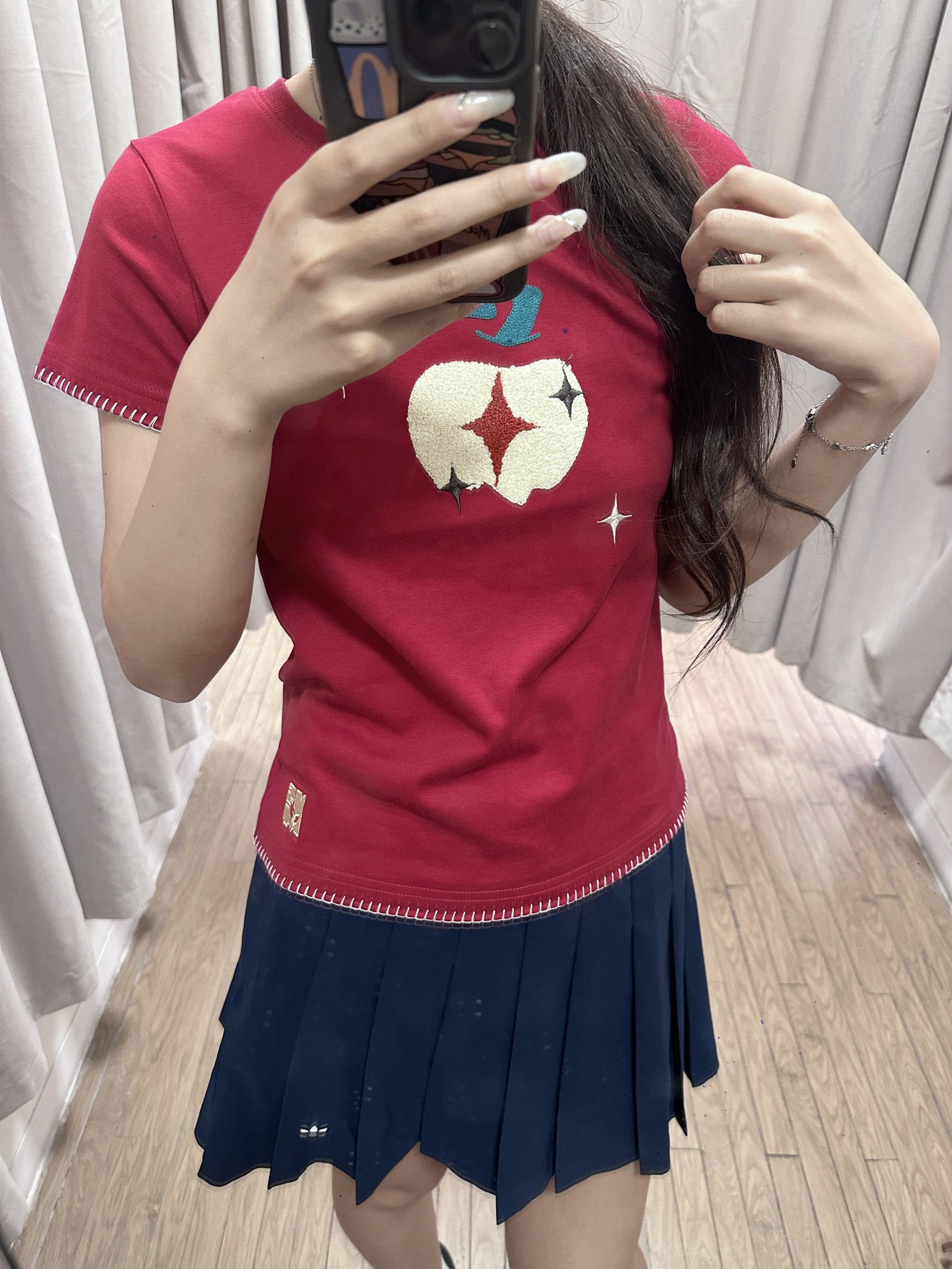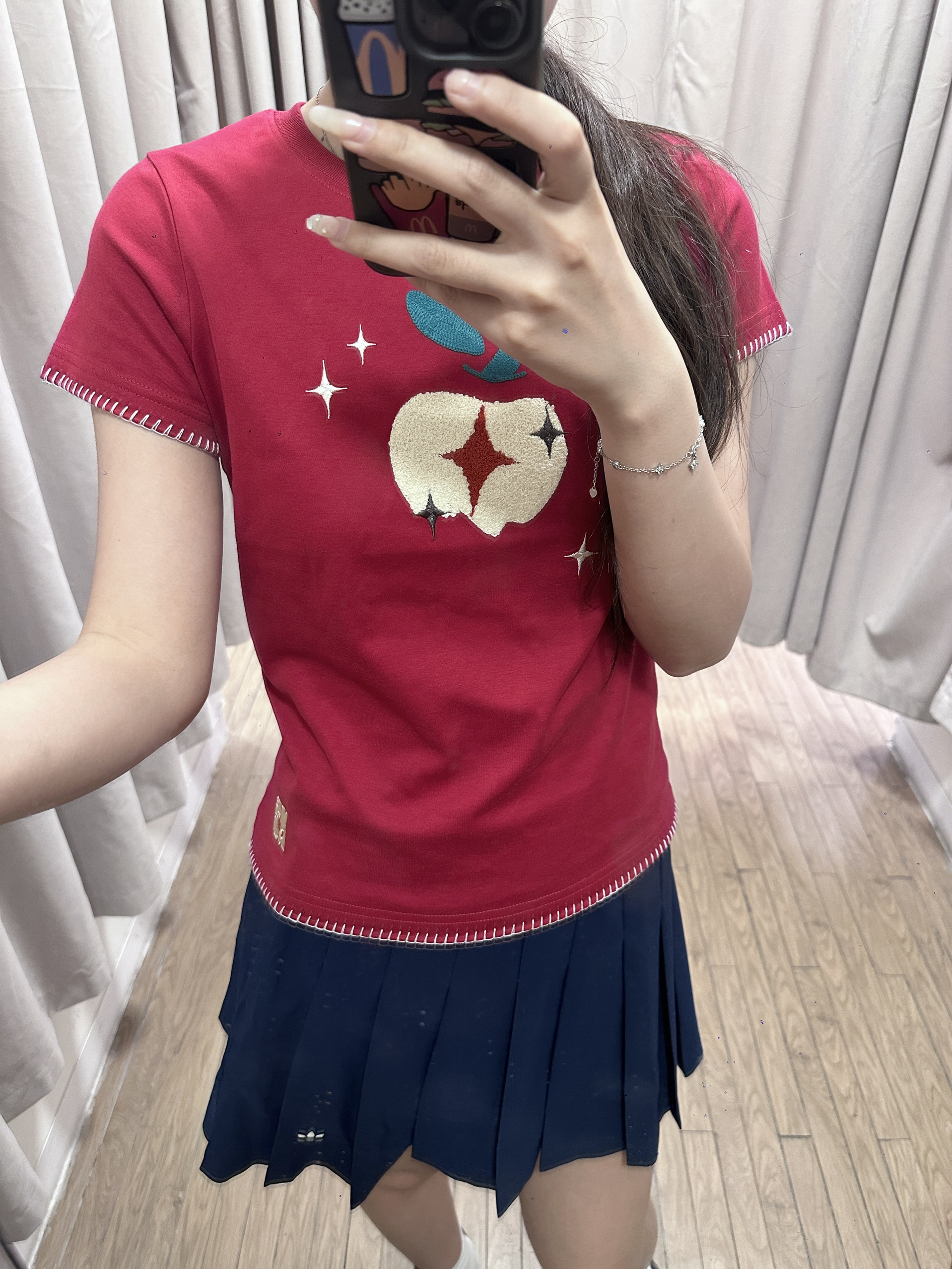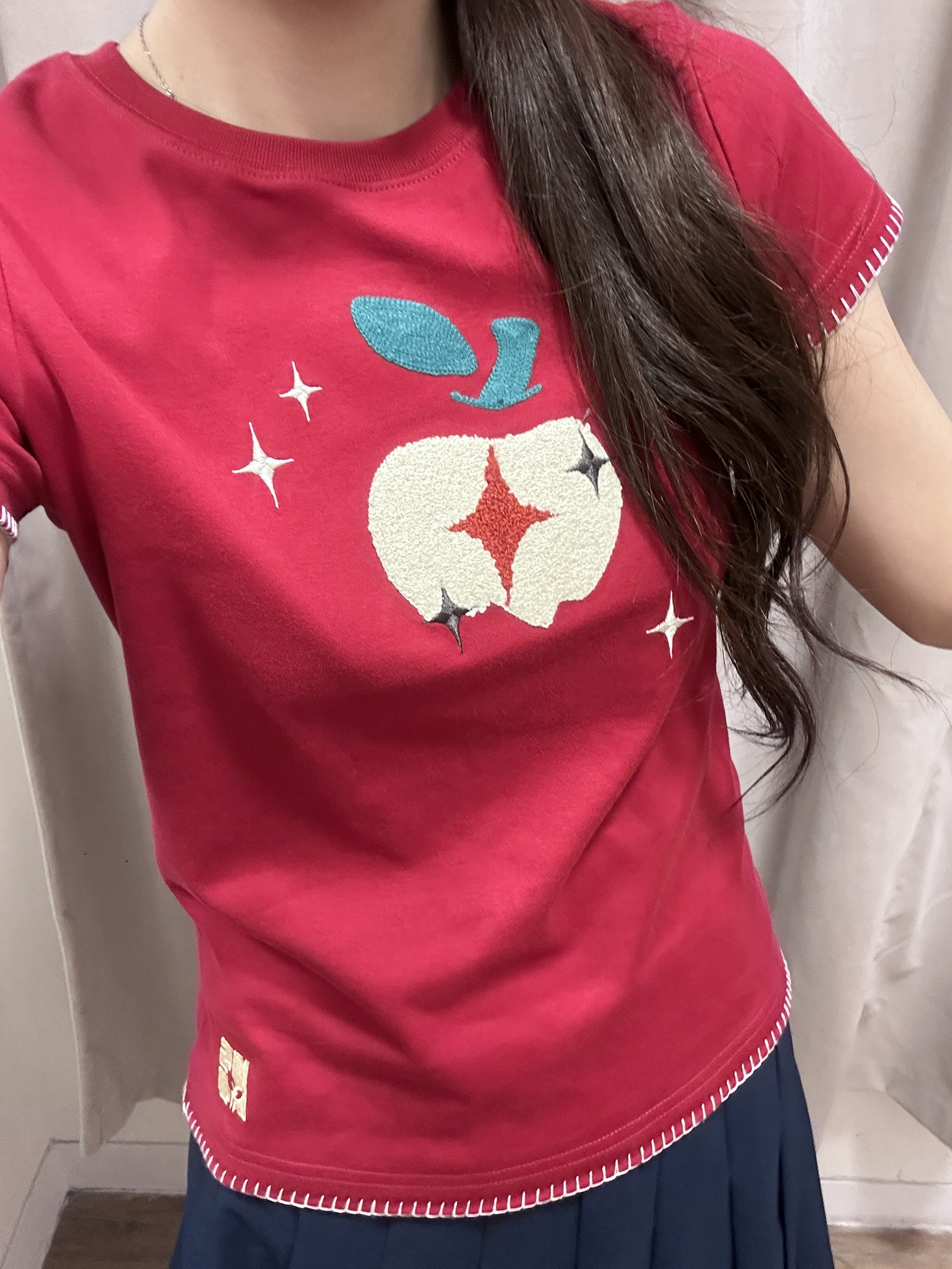NST的这件苹果短袖尊好好看 版型很不错 显白显瘦 搭配裙子裤子都🉑 170 110穿的m码~