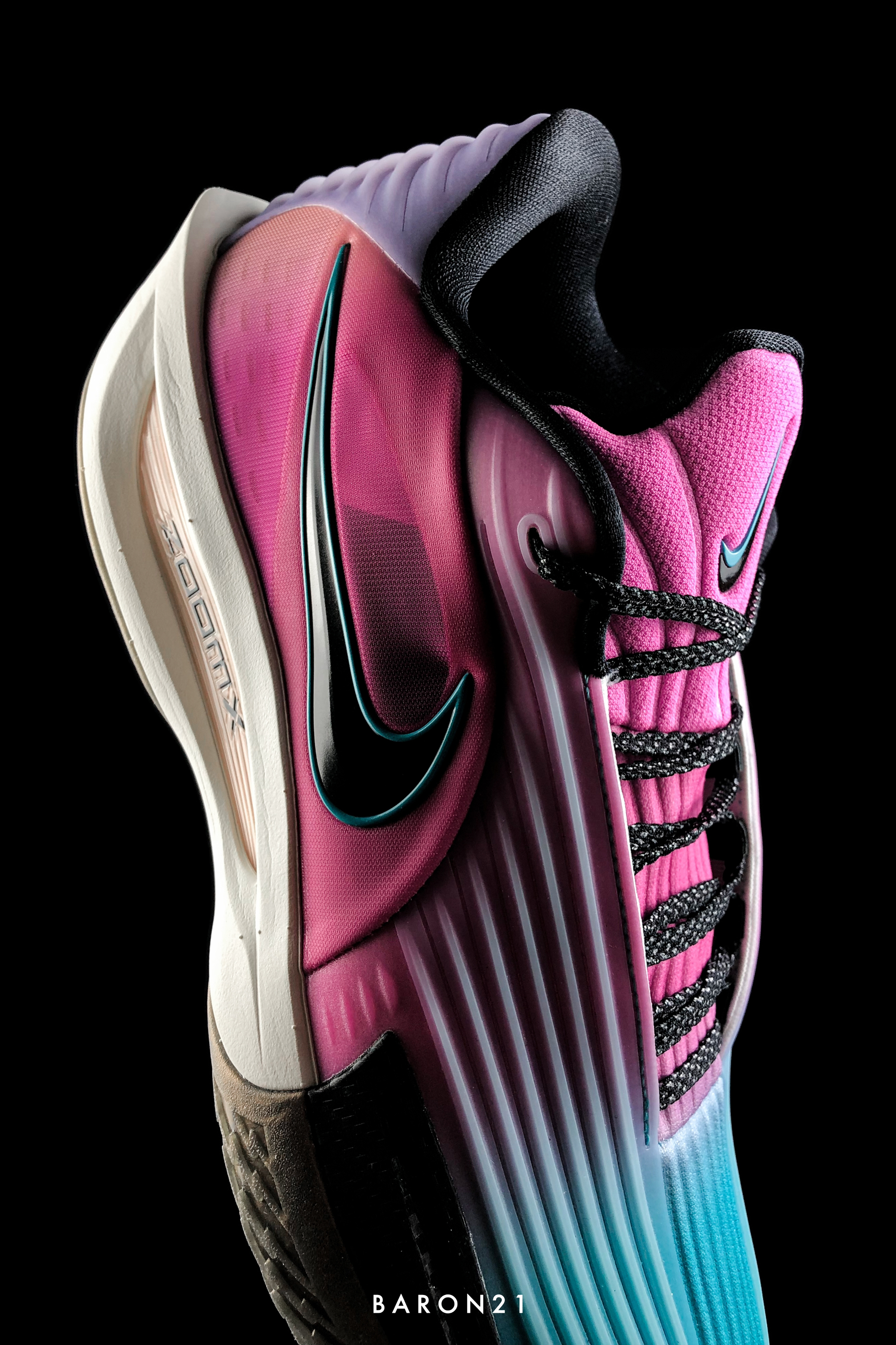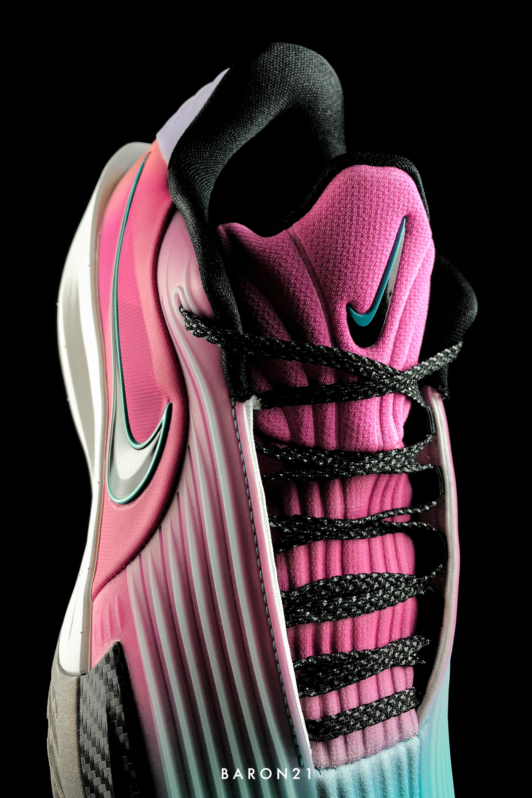 GT CUT 3 TURBO又有新配色了,这次的颜色很鲜艳!鞋面颜色由湖绿色渐变到粉色,猛一看有点“南海岸配色”的感觉。鞋面的线条也和整双鞋贴合,流利且顺滑的感觉。 GT CUT 3 TURBO作为Nike的高端实战鞋,是为精英选手打造的一款实战鞋,脚感很澎湃,是一上脚就能感受的那种。外观设计也延续了GT CUT 3完美的颜值,个人觉得是1代以后最好看的一代。上脚也特别帅,加上这个“骚气”的配色...