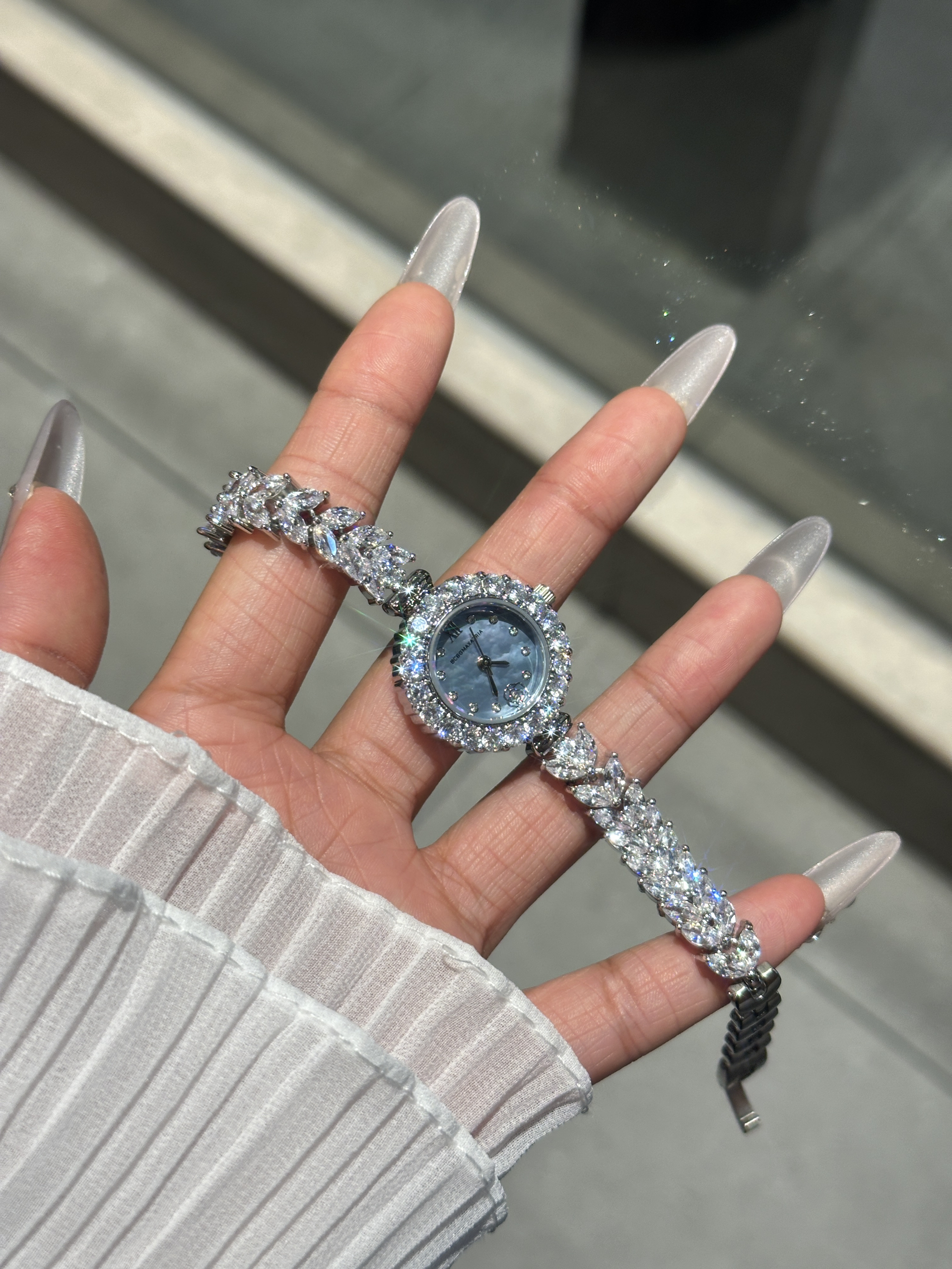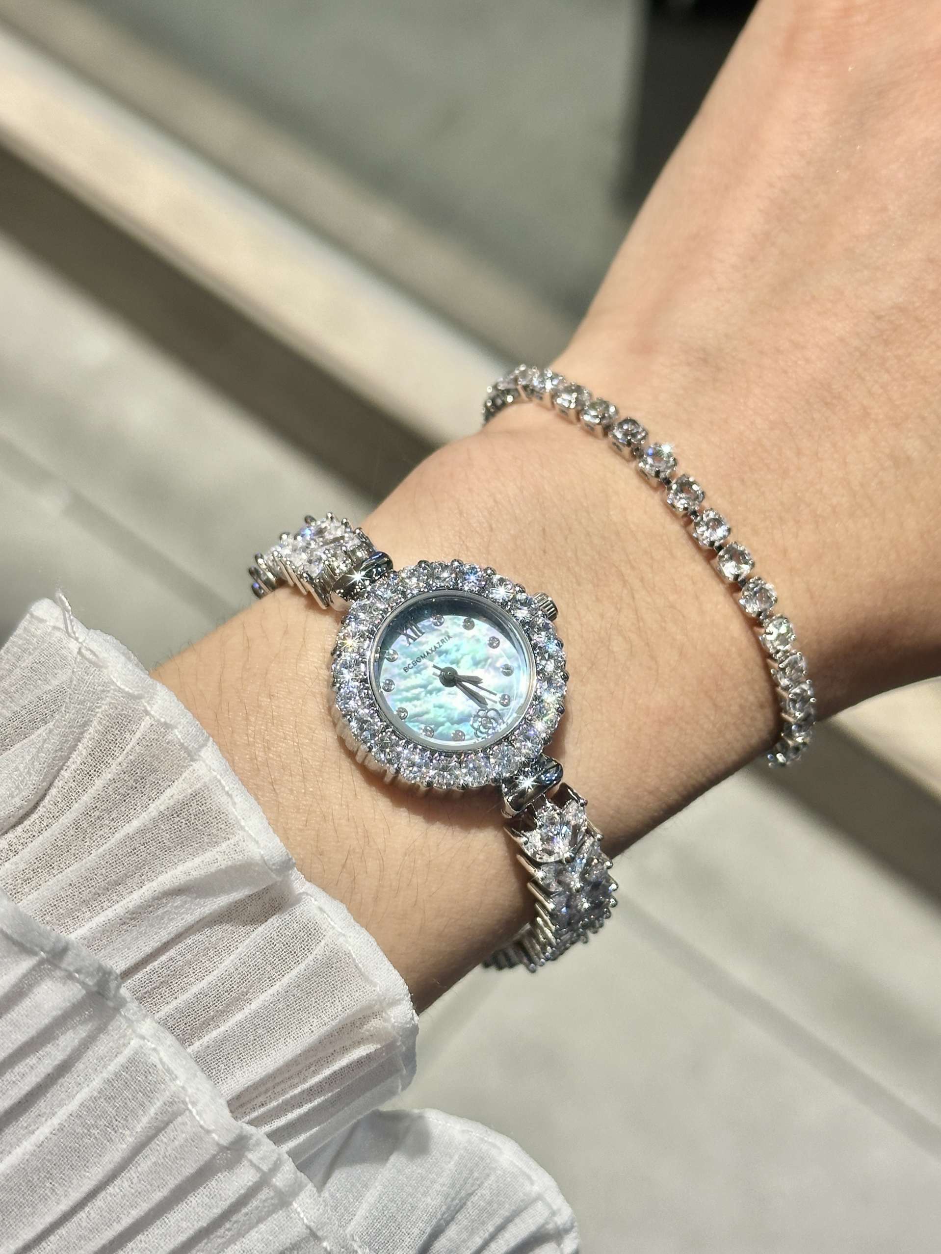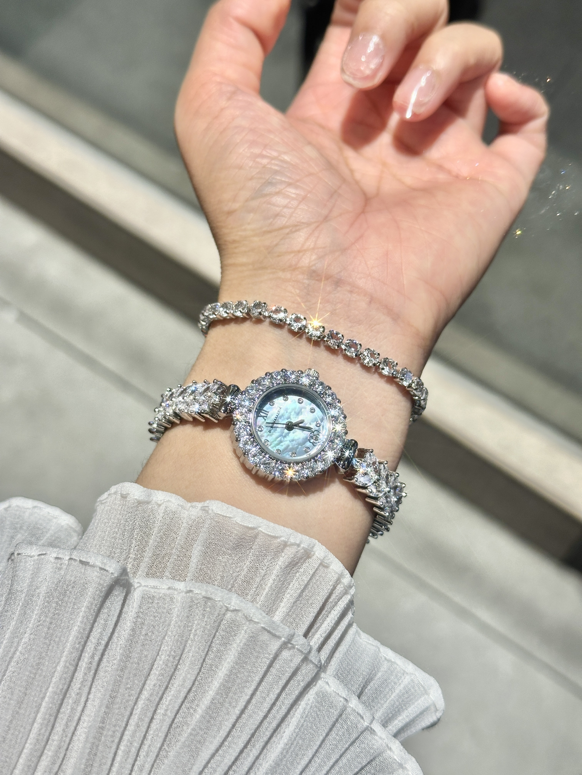 一打开礼盒发现素小圆表呀🎁 贝母表盘+镶嵌钻石的表圈, 好像人鱼鳞片般璀璨夺目! 鱼尾链表带宛如美人鱼尾缠绕腕间, 搭配上手链✨小手hin灵动又优雅~ 感觉520根本拒绝不了漂亮手表