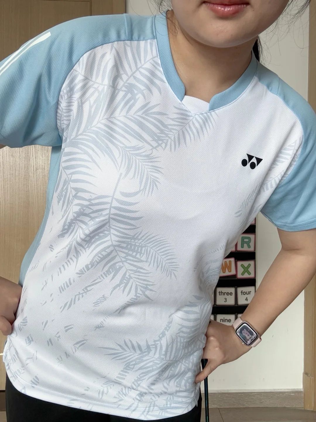 蓝白配色特别清爽,图案设计也很精致,细节处尽显用心。面料绝了,速干又透气,打羽毛球时疯狂出汗也不会粘在身上 不得不说尤尼克斯在运动装备上真的专业,推荐给姐妹们! 图源网络侵删