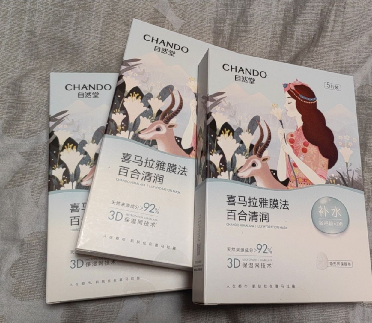 本篇笔记关联了CHANDO/自然堂 喜马拉雅植物面膜 保湿补水适敏舒缓平衡水油亮润 雪域百合补水、CHANDO/自然堂 喜马拉雅植物面膜 保湿补水适敏舒缓平衡水油亮润 雪域紫草细致毛孔等商品,为用户提供真实的使用体验和购买参考。
