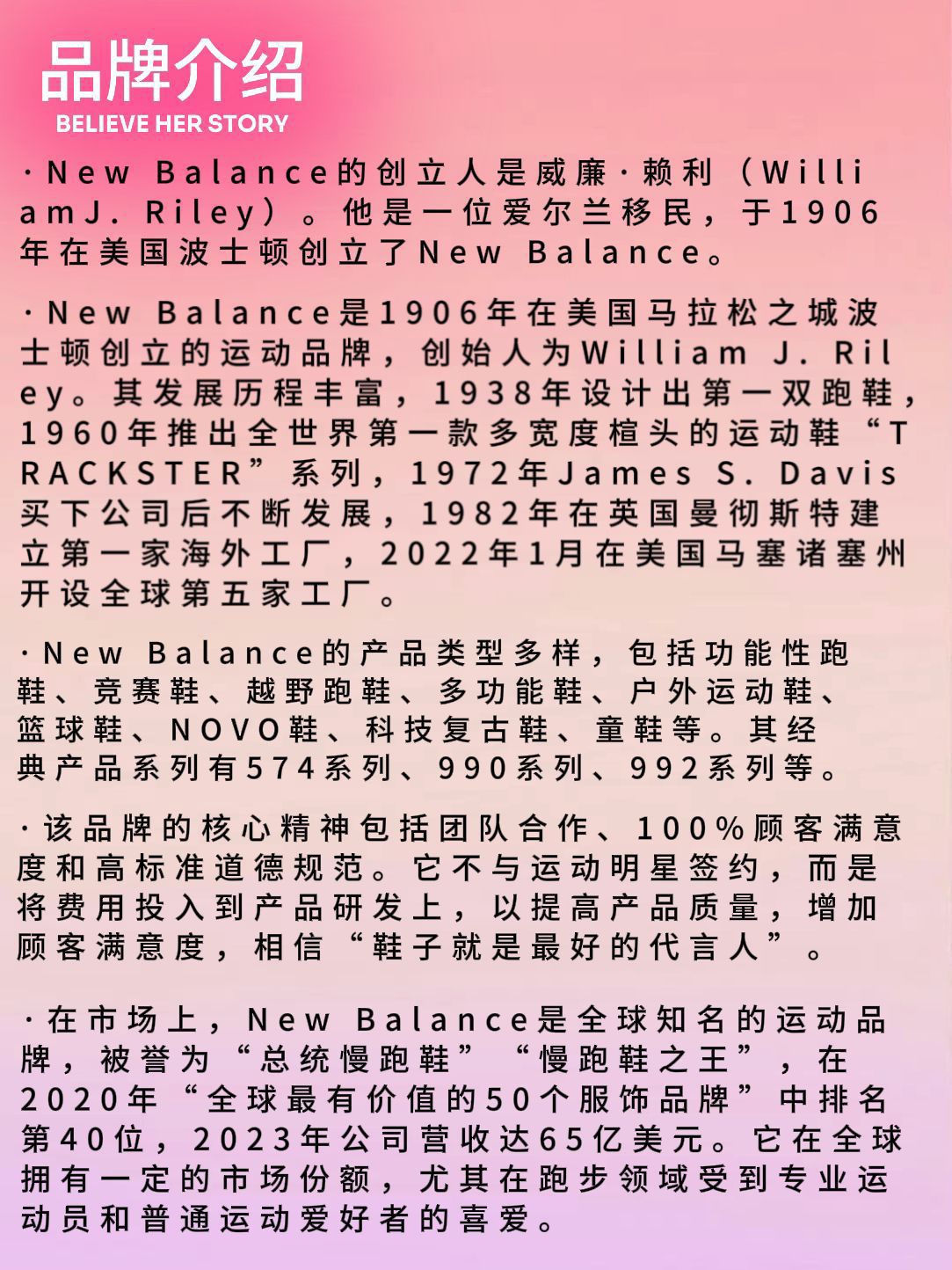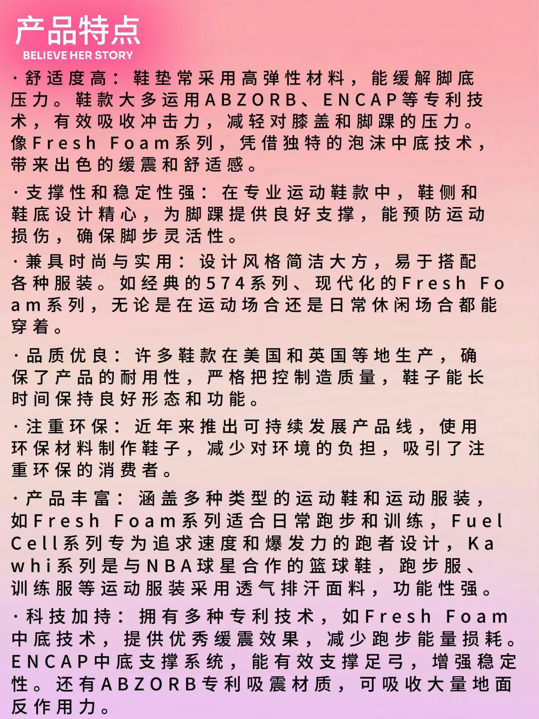 发展历程 - 1906年,William J. Riley成立脚弓支撑器公司。1938年,设计出第一双跑鞋。1960年,推出首款多宽度楦头运动鞋。1972年,James S. Davis买下公司。1982年,在英国建立第一家海外工厂。2022年,在美国马塞诸塞州开设全球第五家工厂。 产品特点 - 科技加持:拥有Fresh Foam、ENCAP等多种专利技术,提供优秀缓震效果和稳定性。 - ...