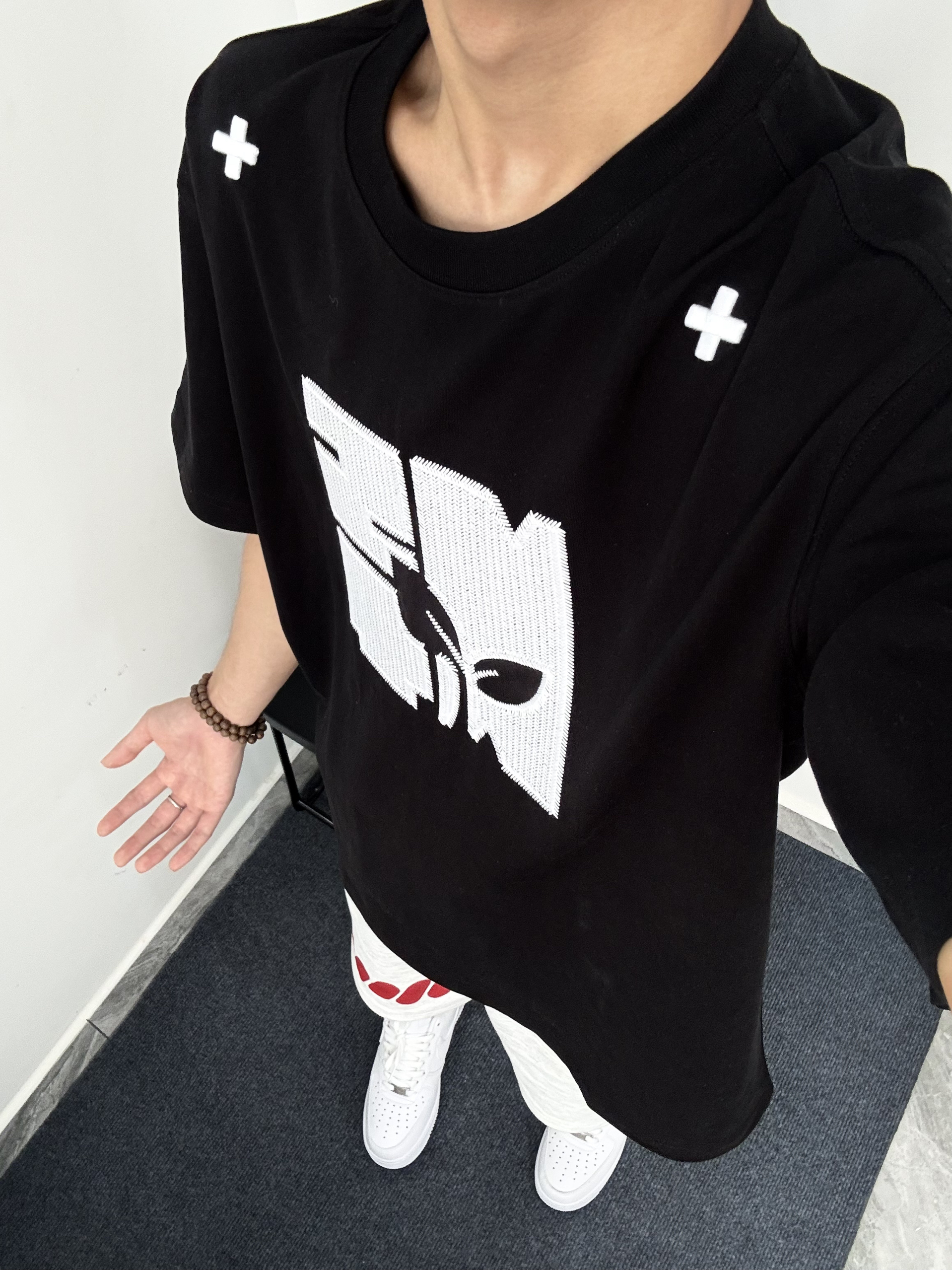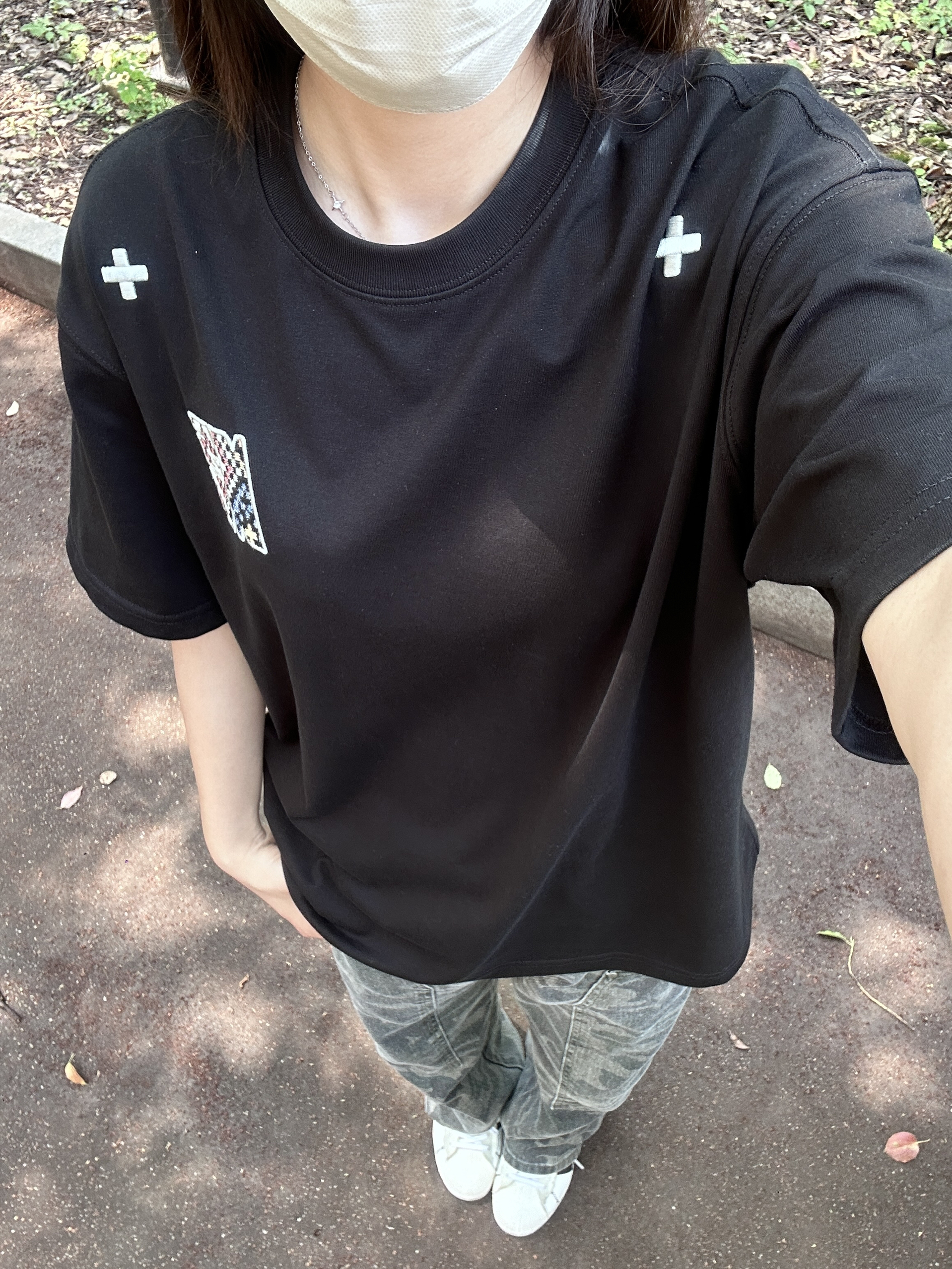 那就选这件,短袖刺绣logo和春日好般配 简约的黑色也不用担心搭配的烦恼,随便穿条裤子都很好看