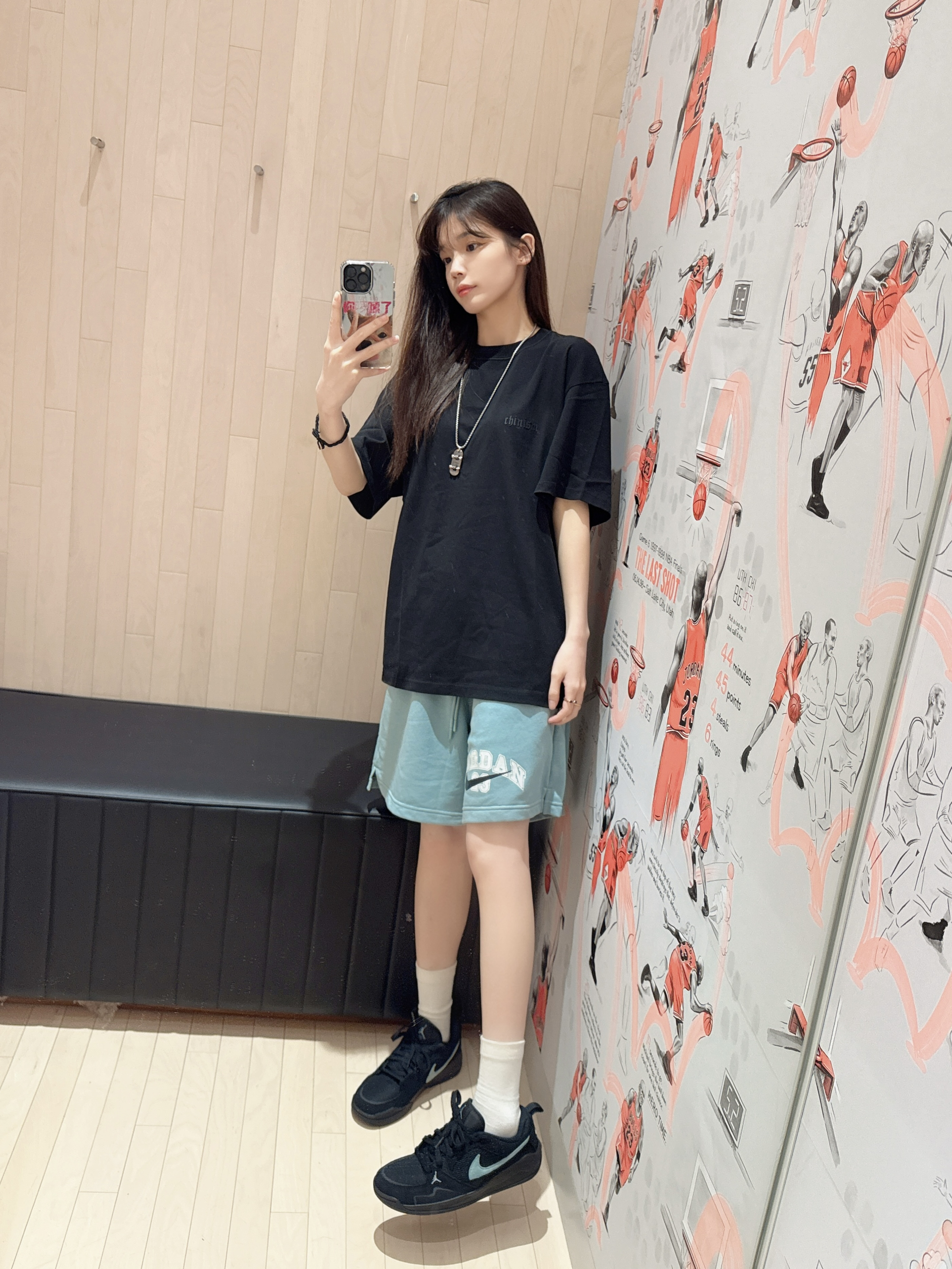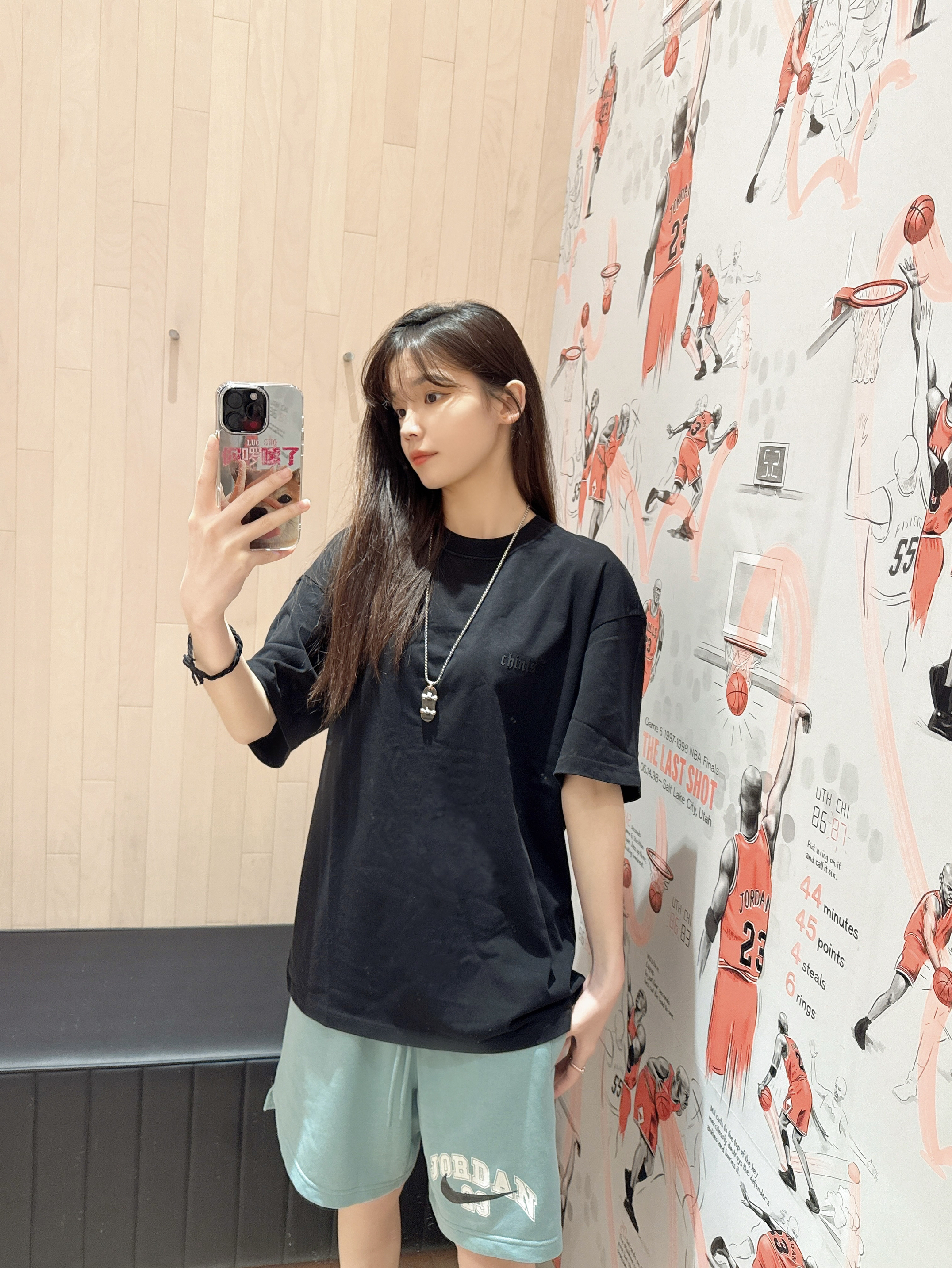 今日穿搭黑色宽松T➕绿色五分裤 👕是CHINISM🏠滴! 简单基础的款式是怎么穿都不会出错 款式无论👫男女生都可以驾驭 面料也不错 贴身穿也很舒服 宽松的版型 也不会显胖 前胸和后背都有logo印花设计 👧166/43kg M码 👟是Jordan CMFT Era 脚感超舒👍 不喜欢穿板鞋的宝们可以选择它 非常nice🤔