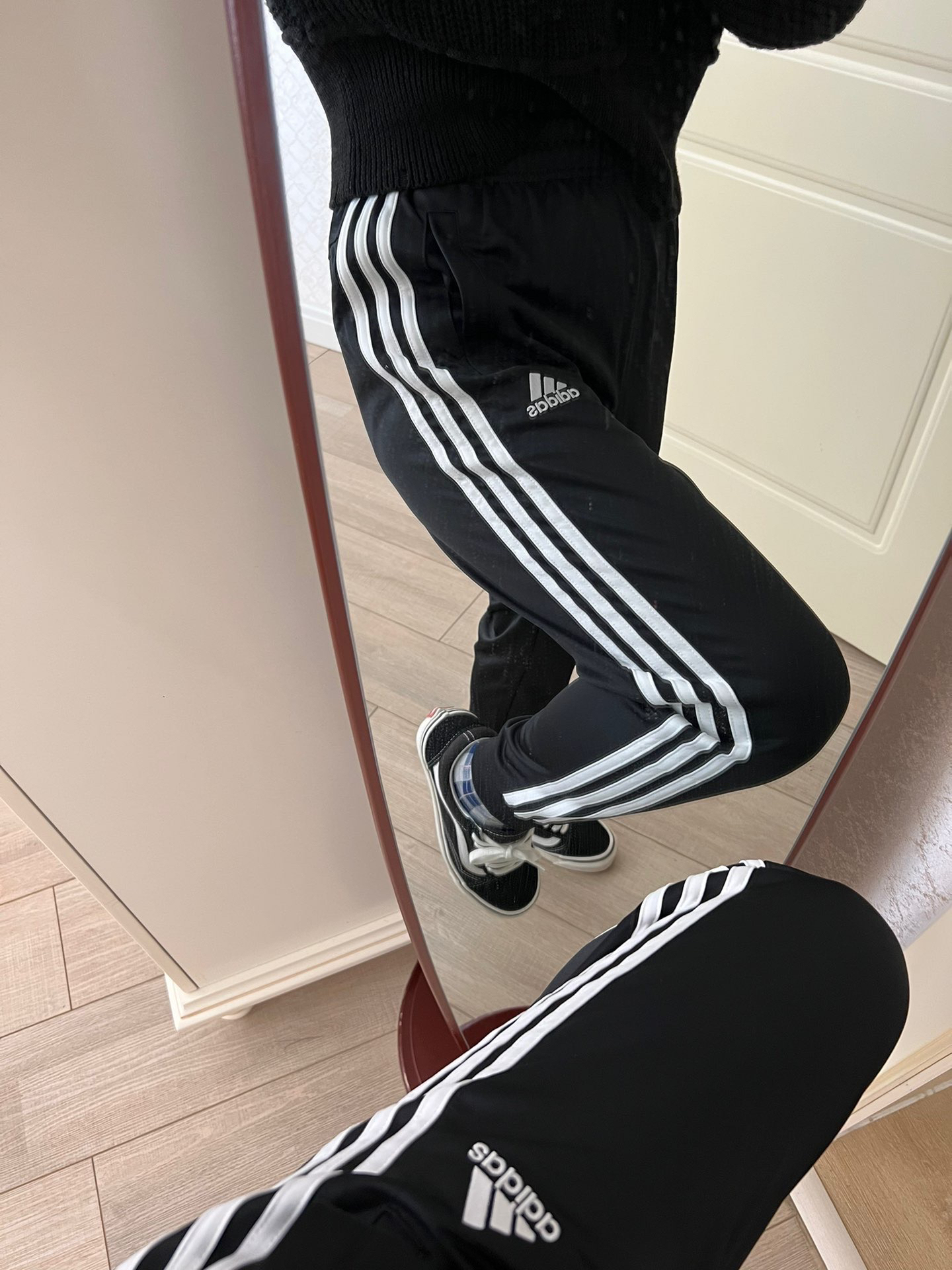 这款阿迪三条杠yyds 适合小个子的妹子 本人微胖型,小腿肌肉比较粗壮 它是真的很显瘦也显腿细啊啊啊 这个穿上去一点不臃肿 腿很直也白搭🧚🏻♀️ 不管是同款系列卫衣➕外套 还是自己随便搭配卫衣 都是必备百搭 可以套那种宽大型盖臀卫衣 配这个裤子也好看 春天适合出行的噢 🥳面料是聚酯纤维100%,不是雨伞布那种布料 这个类似光滑面料,摸起来顺滑不贴腿 没有纯棉那种容易皱 也没有伞布容易吸腿 效果挺...