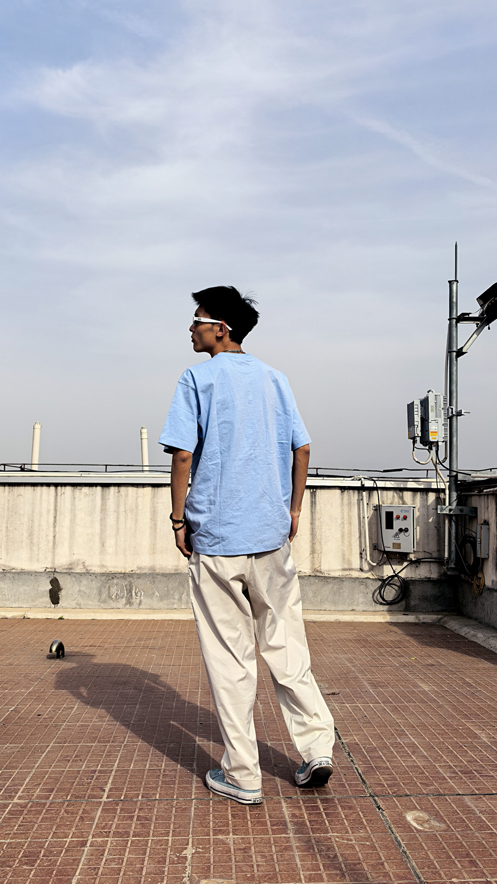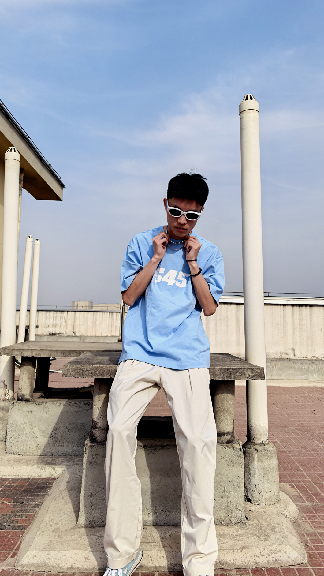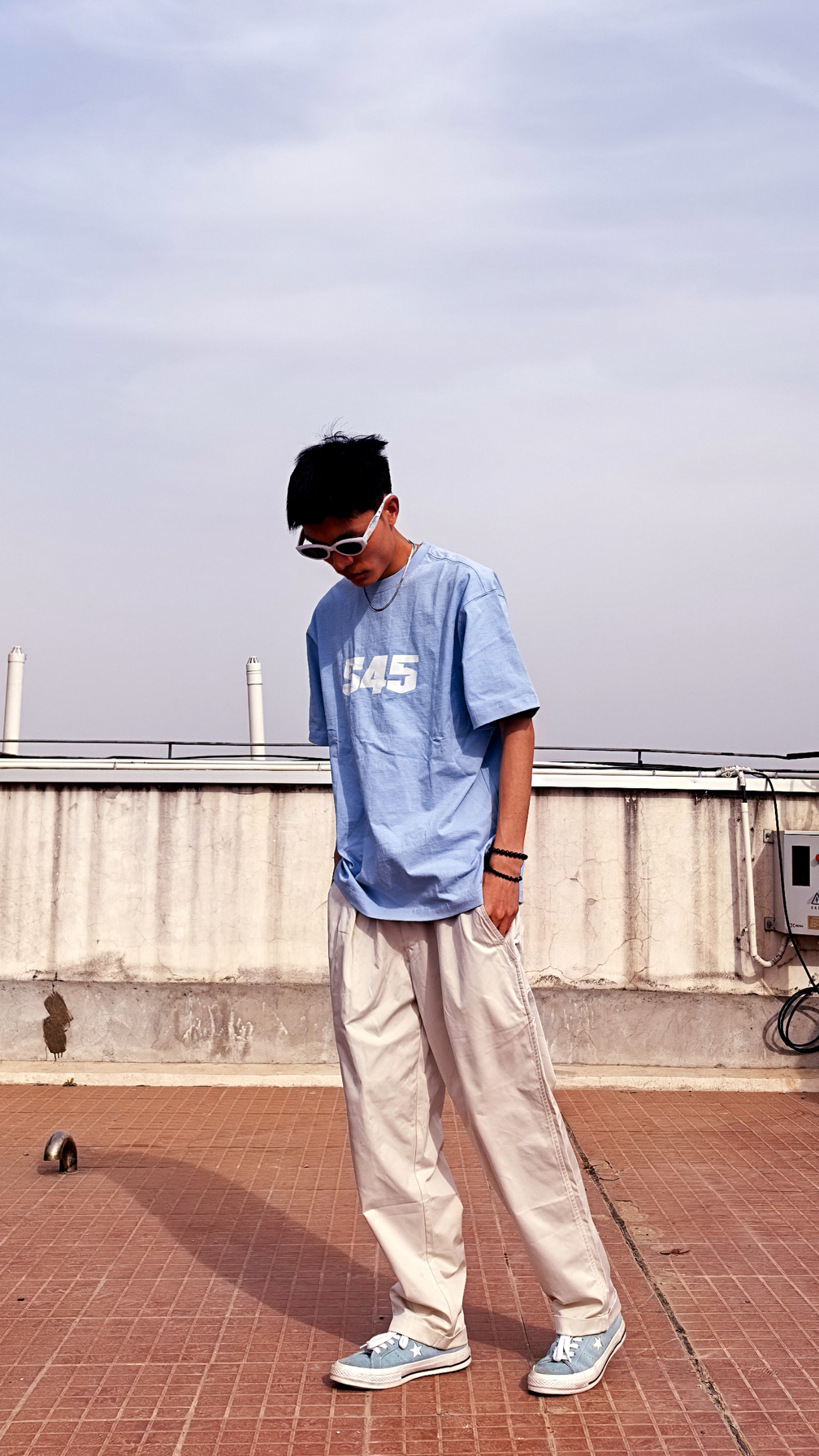 ✨爆款密码:天蓝短T+白工装裤+浅蓝帆布鞋 👉上衣:来自S45的天蓝短T配白色logo,显白又降温,做工精细,版型舒适百搭 👉下装:白色直筒工装裤,口袋设计遮肉显腿直 👉鞋子:浅蓝帆布鞋呼应上衣,视觉延长腿长3cm! 💡穿搭tips: 1️⃣ 蓝白叠穿层次感拉满 2️⃣ 直筒裤配低帮鞋显高绝杀 3️⃣ 金属银项链瞬间提升精致度 🔥这套出街回头率300%!清爽少年感直接拿捏,约会/逛街/野餐通吃!