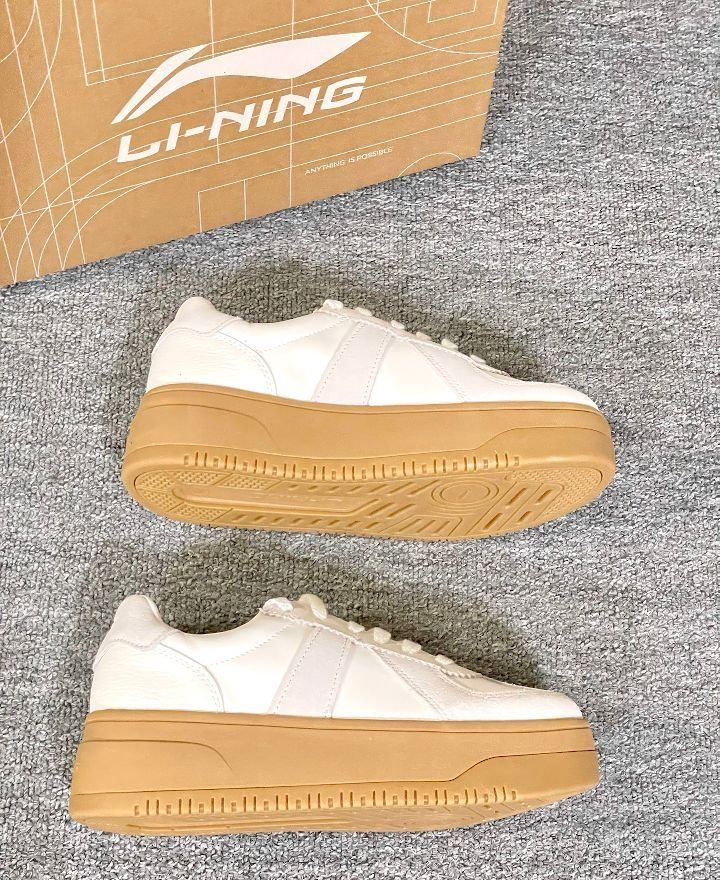 分享一下我的李宁奶酪2.0德训鞋 软fu fu的奶白色像块小奶酪 鞋底hin软糯,踩上去还蛮舒服的~ 平时配小裙子还是休闲裤都挺合适的 而且鞋底有4cm悄悄增高 小个子女生穿吼显腿长嘻嘻!