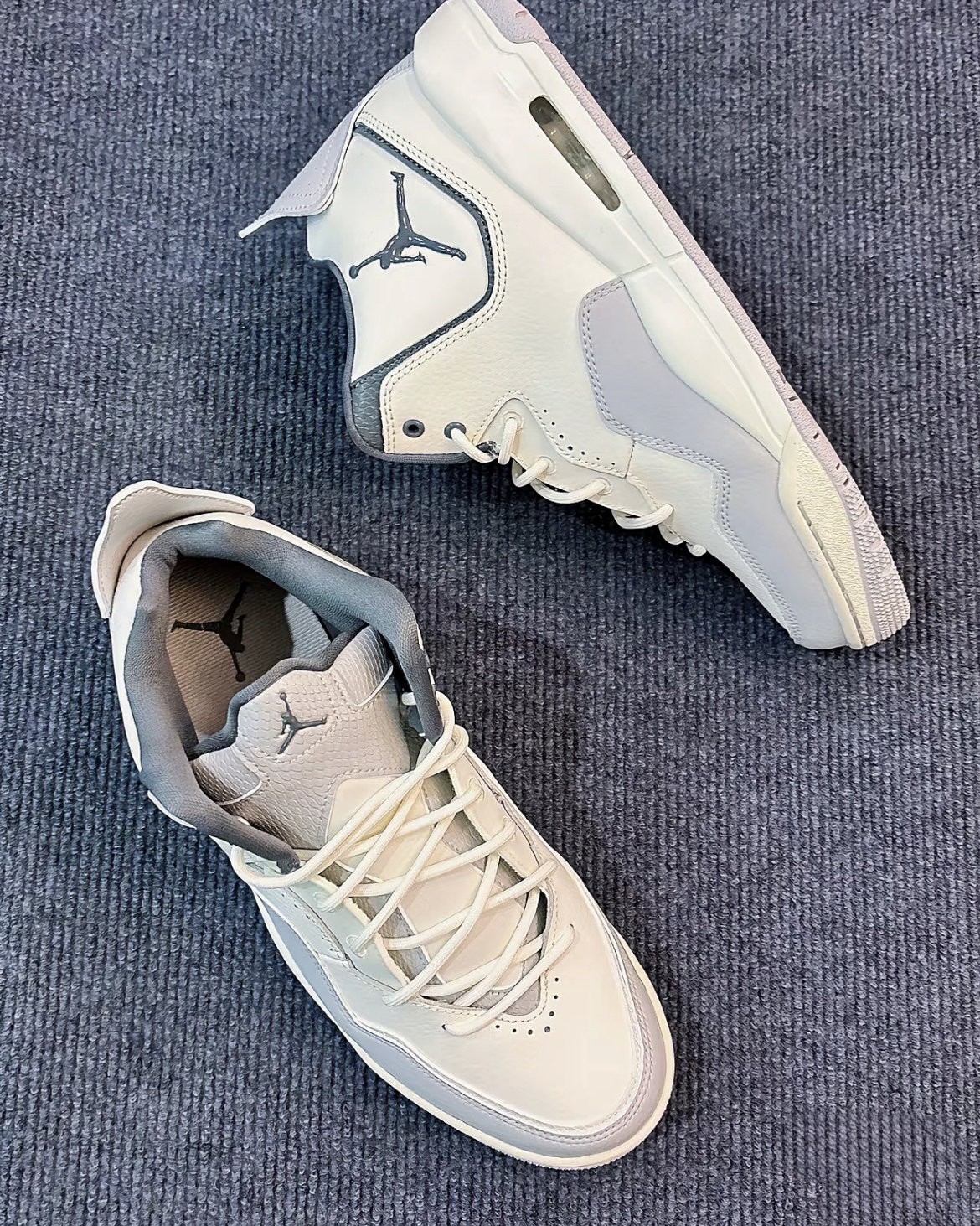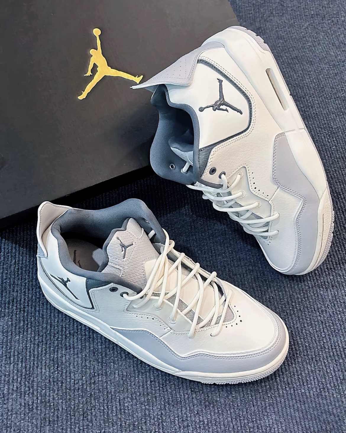 从外观上看,Jordan Courtside 23极具潮流复古风格。经典的鞋型设计,巧妙融合了现代审美与怀旧元素。灰色与米白色的搭配简约而不失格调,无论是搭配运动风的束脚裤,还是休闲感十足的牛仔裤,都能轻松提升整体造型的时尚度。鞋身侧面标志性的飞人标志,彰显着品牌的身份与底蕴,成为街头巷尾引人注目的焦点。