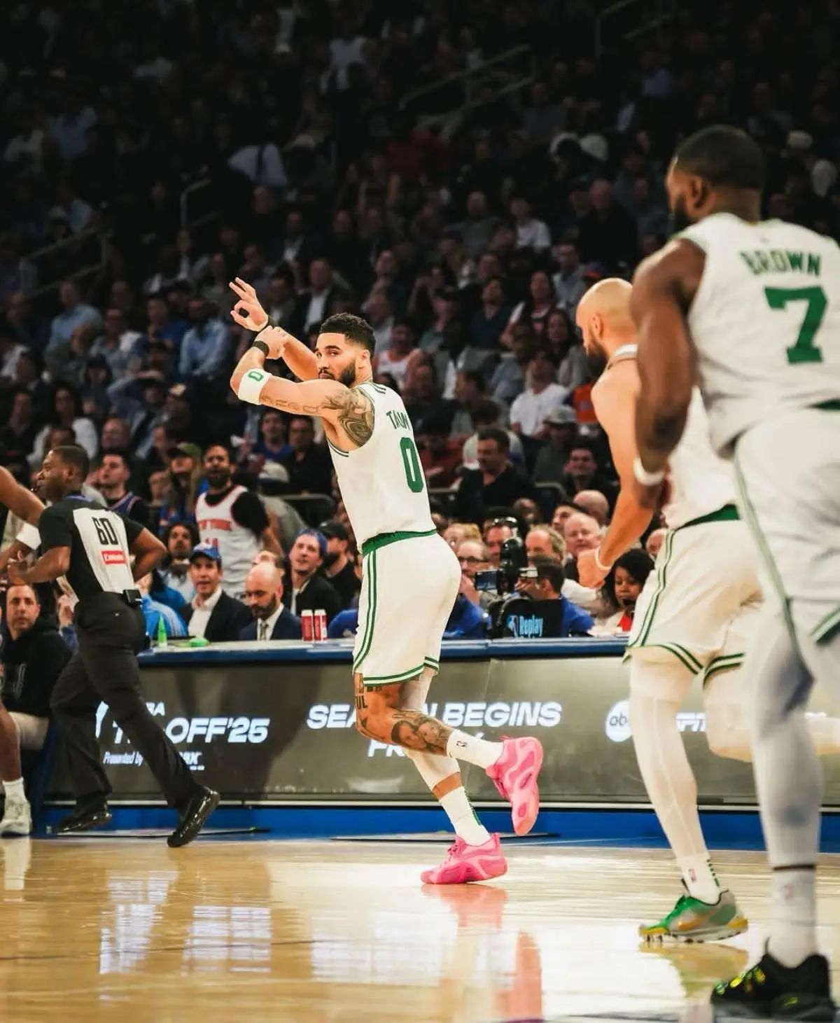 ⚡「当硬核球场遇见粉色暴击,这双鞋直接甜度超标!」 —— Jordan Tatum 3 PE "Sidewalk Chalk" 梦幻登场,塔图姆父子情注入球鞋DNA! ✅ 猛男の粉色暴击 通体粉笔白渐变脏粉,鞋面如儿童画板般洒满彩色斑点,后跟立体粉笔涂鸦细节直接萌化!谁说硬汉不能有少女心?穿上它,球场秒变「童话镇」。 ✅ 父子情の隐藏彩蛋 鞋舌内侧刺绣Deuce名字+塔图姆背号「0...