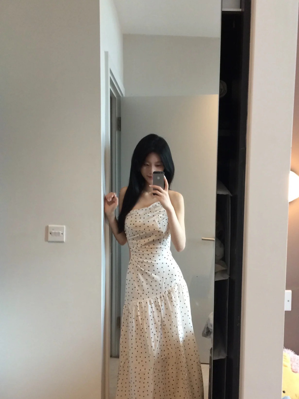 救命!这条波点吊带裙也太懂温柔了吧~ 奶白底色+经典波点,复古又清新,吊带设计小露肩颈线,纯欲感拉满✨ 多层裙摆超有层次感,走路摇曳生姿~ 单穿配小开衫,或者外搭牛仔外套,春日约会、逛街都美到犯规,穿上直接拿捏氛围感,闭眼冲不后悔!