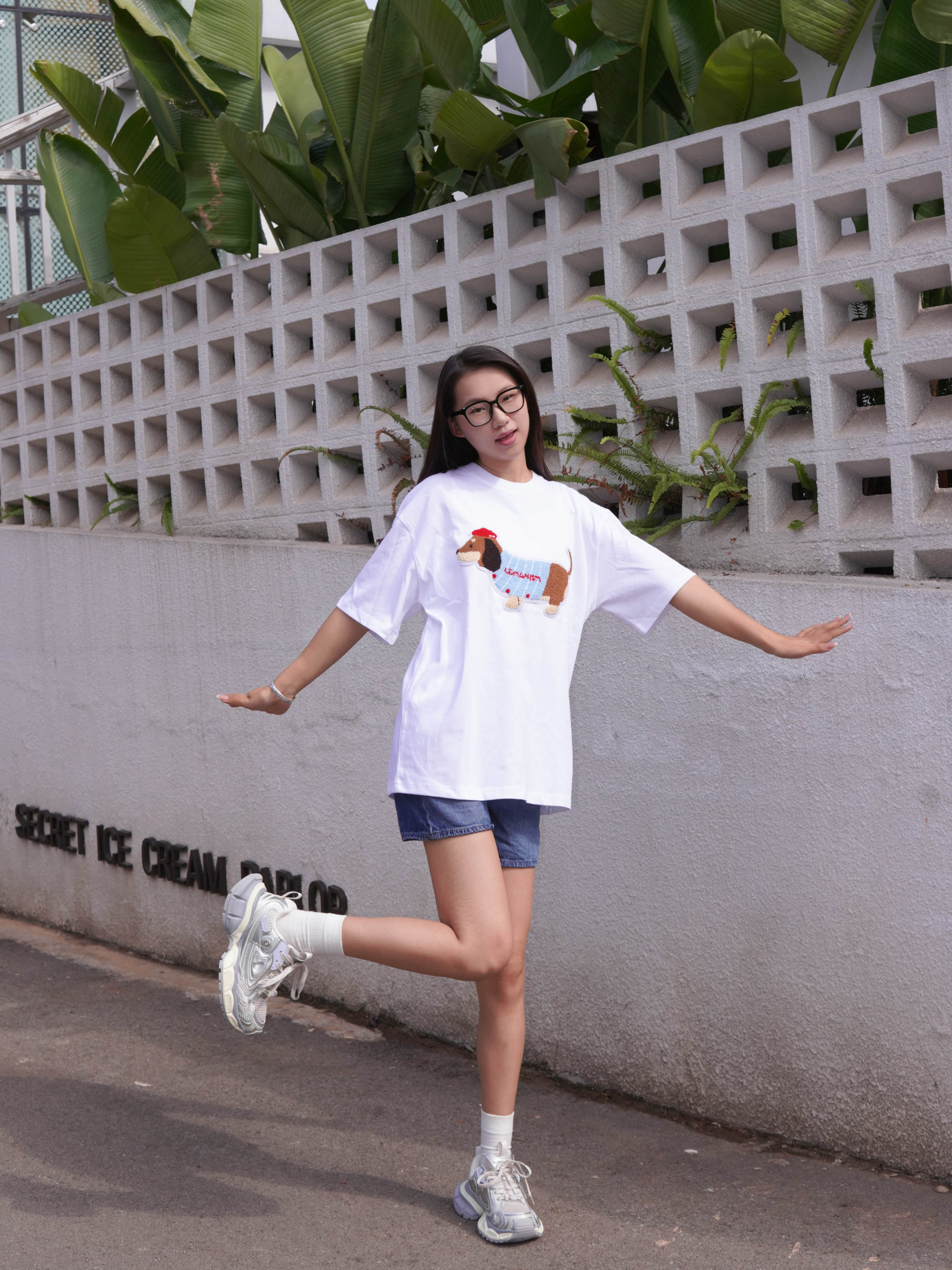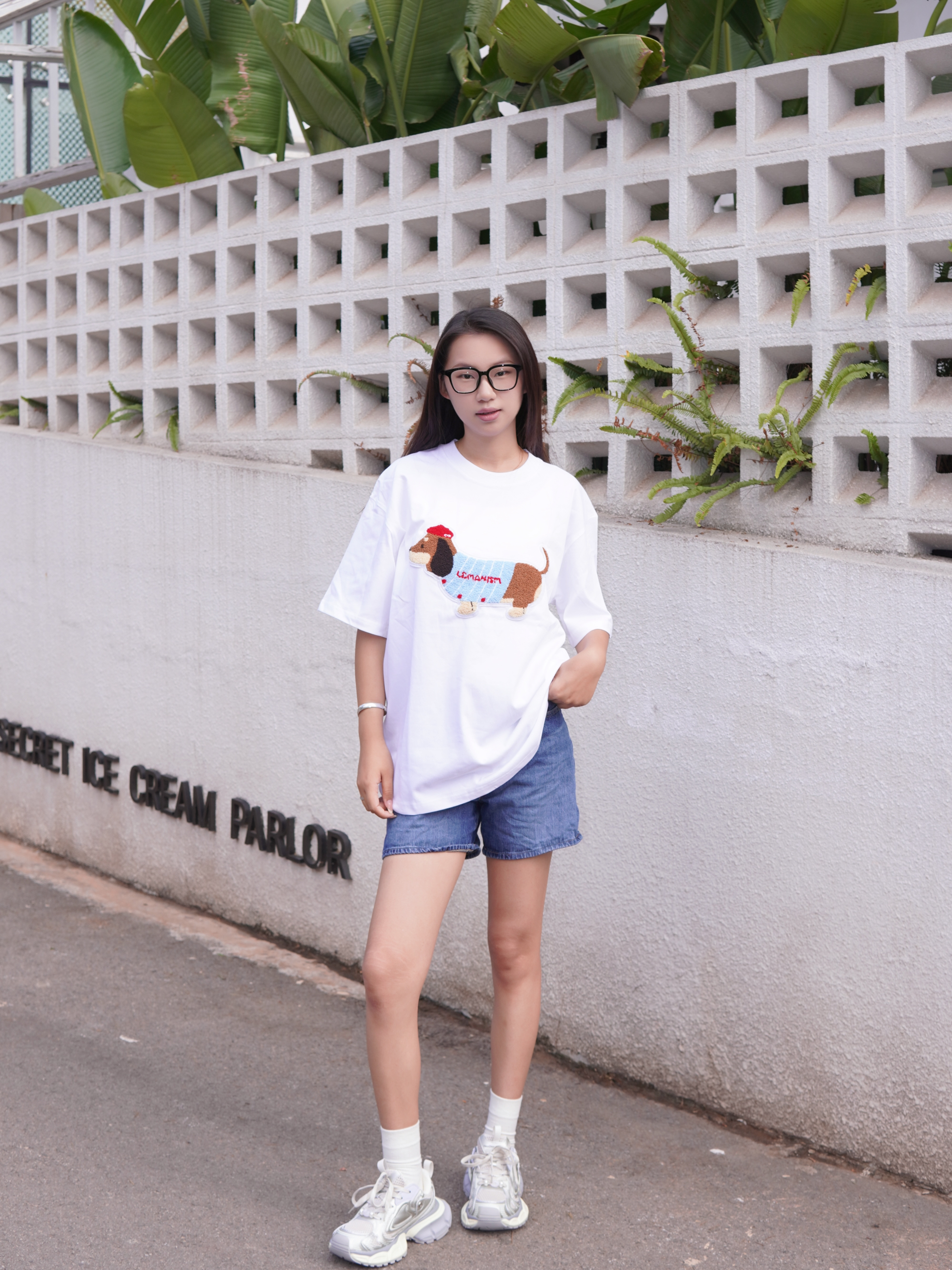 身高|体重:173/55 🧍♂️ 穿搭风格:日常休闲风 👔 上衣:lem腊肠狗布贴T恤 👖 下装:优衣库复古蓝牛仔裤 👟 鞋子:heedimensional增高老爹鞋