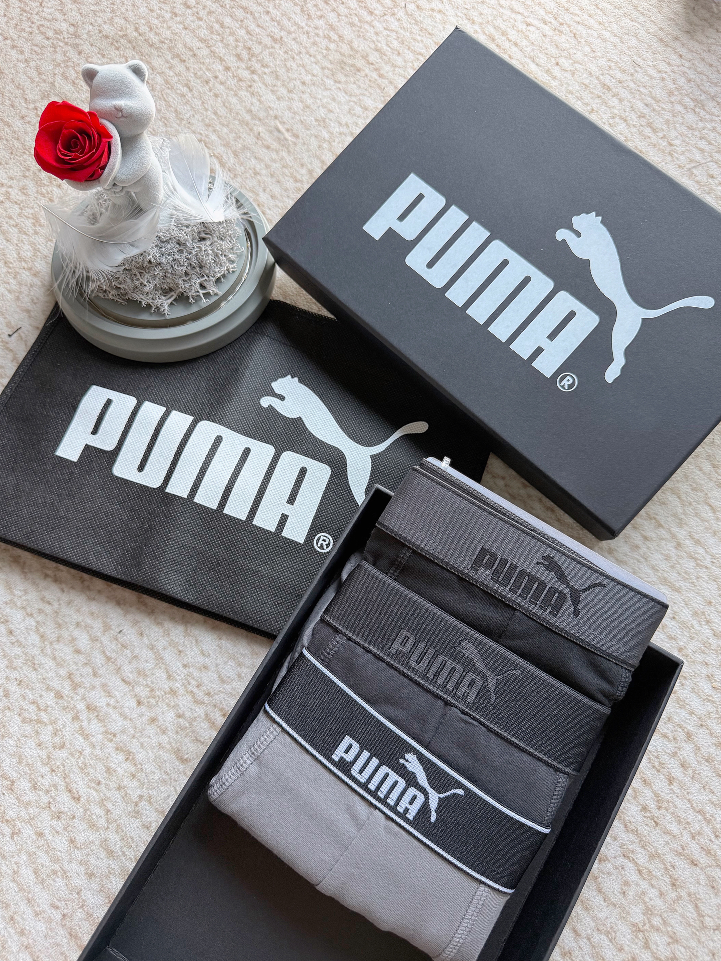 该说不说 还得是我发小懂我的小ph Puma 这套内裤礼盒拿到时开心的起飞 里面是三条平角裤迫不及待上身试了下 纯棉的质感就比较柔软上身也很亲肤舒适 简约纯色的设计又显得干净清爽 弹性也OK 没有束缚感 就很nice😀 礼🎁黑色简约搭配手提袋就还蛮高级的 520送男朋友送好哥们选这个泰酷辣
