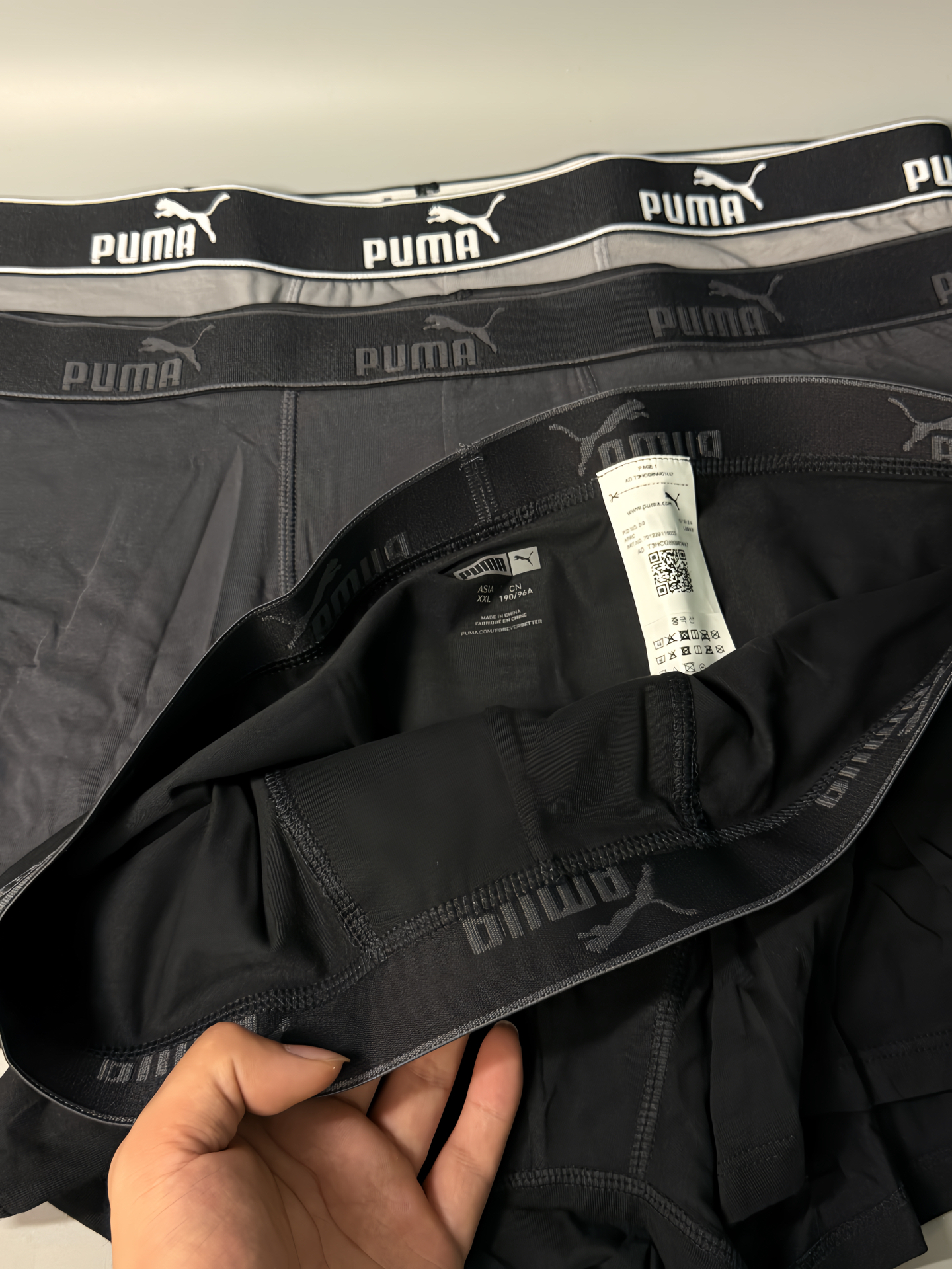 本篇笔记关联了Puma/彪马 结婚字母Logo透气棉质抑菌内档中腰男士平角内裤 M591520002 黑+深灰+浅灰/3条装等商品,为用户提供真实的使用体验和购买参考。