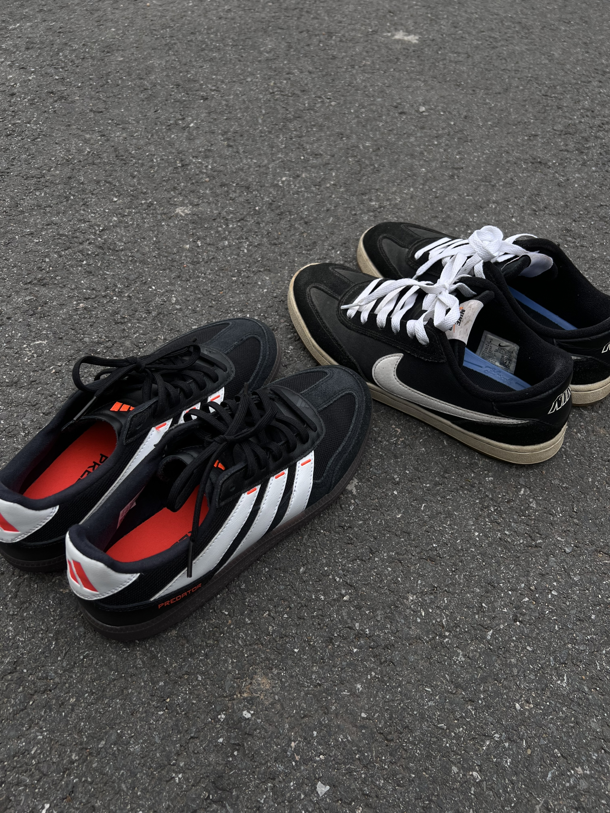 👟球鞋名称:Adidas猎鹰跟Nike SB 的FC 🔍分享理由:两款上脚我个人觉得nike更舒适,鞋底也是nike的的更好更防滑,Adidas的遇水可以溜冰! 🤔整体感受:两款搭配衣服都很百搭,颜值嘛Adidas配色更吸睛点,但整体性价比我个人觉得还是Nike的更不错,你们觉得呢?