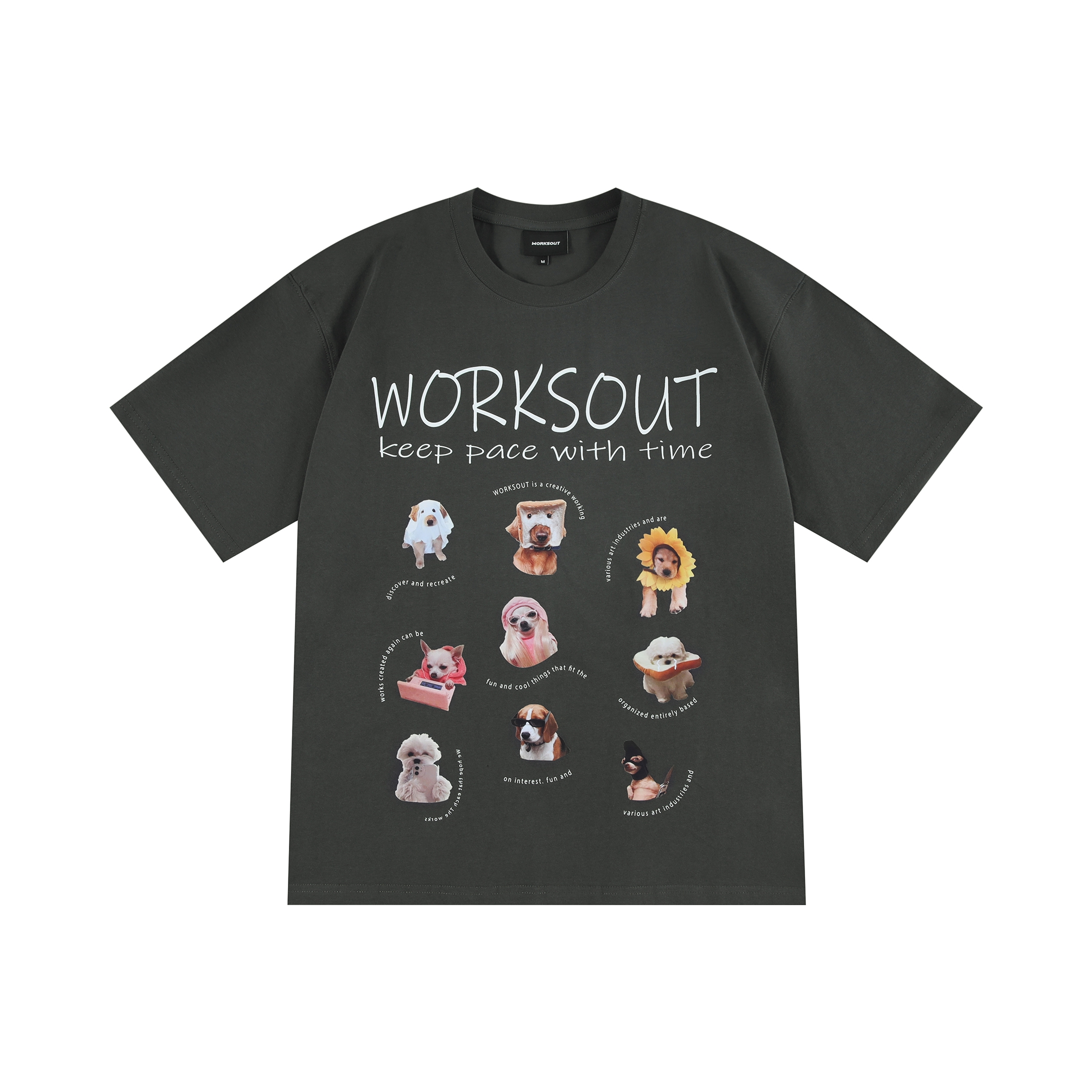 本篇笔记关联了WORKSOUT 趣味街头复古小狗字母印花短袖T恤 男女同款 WDX236 深灰等商品,为用户提供真实的使用体验和购买参考。