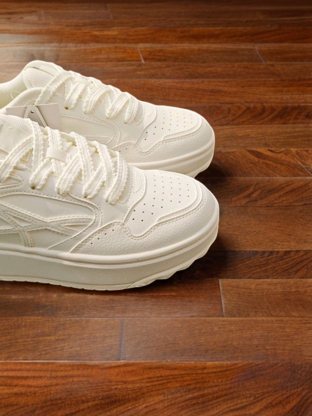 这双象牙白晴风1原本是健身房备用鞋,意外解锁了通勤场景的隐藏技能。鞋面灰调白比冷白更耐脏,橡胶底带点暖米色,阴天光线下有微弱的珠光感,搭配九分西裤能露出最纤细的脚踝轮廓。 前掌发泡棉厚度刚好,过地铁闸机小跑时脚趾不会顶到鞋头,后跟内置TPU比普通网面鞋挺括,连续三天穿它日均步数破万,鞋舌内侧的海绵垫没出现侧滑移位。周末穿去花卉市场,帆布材质沾了泥浆用湿巾一擦就干净,鞋底横向纹路抓地力比预想稳,大...