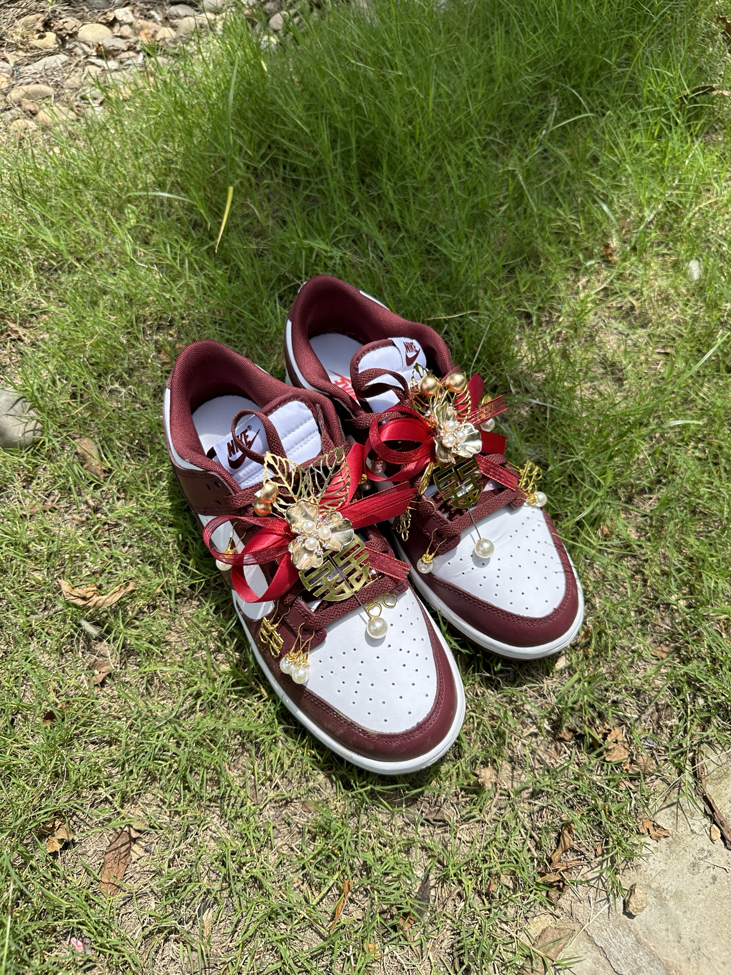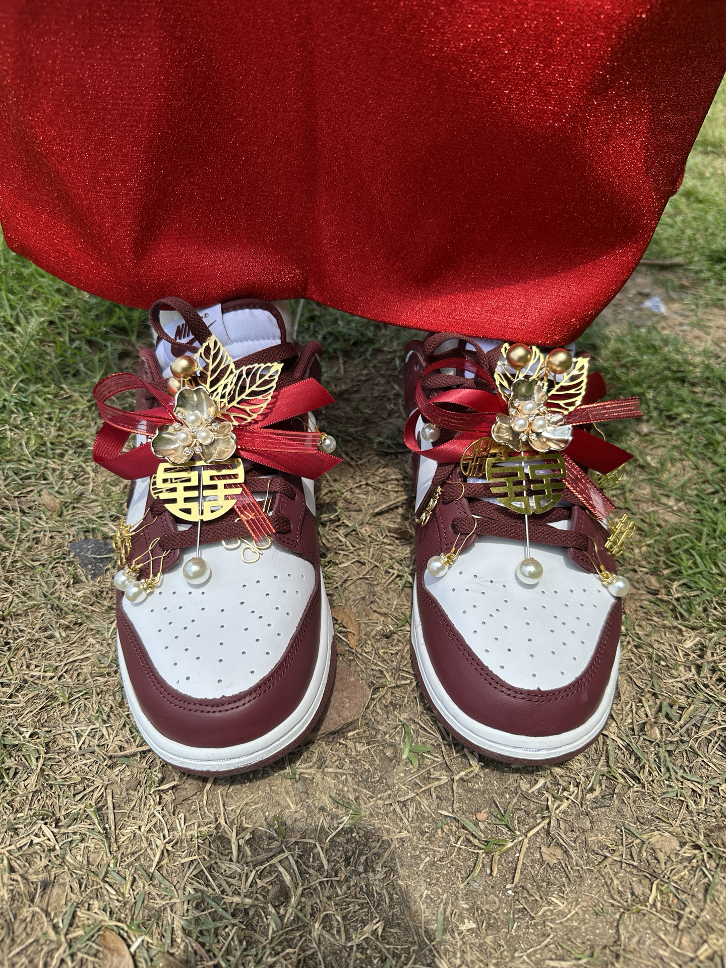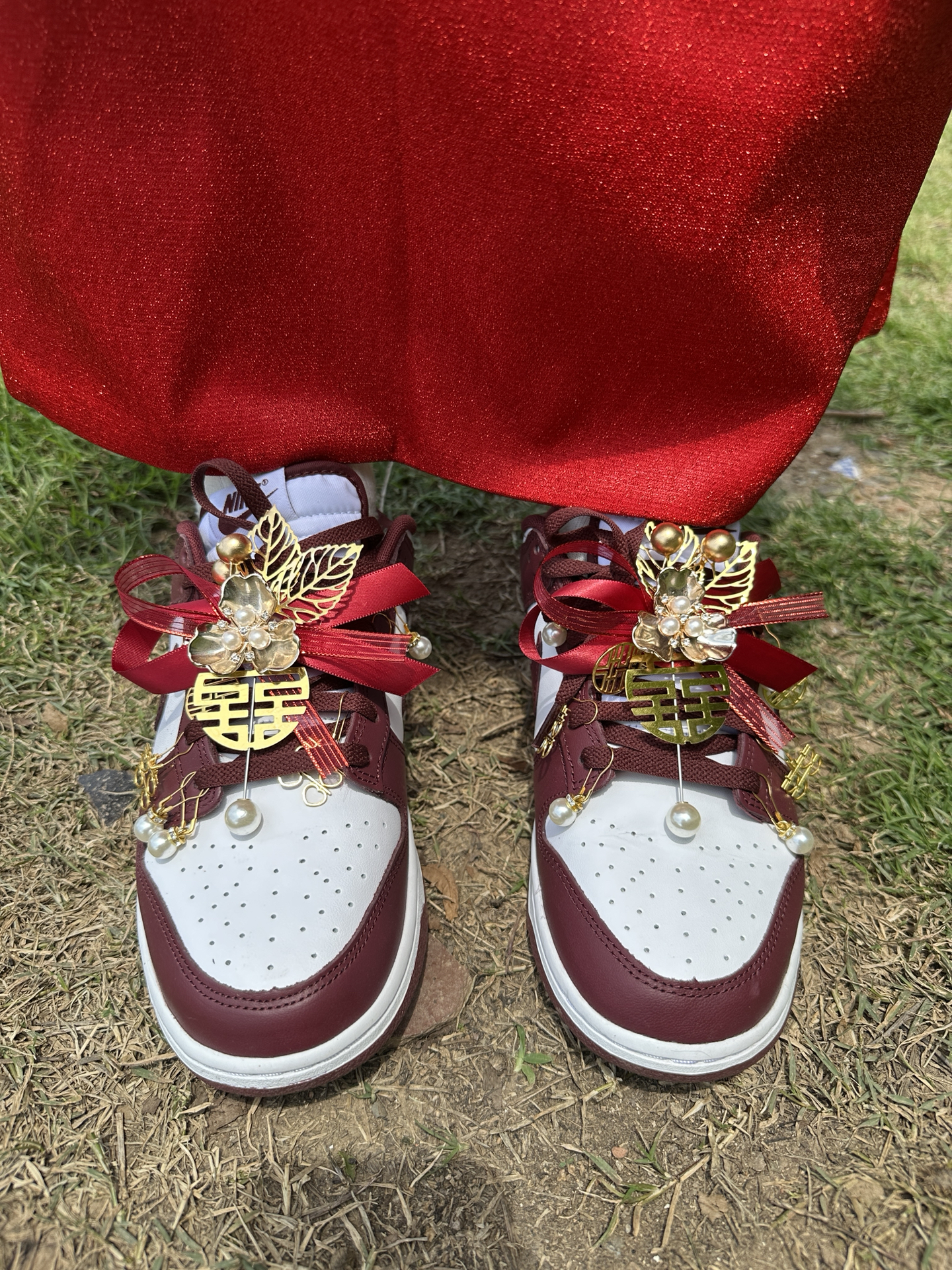 哈喽大家好 今日分享: #Nike 家的婚礼鞋 一起来看看吧! 鞋身设计挺喜庆的 而且上脚效果非常赞 珍珠挂坠搭配酒红色真的挺醒目 是一款高颜值婚礼鞋 情侣穿搭也非常好看 推荐这款宝藏板鞋✨ #时尚婚鞋 #看看你的必入婚鞋 #婚礼鞋 #高颜值婚鞋