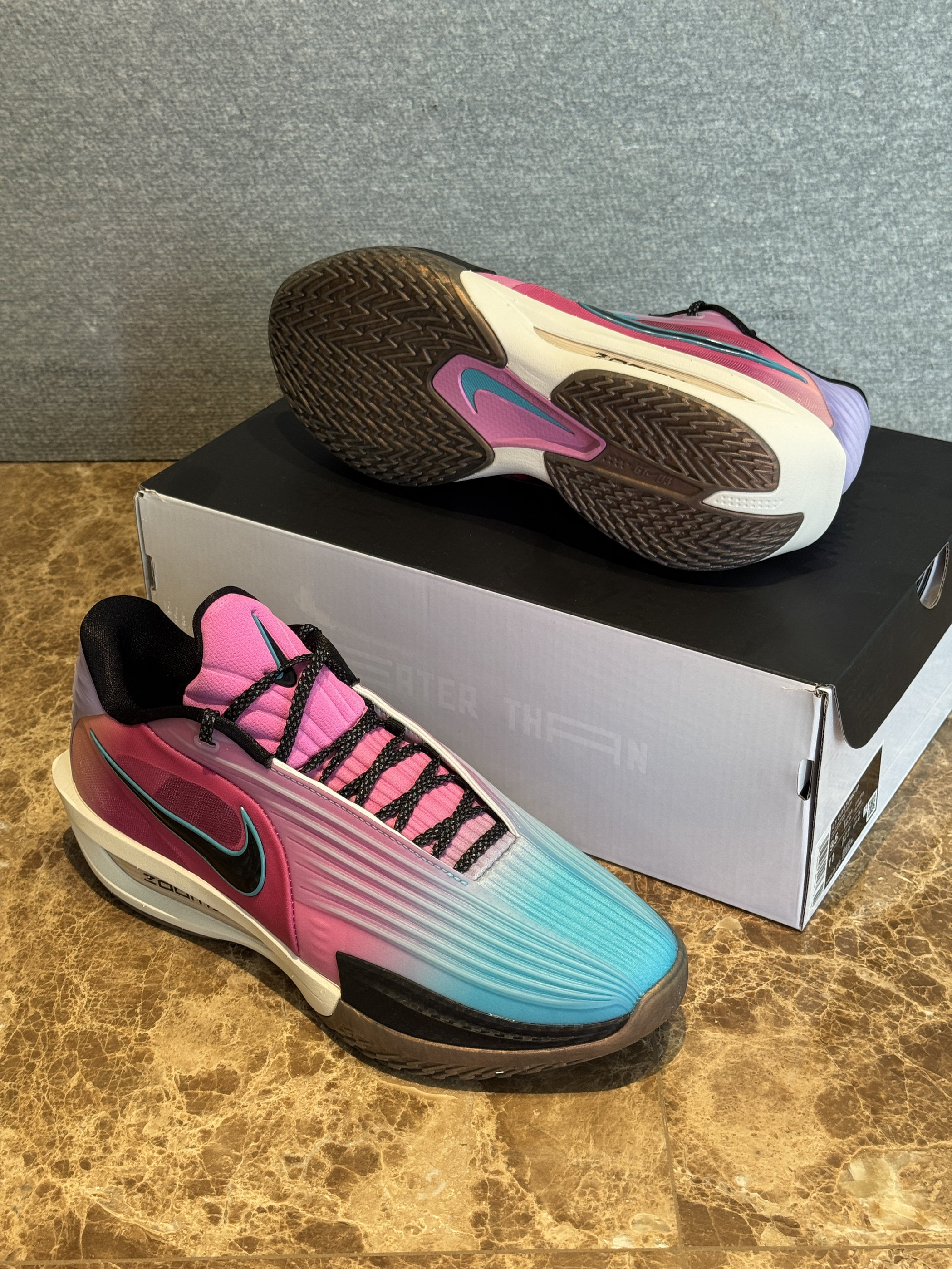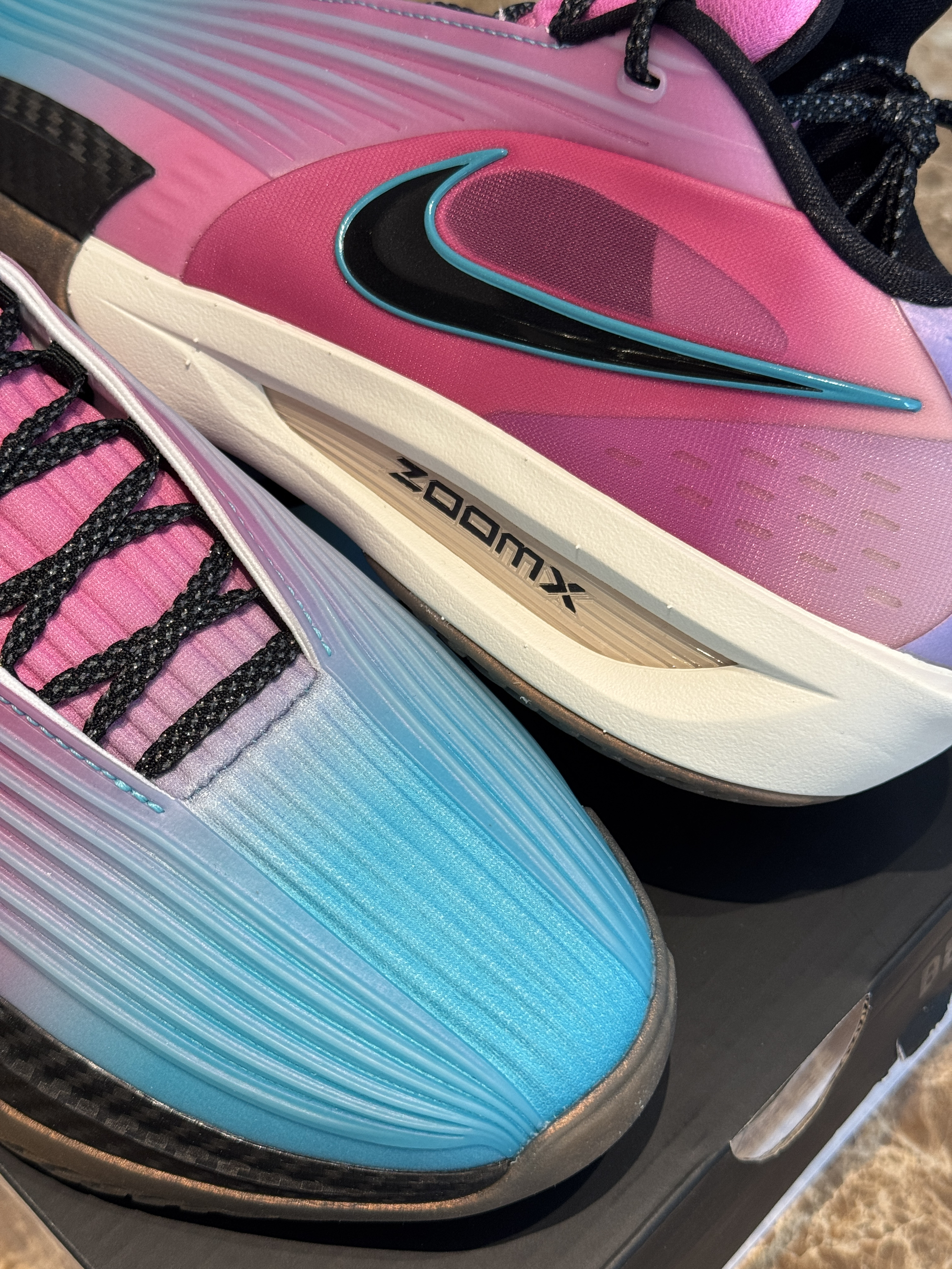 🤠Hello大家好,我是Season王世军。 📦今天跟大家开箱分享GtCut3Turbo的南海岸迈阿密配色,配置极顶的同时,上脚也十分的骚气好看。 🚀中底搭载全掌ZoomX泡棉的同时,增加了一块ZoomX泡棉的鞋垫,踩在ZoomX泡棉上的脚感澎湃的一批,是目前我穿过耐克的鞋子里,脚感最好的鞋垫了。 ❌但是鞋垫上没有织物阻隔,穿的时候尽量配一副鞋垫,或者穿一个加厚的毛巾篮球袜,不然出汗容易打滑不...