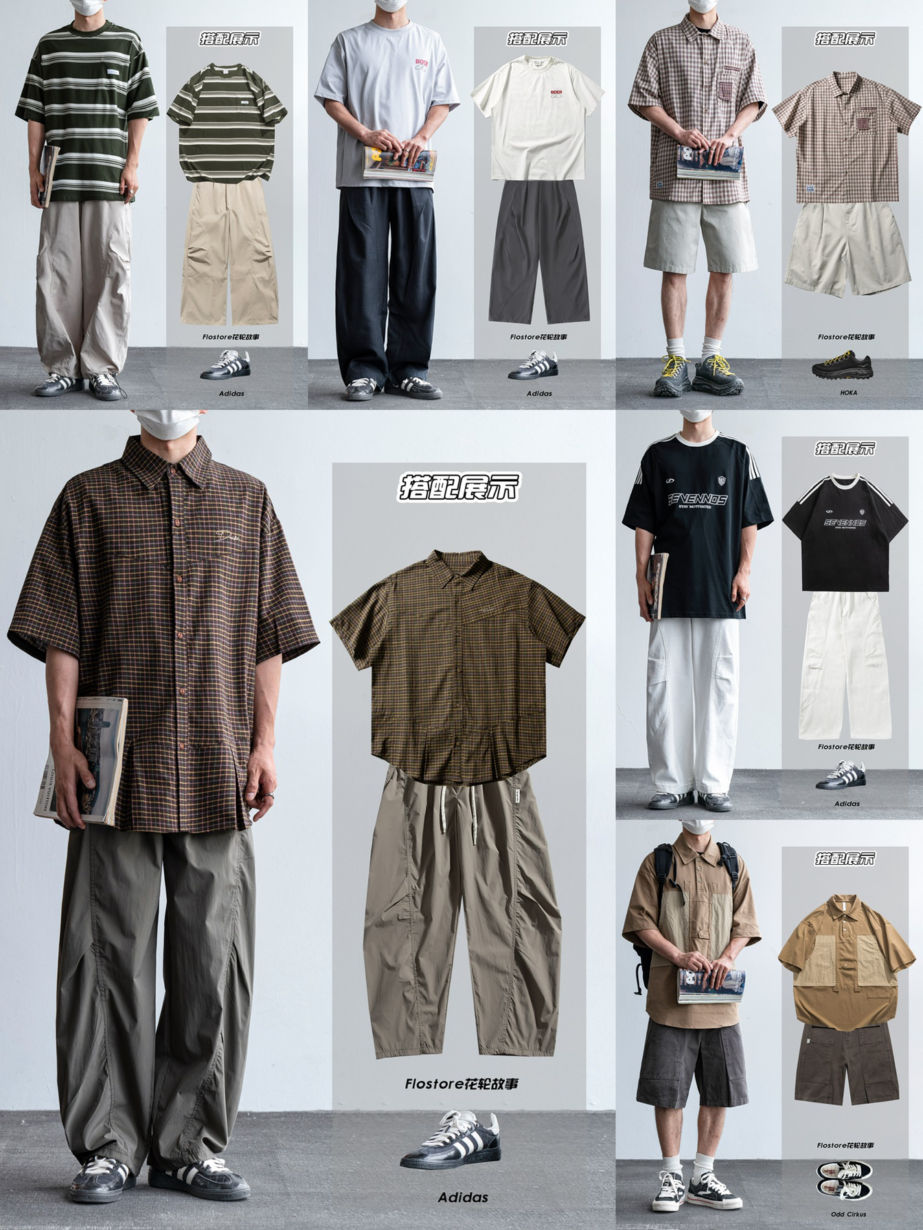 出游的时候挑衣服坠麻烦了 很多bro是不是为不知道怎么穿烦恼过 别担心!这几款穿搭就可以直接出街! 假期出去秀一下敲酷 简单的款式也可以搭配就可以him好看 完全不用担心配色问题 复古工装的感觉分分钟可以拿捏住了 颜色搭配有呼应,不宜过多 - 模特:身高172CM | 体重62.5KG | L码(参考) Flostore花轮故事