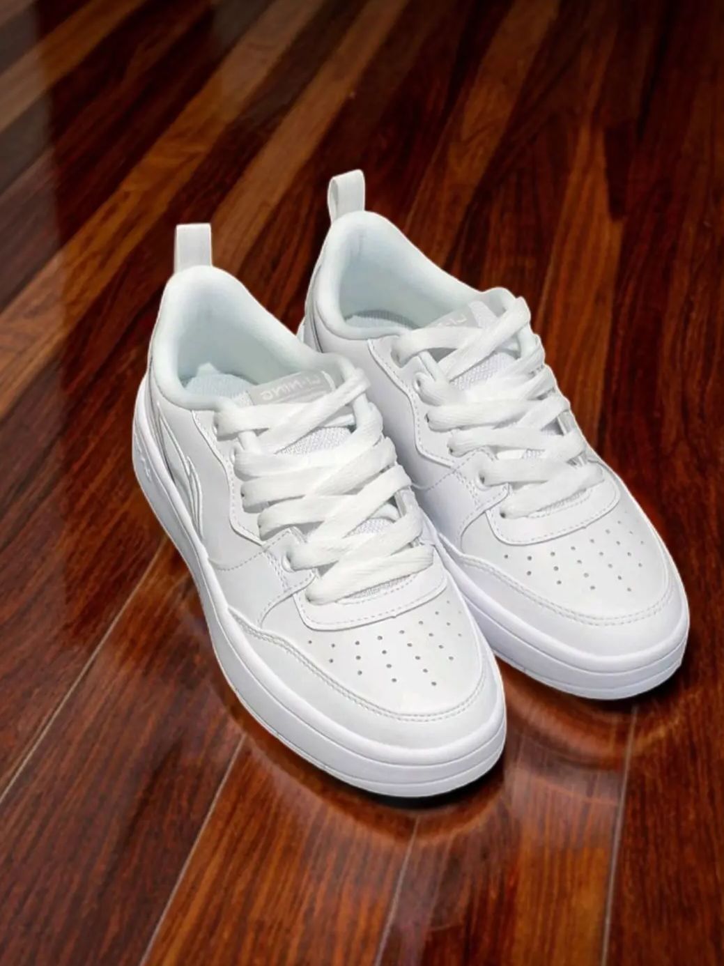 刚拆开李宁标准白这双鞋,第一反应是“这鞋底厚得有安全感”。前掌的弧形支撑片让走路时脚掌被稳稳托住,鞋面哑光材质比想象中透气,穿短袜暴走半小时也没闷出汗。 后跟的4.5cm厚底刚开始担心会笨重,实际走路像踩在软弹的乳胶垫上,足弓位置微微隆起,光脚穿不打滑。试过下雨天穿它出门,防滑纹路抓地力在线,但鞋底沾水后走路会“咯吱”响,建议避开积水路面。 灰白配色实物偏冷调,搭配工装裤或束脚裤都挺利落。脚背...