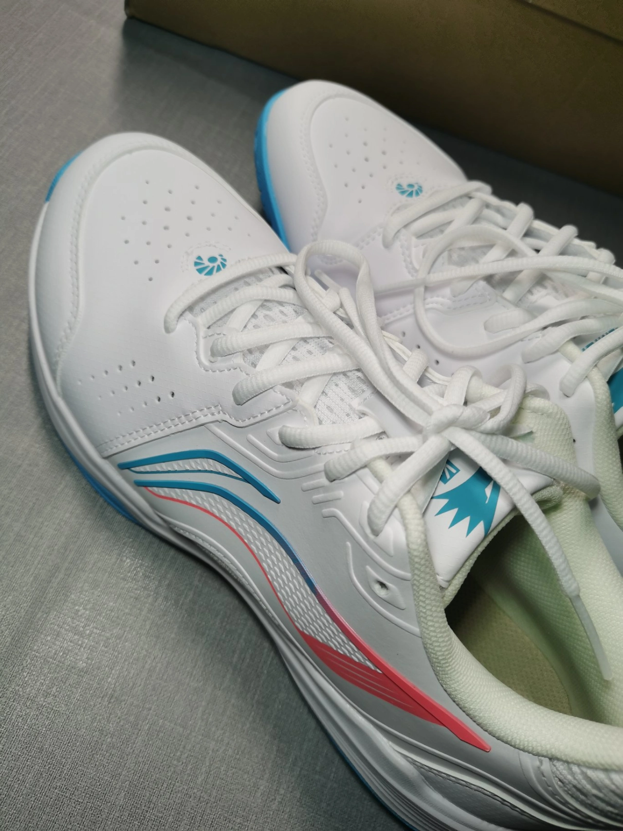 新入手一款羽毛球鞋,我承认我有点颜控,但看这颜值,谁能不爱呢[惊喜_blue] 这双鞋穿上去包裹性特别强,感觉和脚融为一体了。防滑性直接拉满,正常走路都能感觉到那慢慢的摩擦力。鞋底的橡胶大底,保证防滑的基础上,材质也比较软,起跳,奔跑感觉不到橡胶的僵硬感。 球场上,你只管打球,剩下的交给它😁